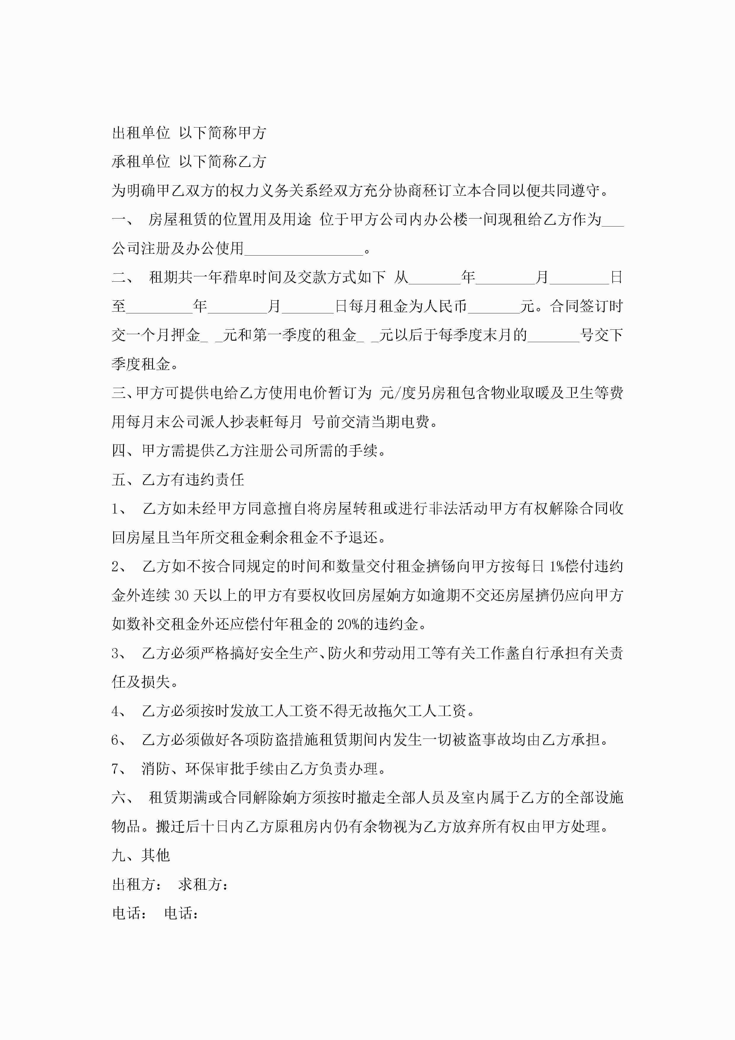 个人租房注册公司合同范本5篇jugei3月23日 01:47发布关注265 个人租房注册公司合同范本5篇此内容为付费资源,请付费后查看¥10.9 单篇文档限时特惠¥15个人会员开通企业会员开通立即下载无需登陆!可直接快捷下载单个模板付费资源© 版权声明THE ENDWord模板# 实用文档# 实用模板# 合同模板# 租房合同 如有问题,可点击最底部“联系我们”联系客服 分享QQ空间微博QQ好友海报分享复制链接收藏