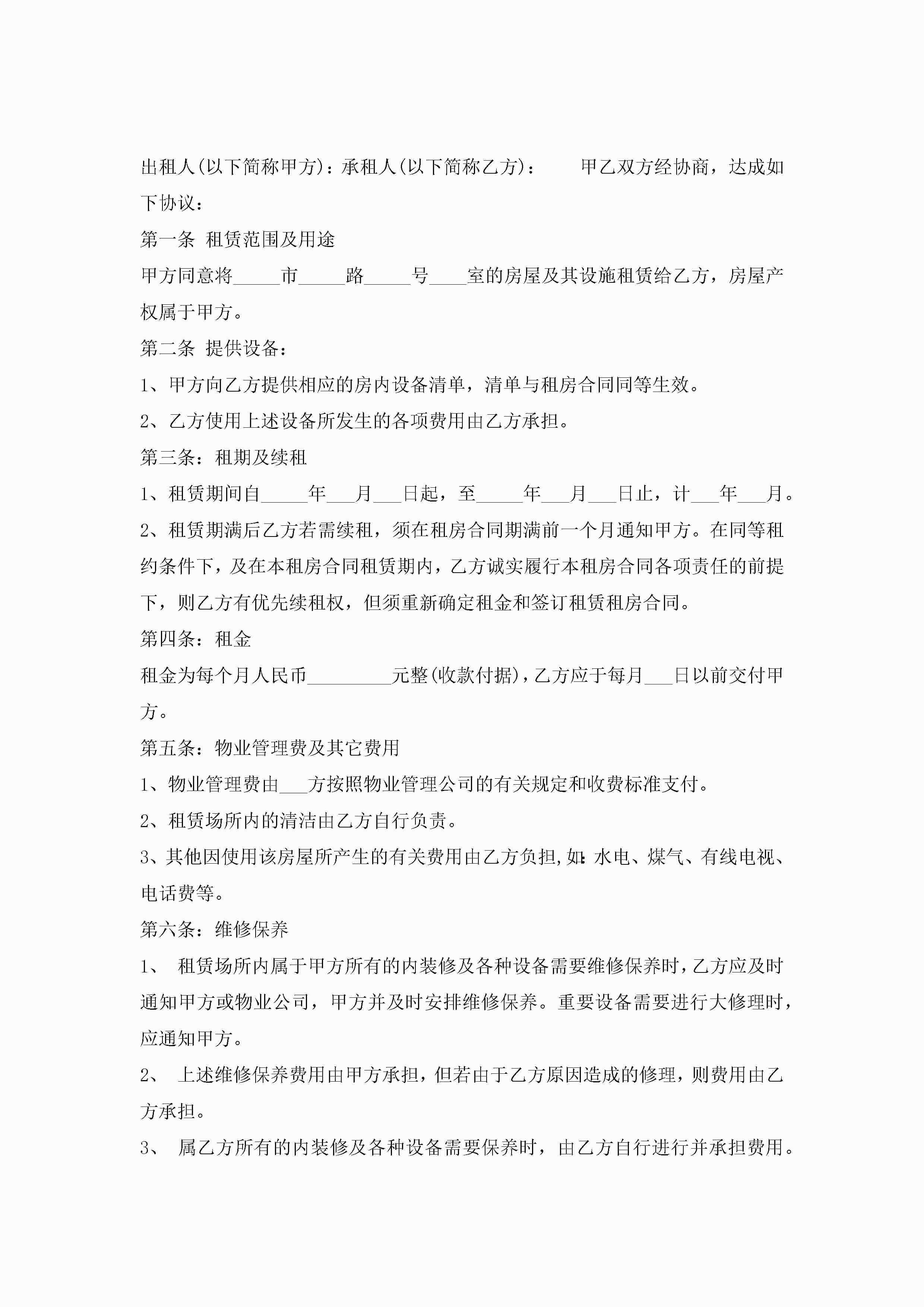 简单的租房合同书5篇jugei3月23日 01:47发布关注330 简单的租房合同书5篇此内容为付费资源,请付费后查看¥10.9 单篇文档限时特惠¥15个人会员开通企业会员开通立即下载无需登陆!可直接快捷下载单个模板付费资源© 版权声明THE ENDWord模板# 实用文档# 实用模板# 合同模板# 租房合同 如有问题,可点击最底部“联系我们”联系客服 分享QQ空间微博QQ好友海报分享复制链接收藏