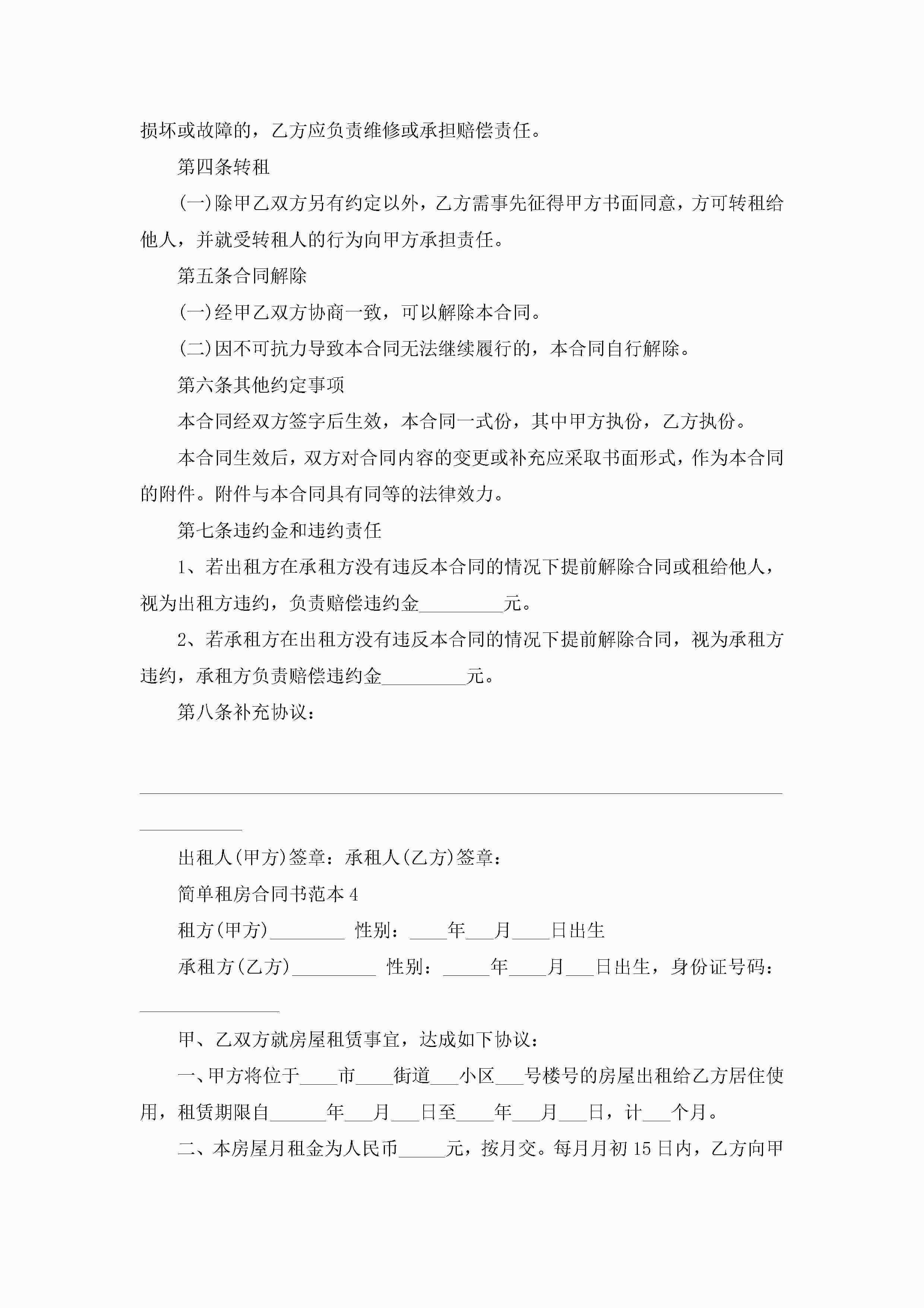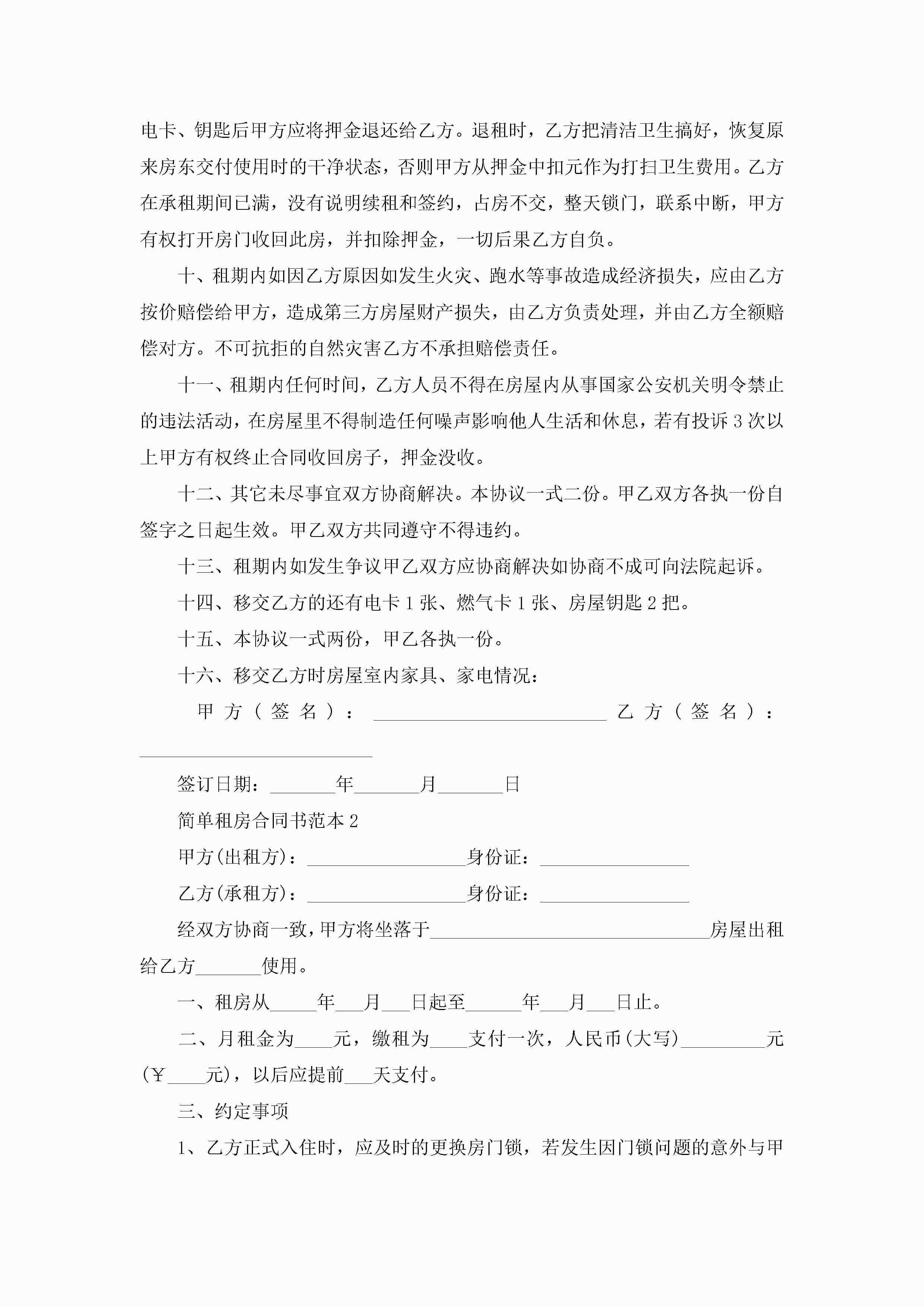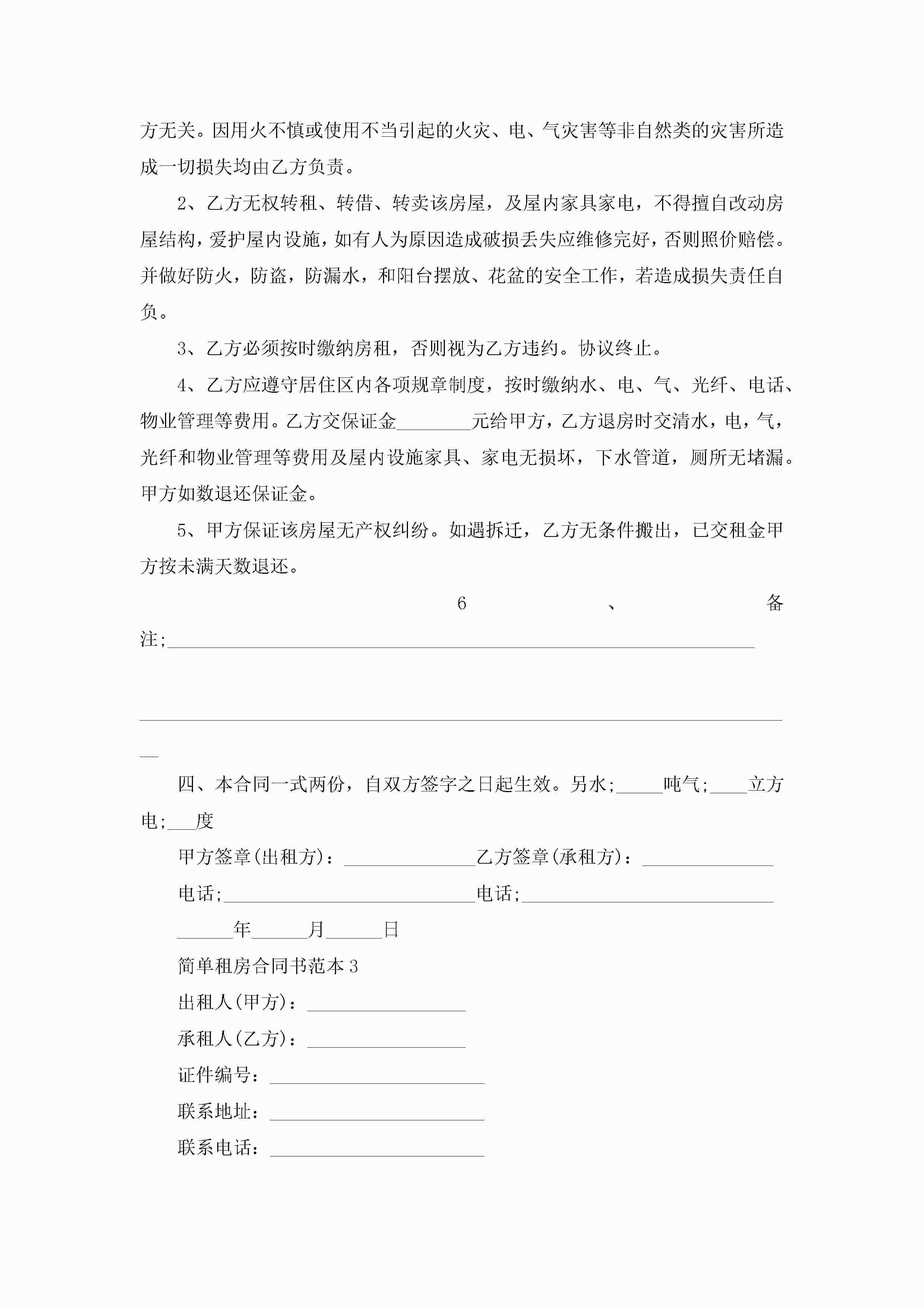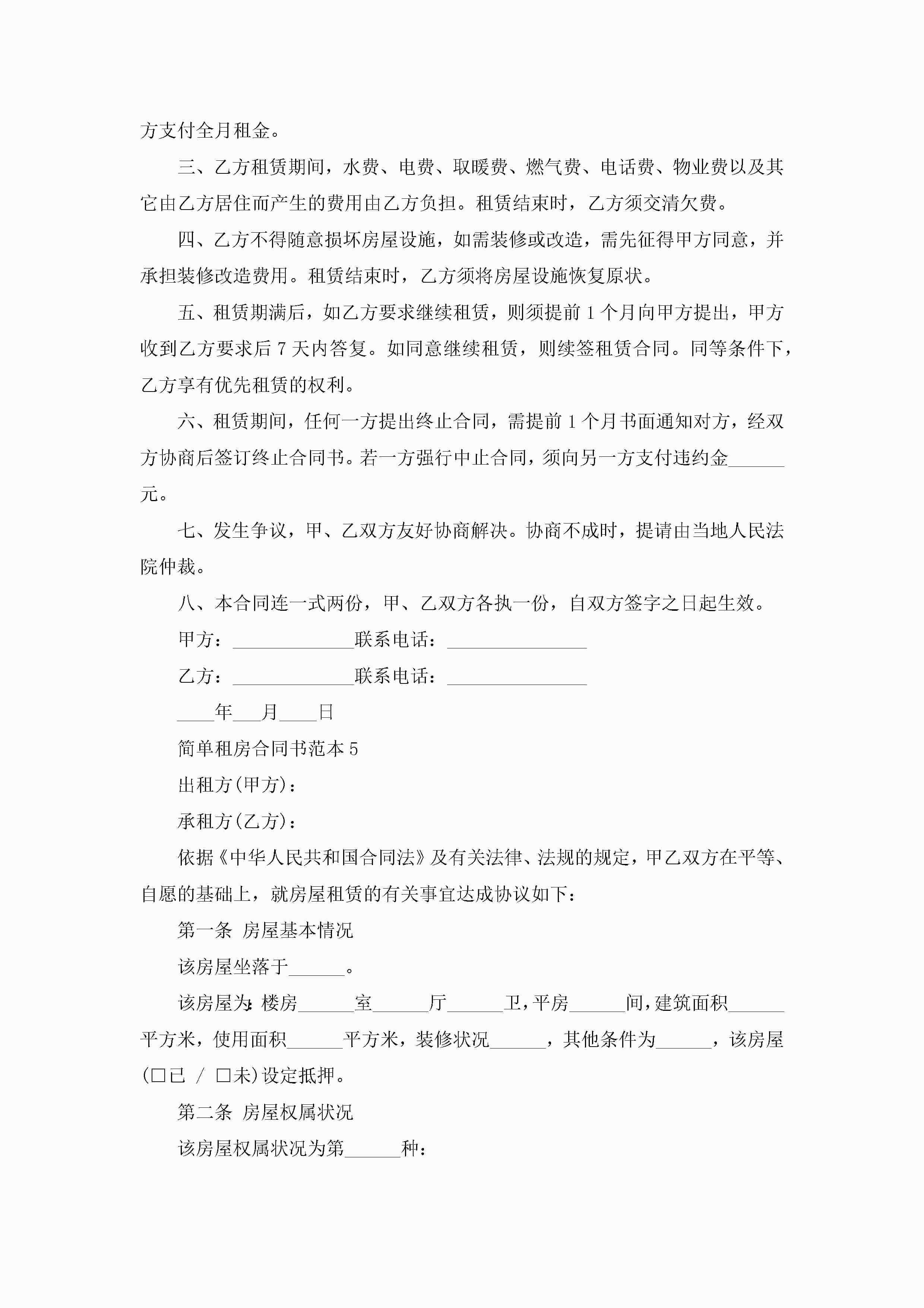 简单租房合同书范本5篇jugei3月23日 01:47发布关注217 简单租房合同书范本5篇此内容为付费资源,请付费后查看¥10.9 单篇文档限时特惠¥15个人会员开通企业会员开通立即下载无需登陆!可直接快捷下载单个模板付费资源© 版权声明THE ENDWord模板# 实用文档# 实用模板# 合同模板# 租房合同 如有问题,可点击最底部“联系我们”联系客服 分享QQ空间微博QQ好友海报分享复制链接收藏