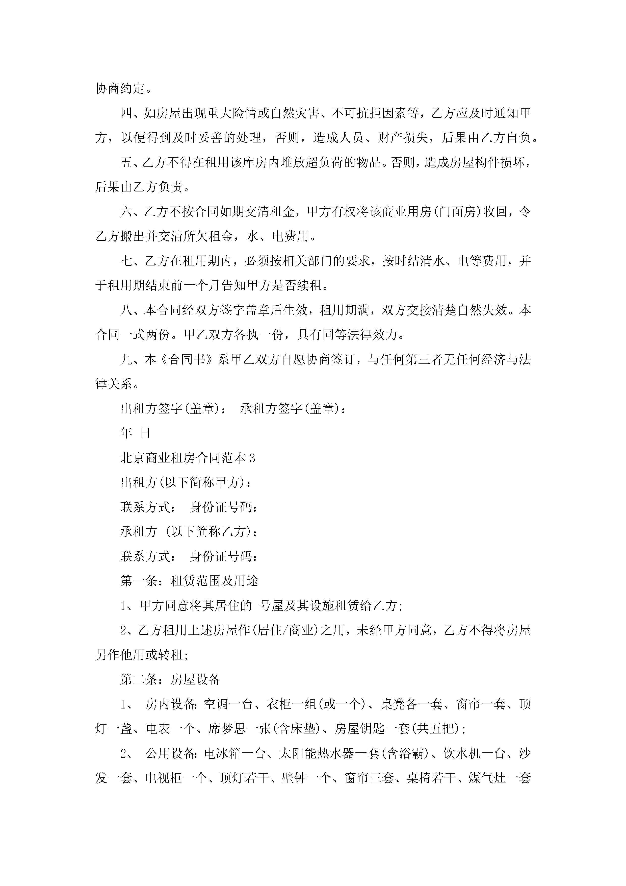 北京商业租房合同范本5篇jugei3月23日 01:47发布关注249 北京商业租房合同范本5篇此内容为付费资源,请付费后查看¥10.9 单篇文档限时特惠¥15个人会员开通企业会员开通立即下载无需登陆!可直接快捷下载单个模板付费资源© 版权声明THE ENDWord模板# 实用文档# 实用模板# 合同模板# 租房合同 如有问题,可点击最底部“联系我们”联系客服 分享QQ空间微博QQ好友海报分享复制链接收藏
