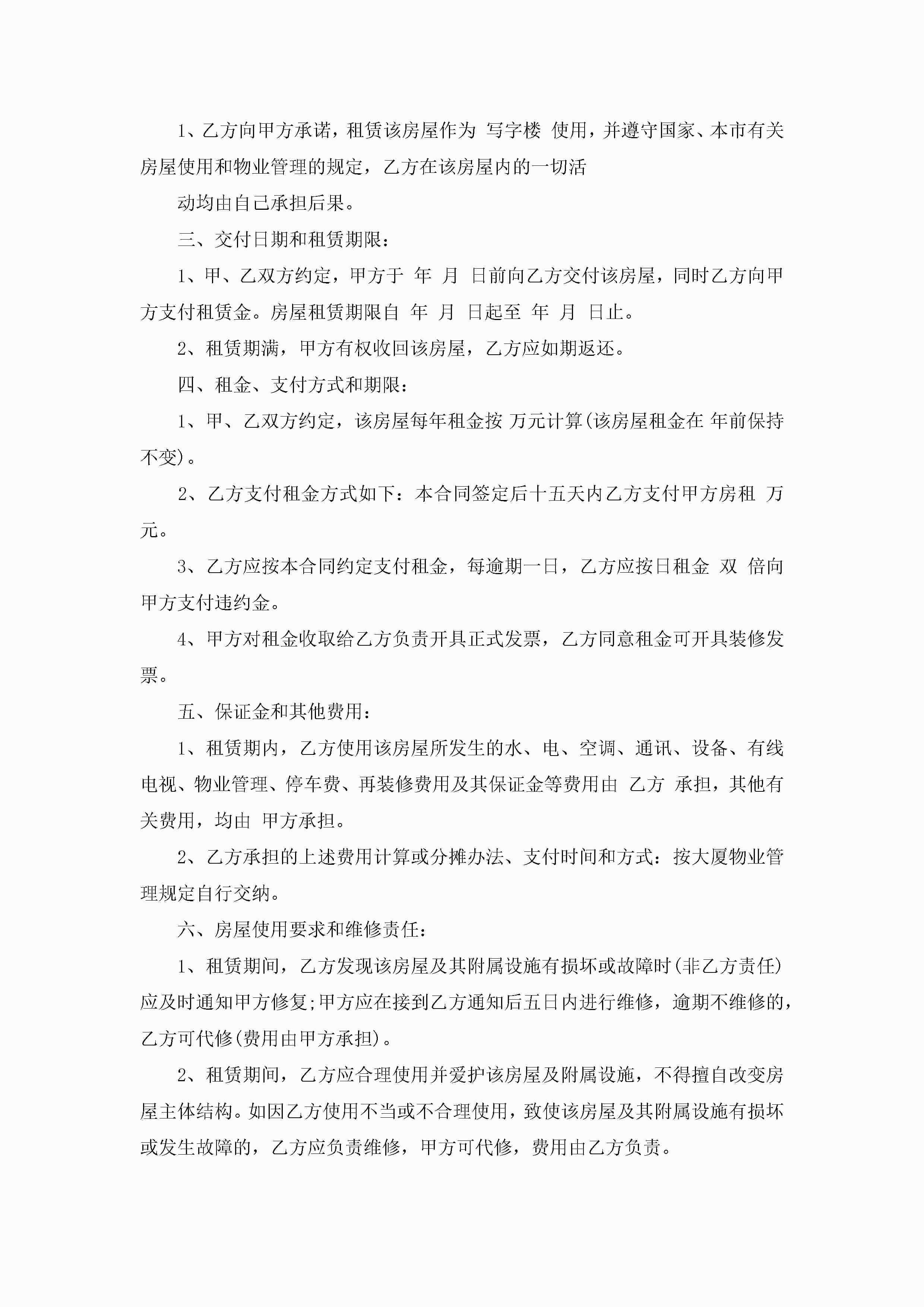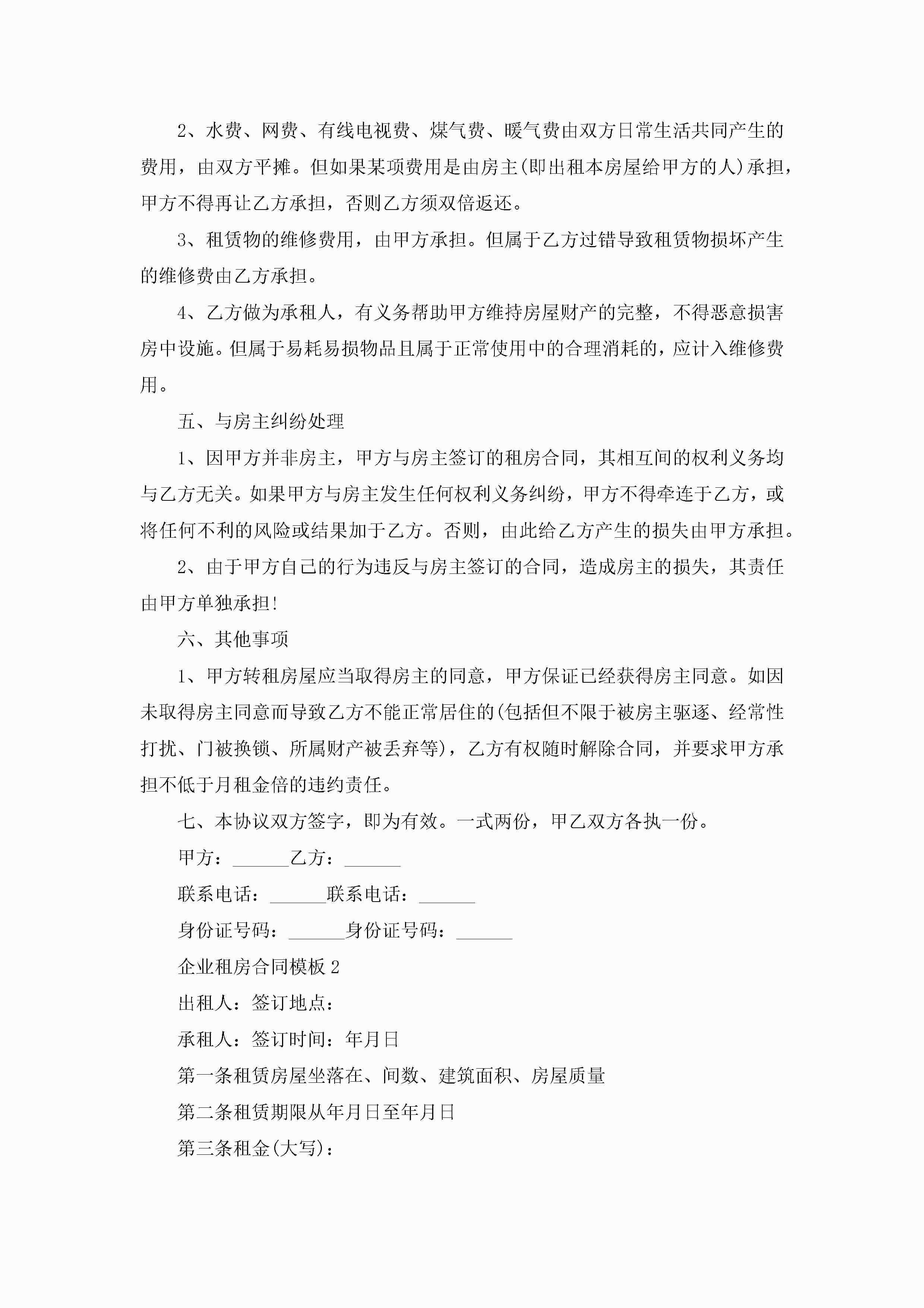企业租房合同模板5篇jugei3月23日 01:47发布关注196 企业租房合同模板5篇此内容为付费资源,请付费后查看¥10.9 单篇文档限时特惠¥15个人会员开通企业会员开通立即下载无需登陆!可直接快捷下载单个模板付费资源© 版权声明THE ENDWord模板# 实用文档# 实用模板# 合同模板# 租房合同 如有问题,可点击最底部“联系我们”联系客服 分享QQ空间微博QQ好友海报分享复制链接收藏