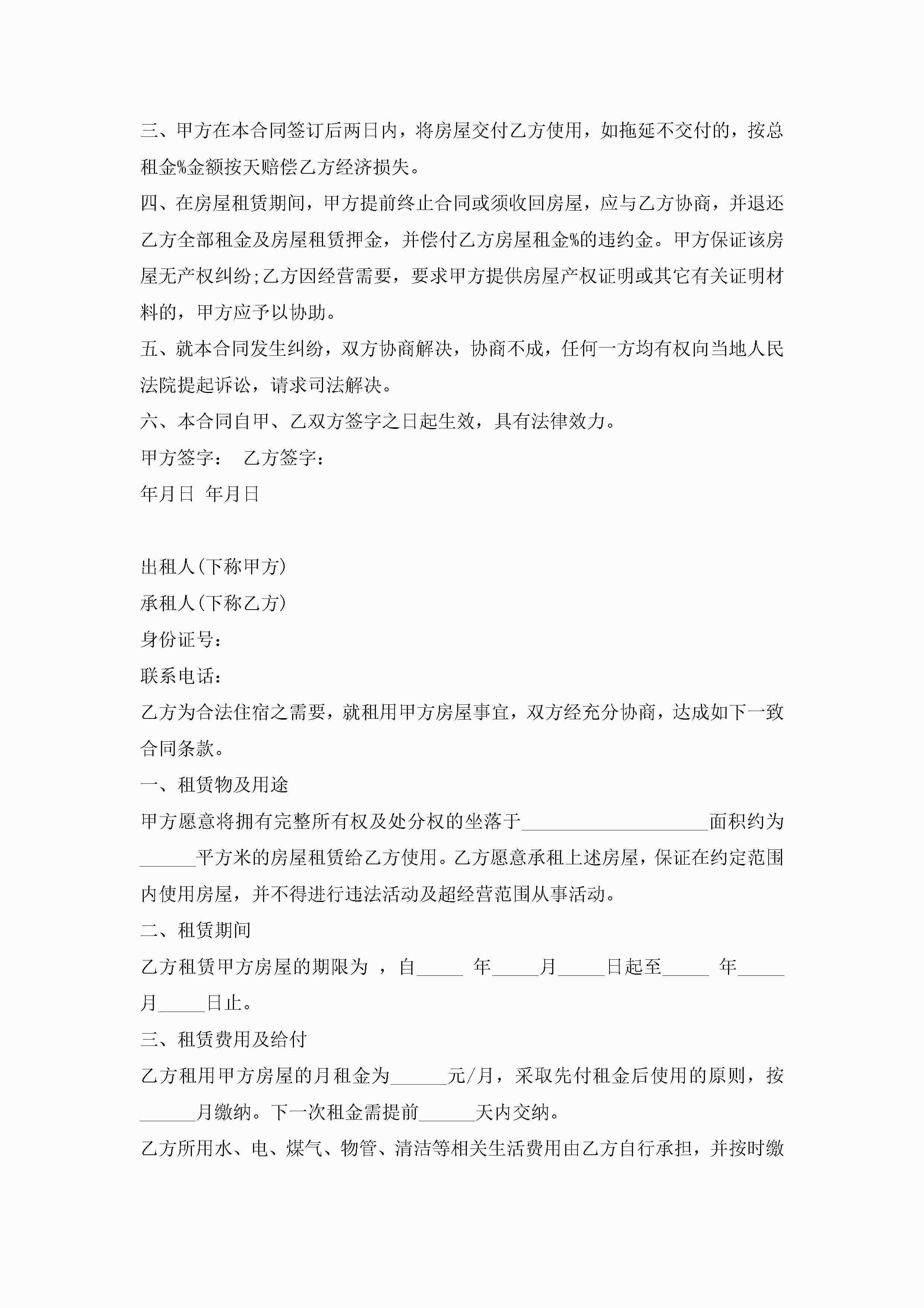 简单的租房合同范本8篇jugei3月23日 01:47发布关注183 简单的租房合同范本8篇此内容为付费资源,请付费后查看¥10.9 单篇文档限时特惠¥15个人会员开通企业会员开通立即下载无需登陆!可直接快捷下载单个模板付费资源© 版权声明THE ENDWord模板# 实用文档# 实用模板# 合同模板# 租房合同 如有问题,可点击最底部“联系我们”联系客服 分享QQ空间微博QQ好友海报分享复制链接收藏