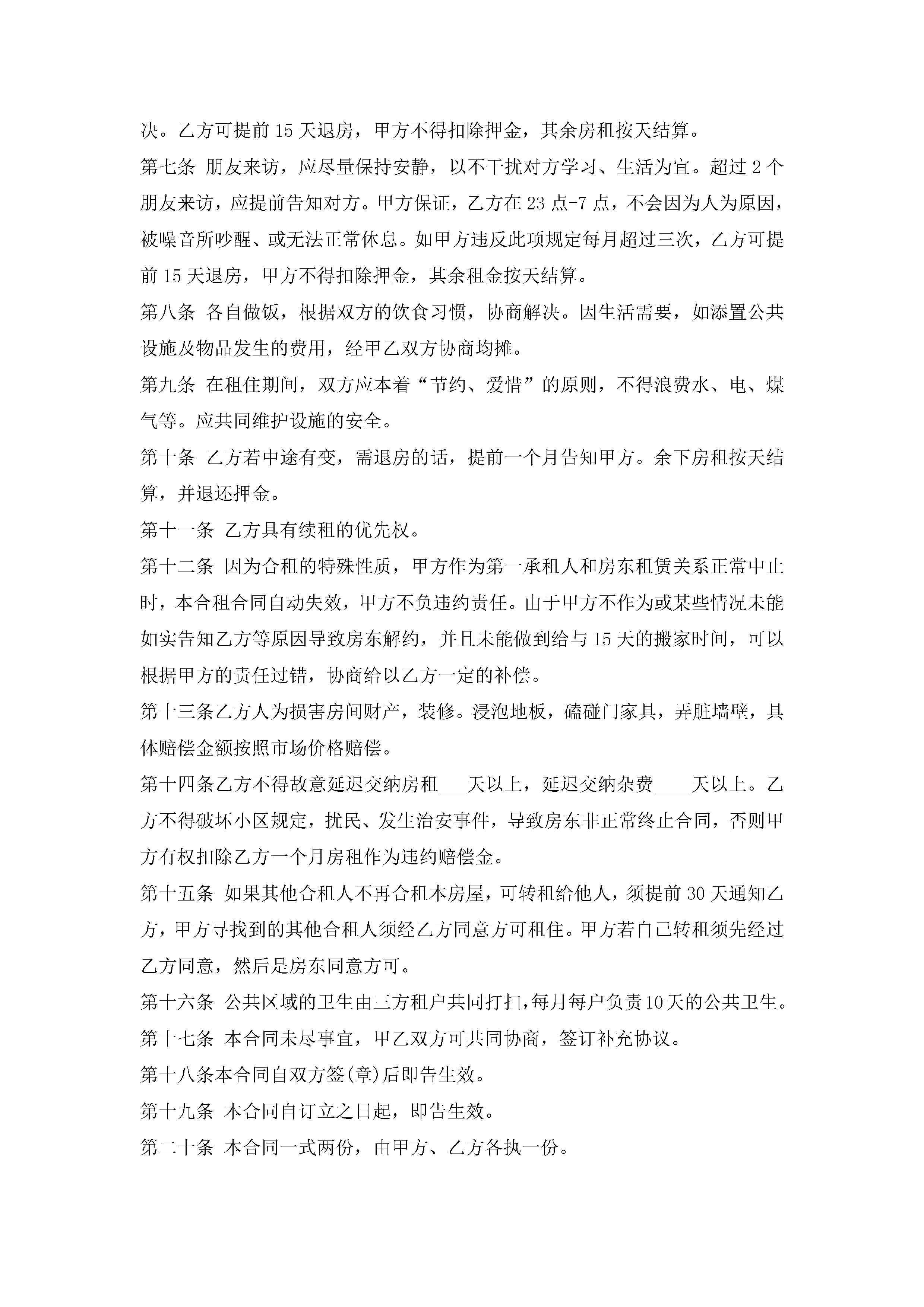 合租租房合同范本5篇jugei3月23日 01:47发布关注185 合租租房合同范本5篇此内容为付费资源,请付费后查看¥10.9 单篇文档限时特惠¥15个人会员开通企业会员开通立即下载无需登陆!可直接快捷下载单个模板付费资源© 版权声明THE ENDWord模板# 实用文档# 实用模板# 合同模板# 租房合同 如有问题,可点击最底部“联系我们”联系客服 分享QQ空间微博QQ好友海报分享复制链接收藏