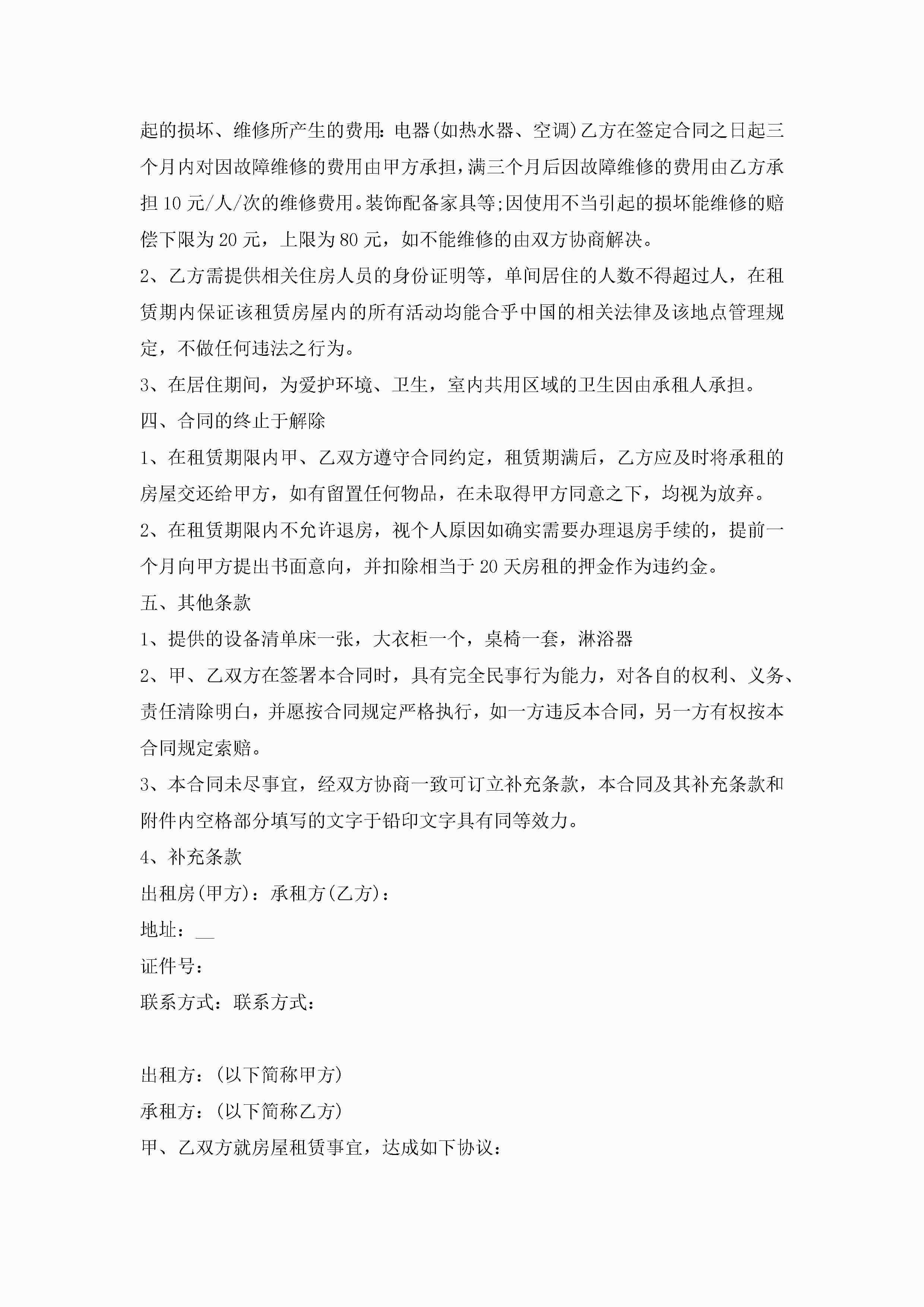 普通租房合同协议书范本8篇jugei3月23日 01:47发布关注193 普通租房合同协议书范本8篇此内容为付费资源,请付费后查看¥10.9 单篇文档限时特惠¥15个人会员开通企业会员开通立即下载无需登陆!可直接快捷下载单个模板付费资源© 版权声明THE ENDWord模板# 实用文档# 实用模板# 合同模板# 租房合同 如有问题,可点击最底部“联系我们”联系客服 分享QQ空间微博QQ好友海报分享复制链接收藏