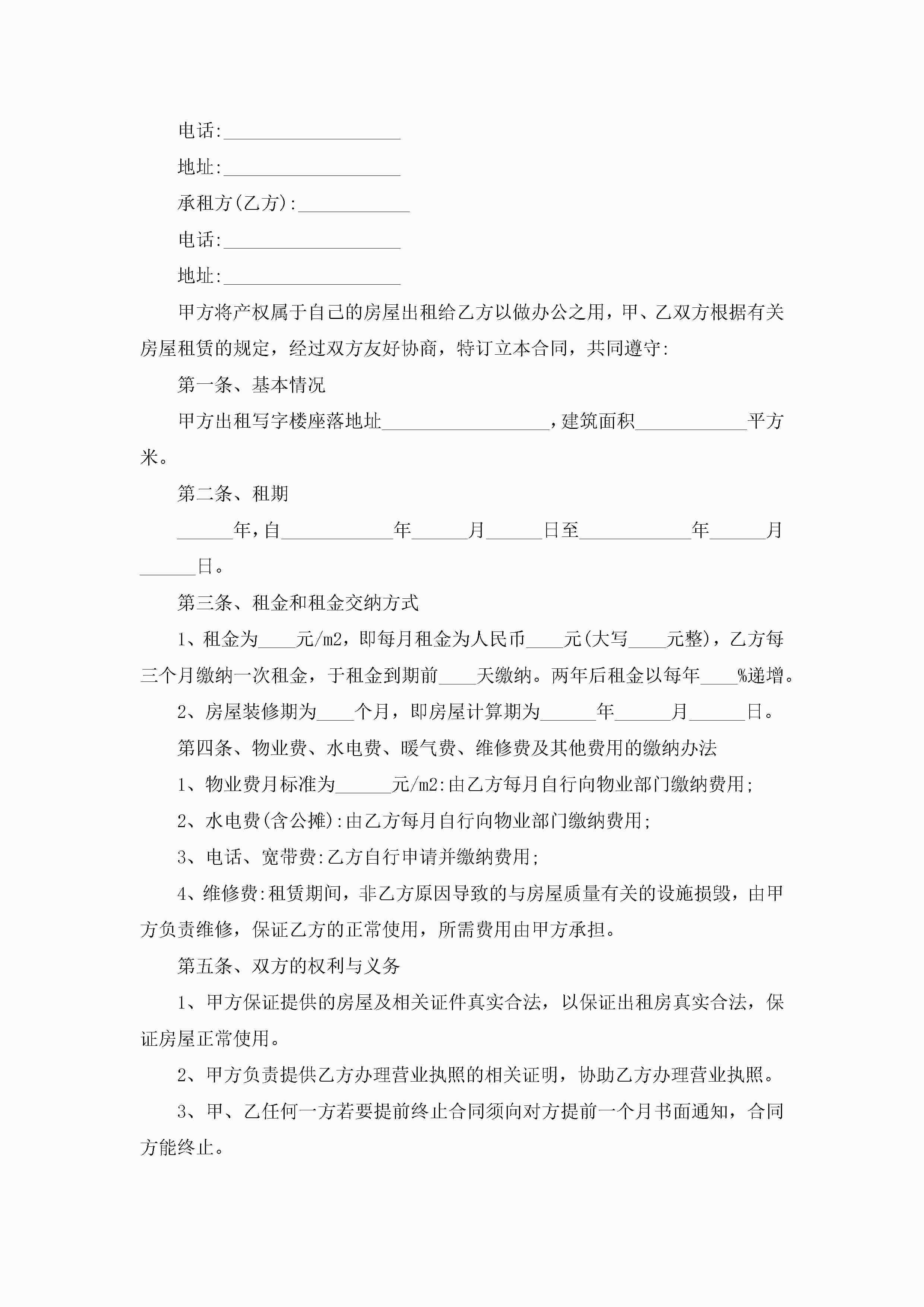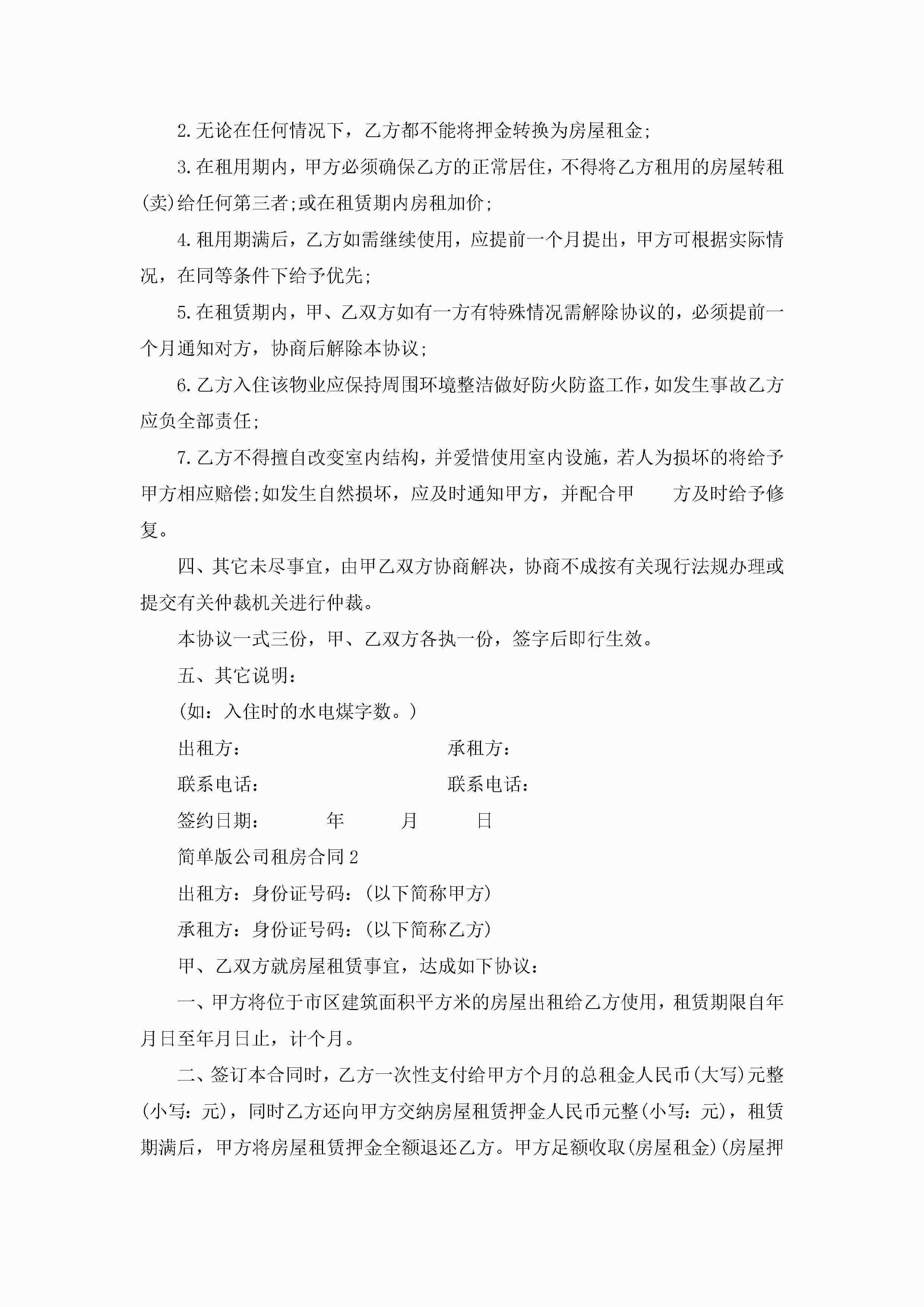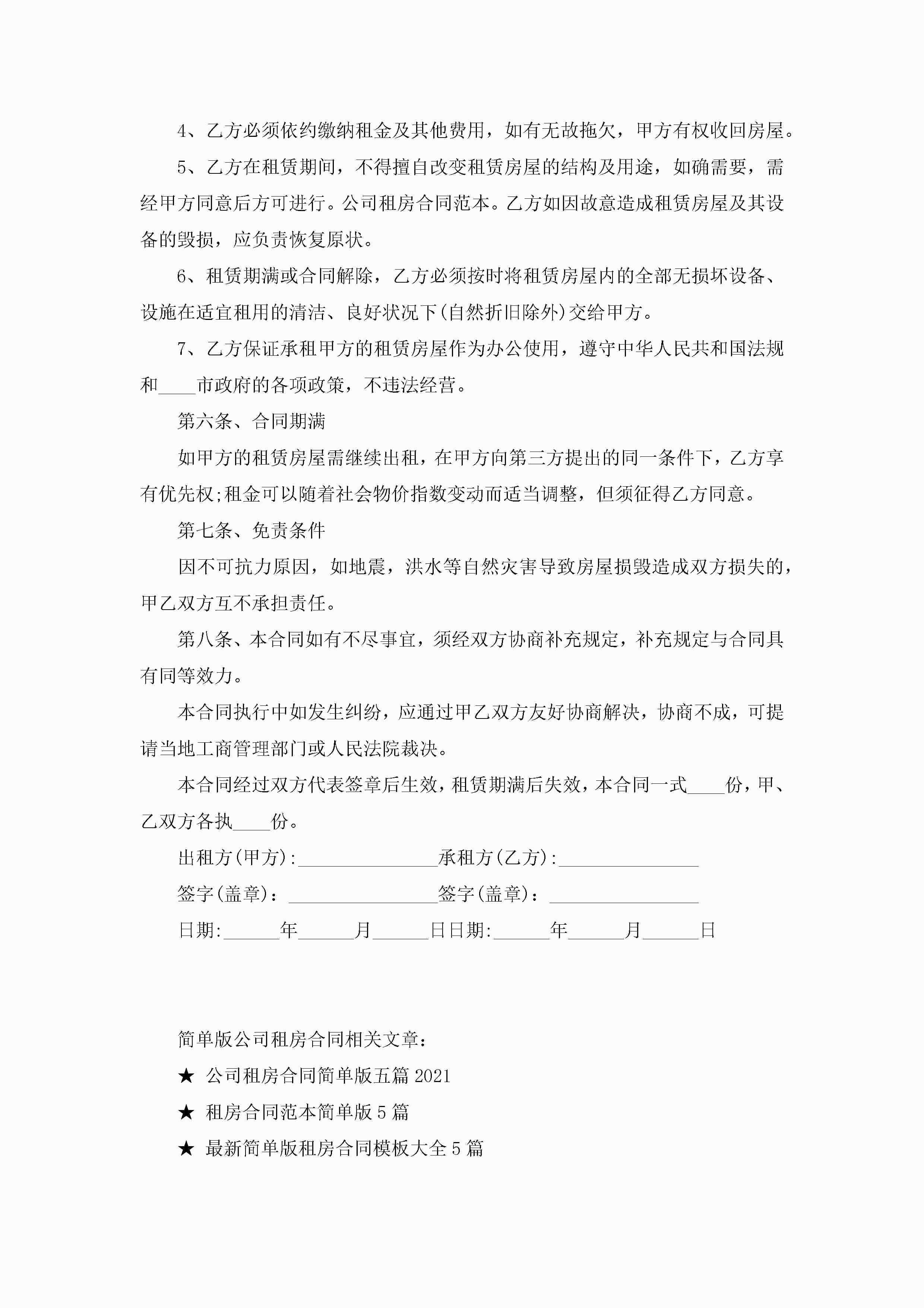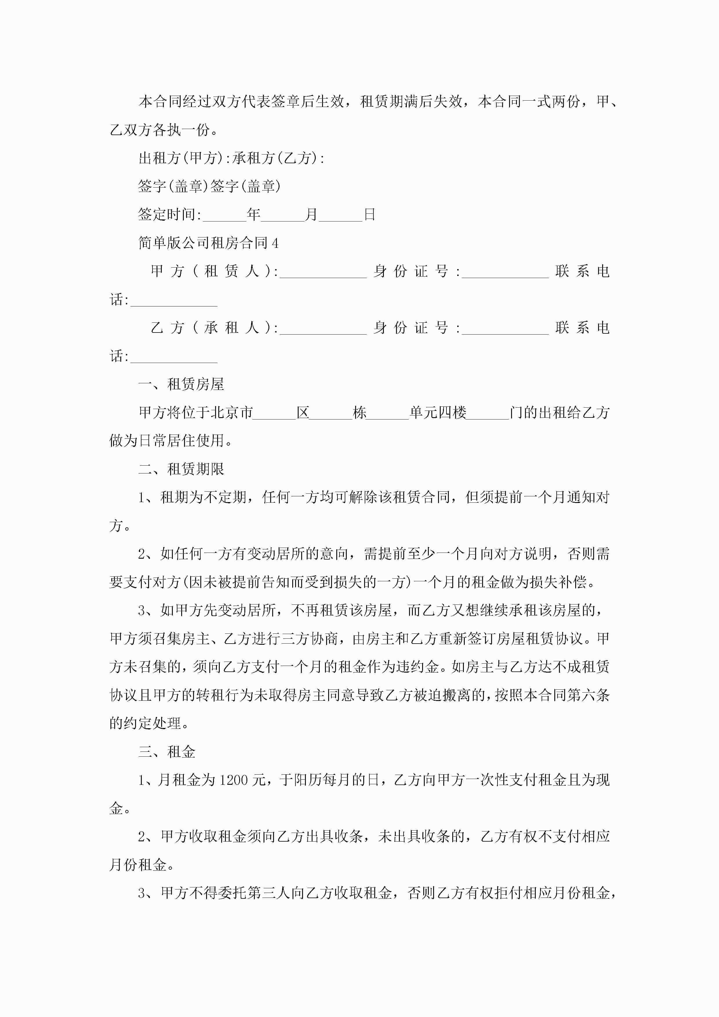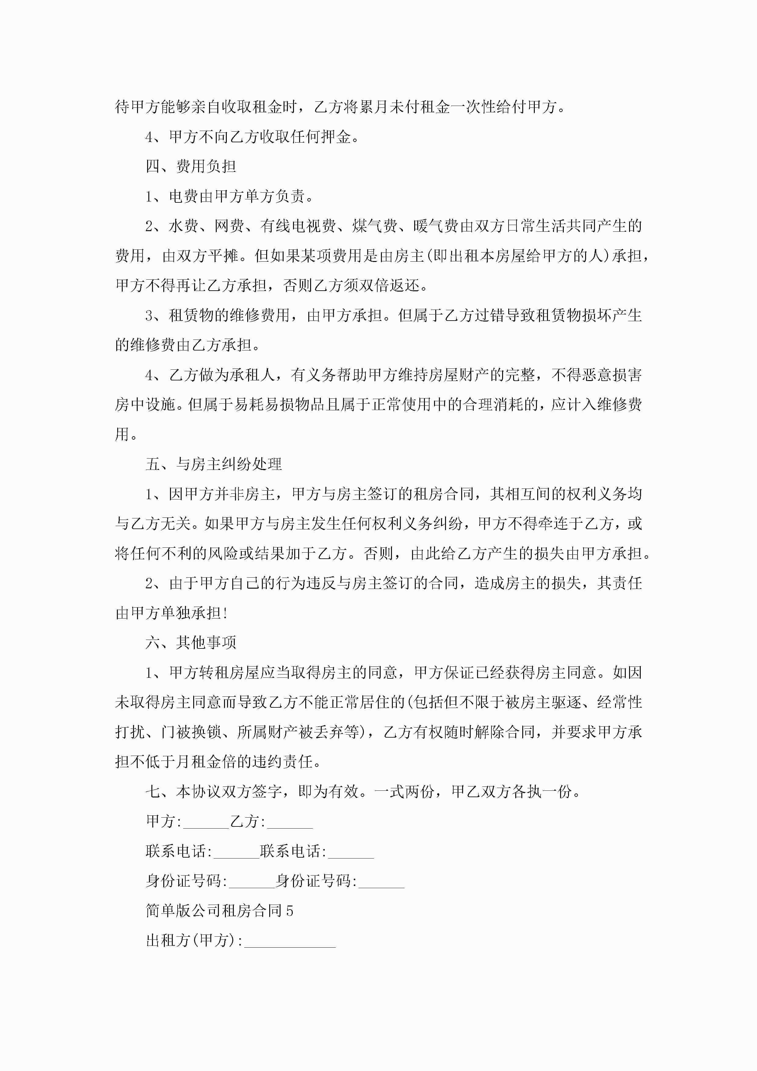 简单版公司租房合同5篇jugei3月23日 01:47发布关注253 简单版公司租房合同5篇此内容为付费资源,请付费后查看¥10.9 单篇文档限时特惠¥15个人会员开通企业会员开通立即下载无需登陆!可直接快捷下载单个模板付费资源© 版权声明THE ENDWord模板# 实用文档# 实用模板# 合同模板# 租房合同 如有问题,可点击最底部“联系我们”联系客服 分享QQ空间微博QQ好友海报分享复制链接收藏