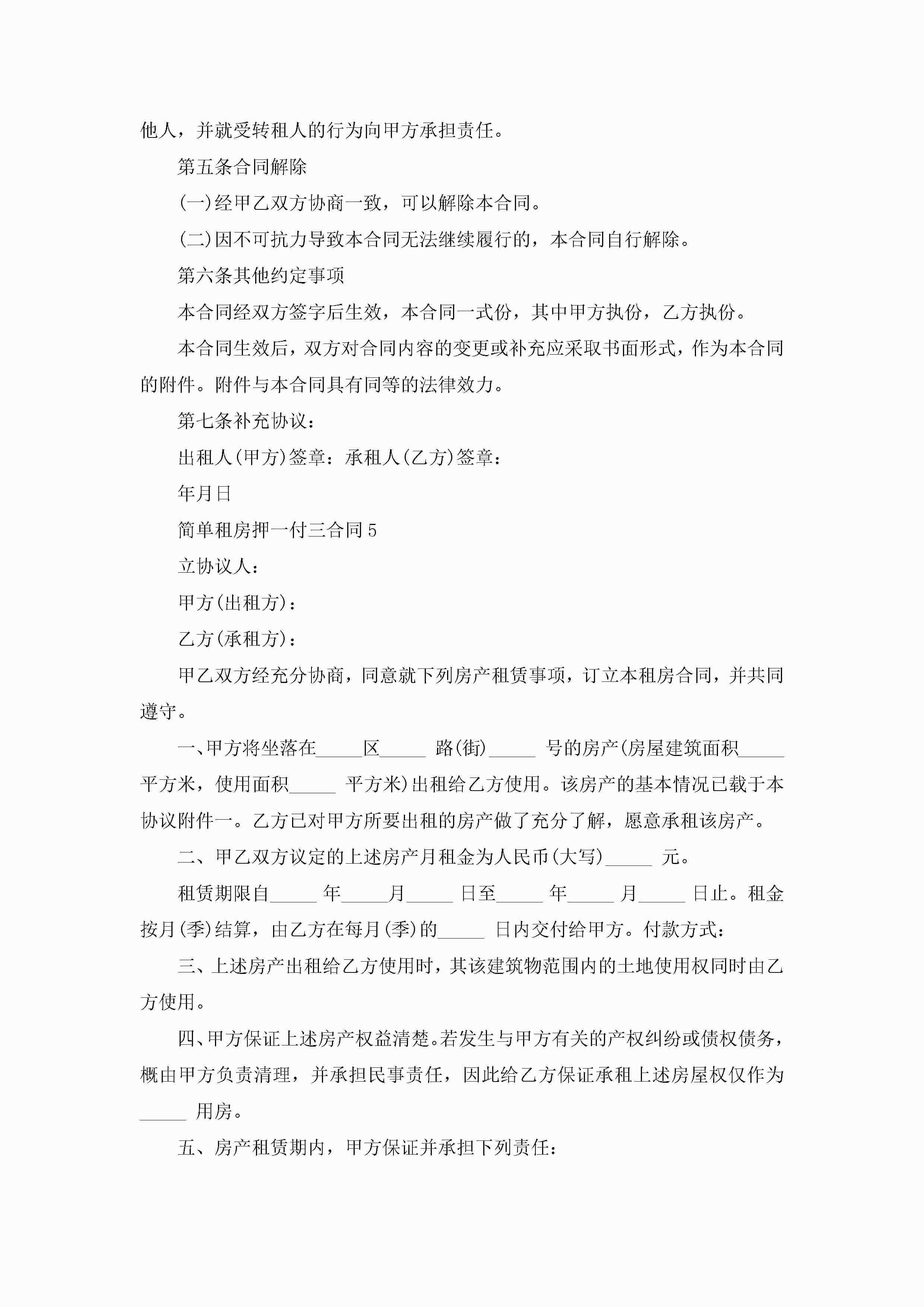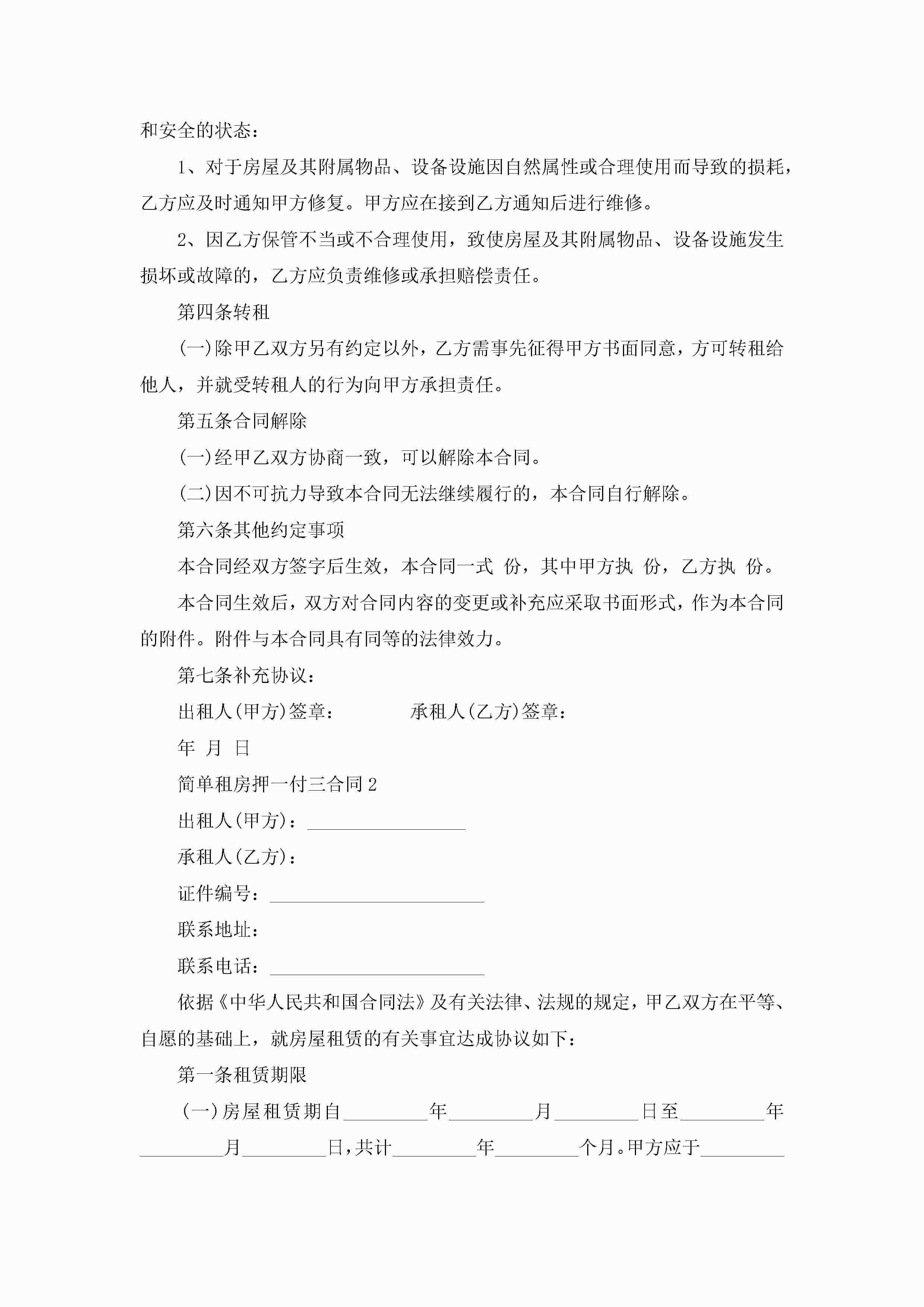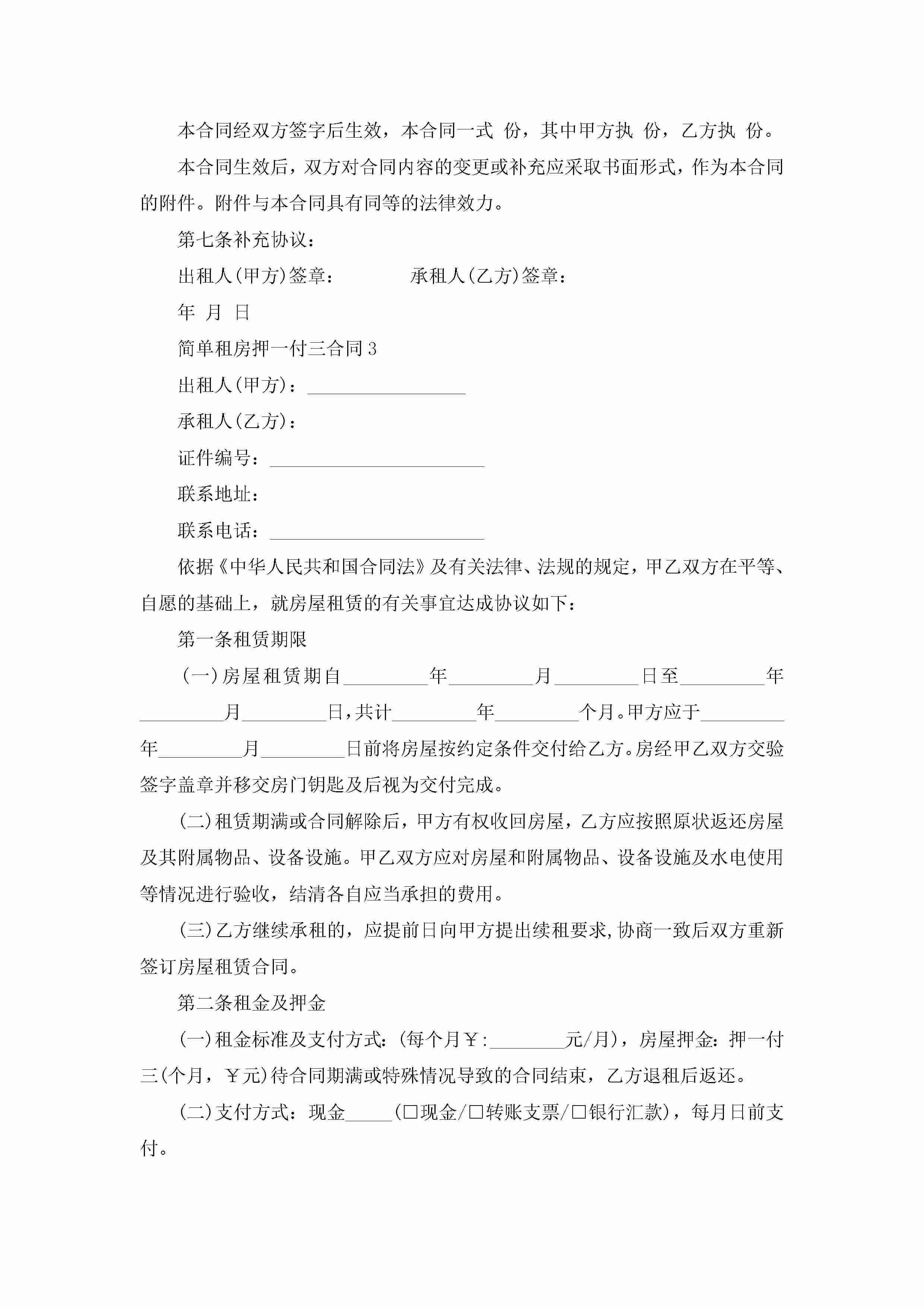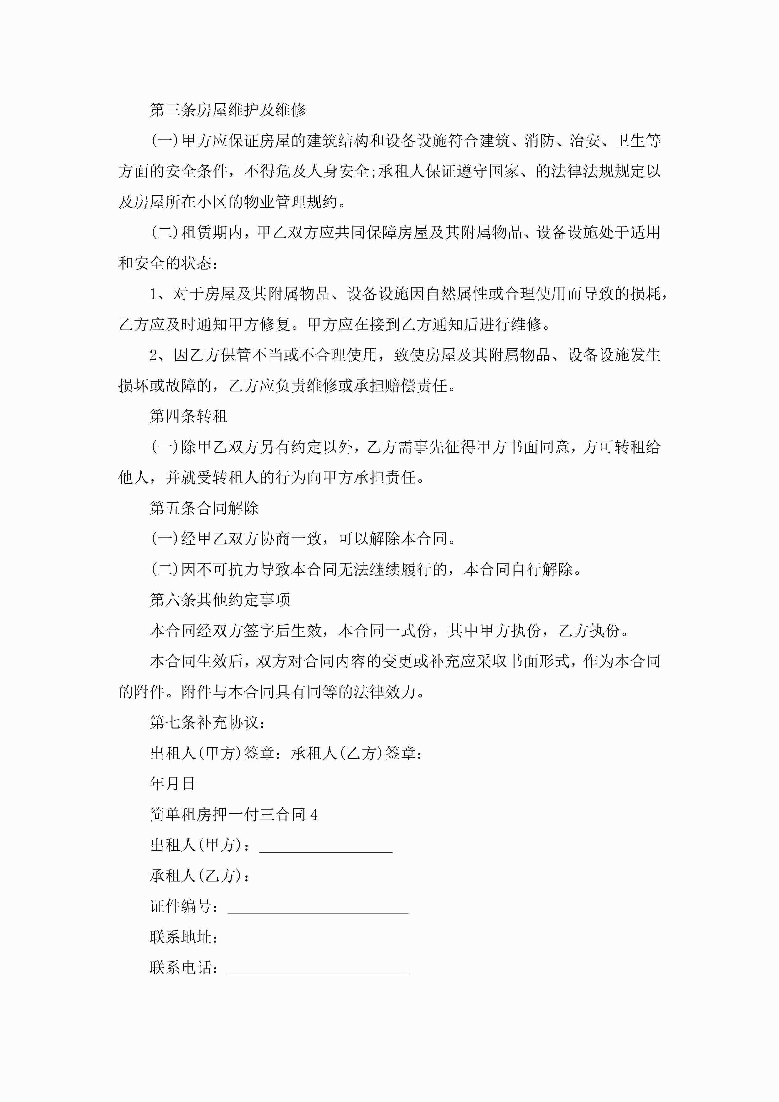 简单租房押一付三合同5篇jugei3月23日 01:47发布关注194 简单租房押一付三合同5篇此内容为付费资源,请付费后查看¥10.9 单篇文档限时特惠¥15个人会员开通企业会员开通立即下载无需登陆!可直接快捷下载单个模板付费资源© 版权声明THE ENDWord模板# 实用文档# 实用模板# 合同模板# 租房合同 如有问题,可点击最底部“联系我们”联系客服 分享QQ空间微博QQ好友海报分享复制链接收藏