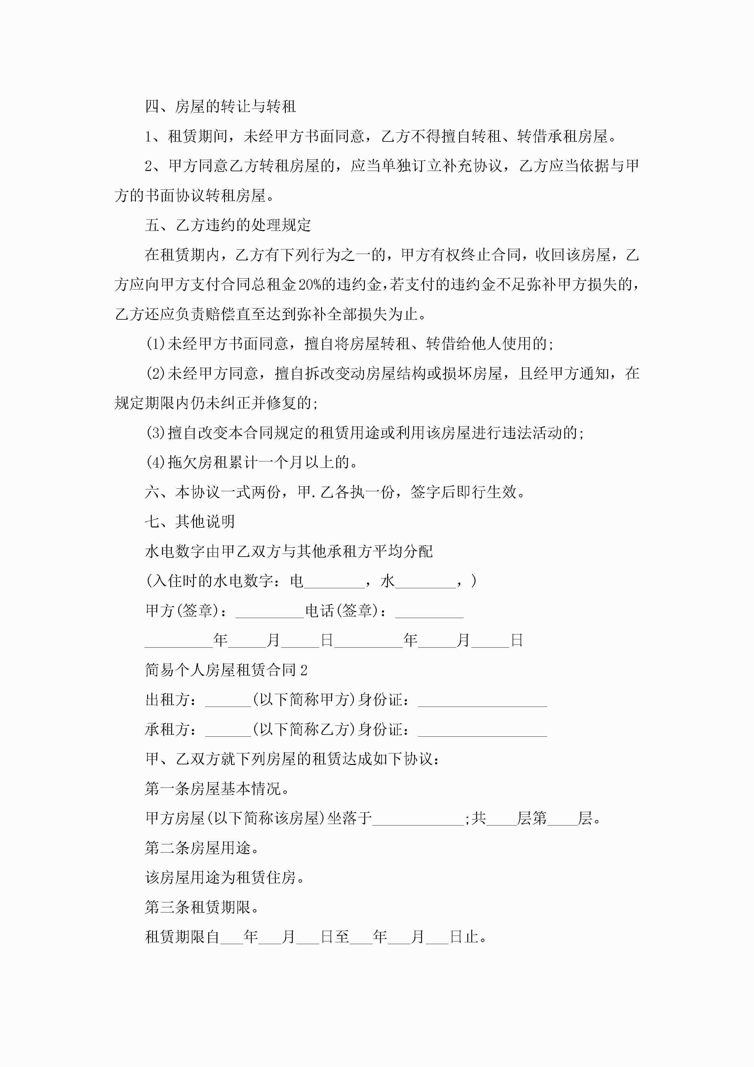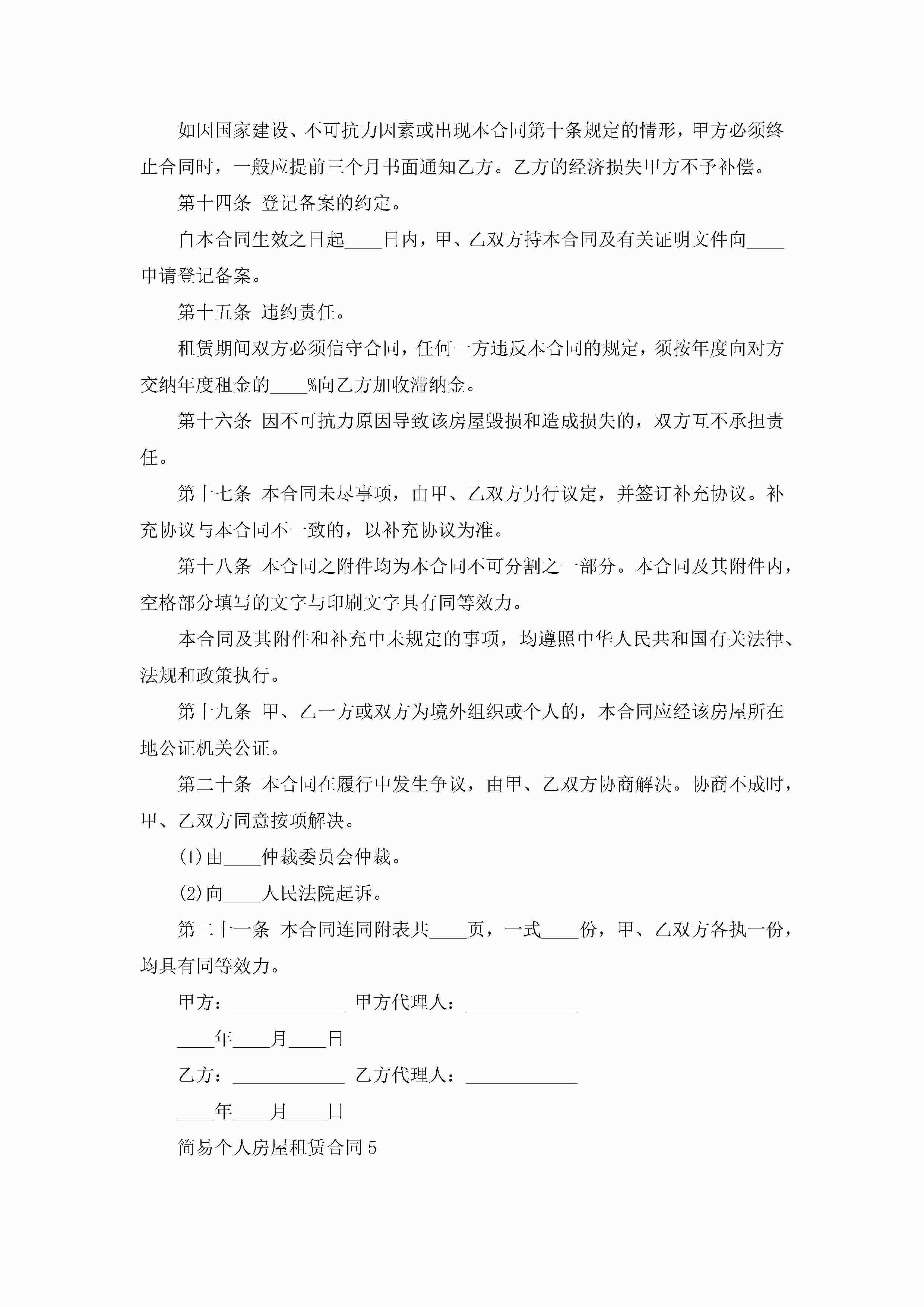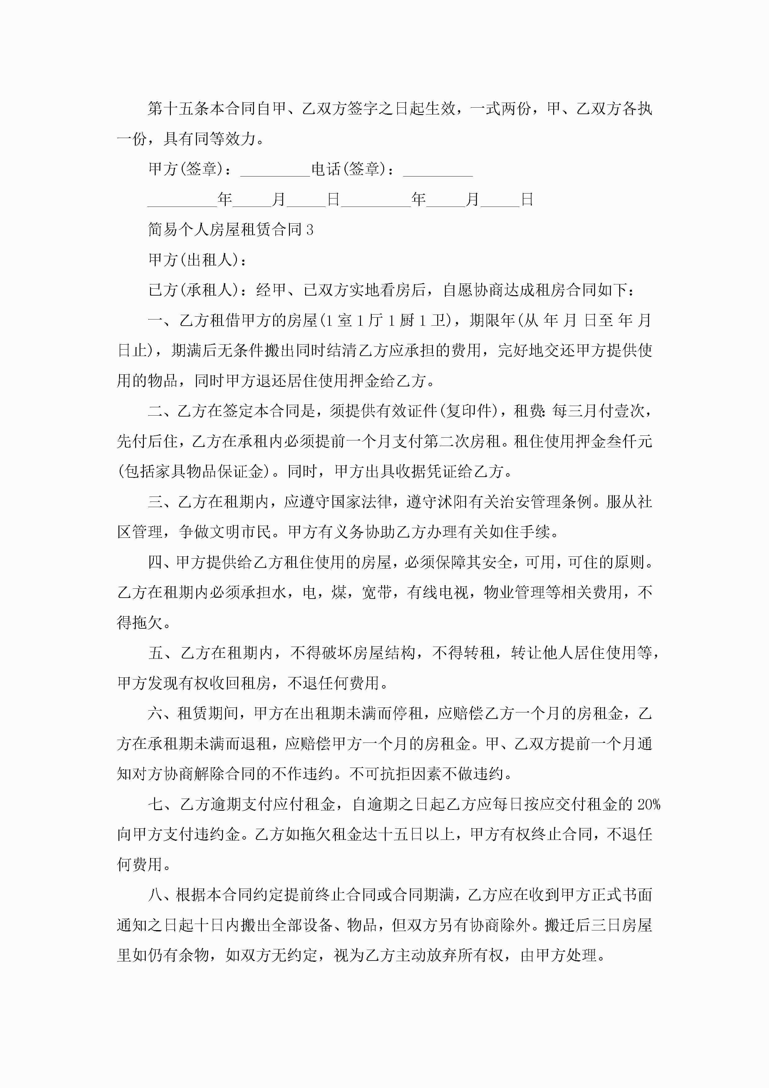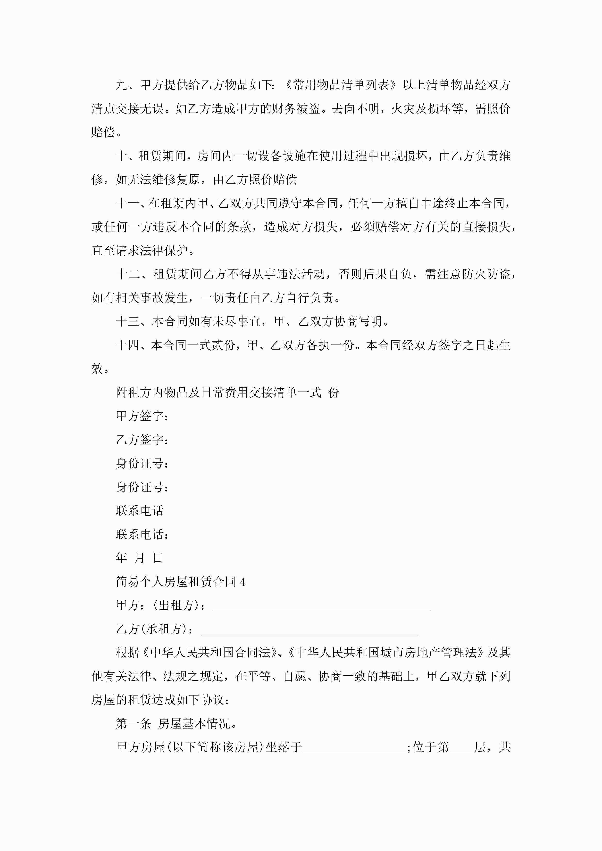 简易个人房屋租赁合同5篇jugei3月23日 01:47发布关注217 简易个人房屋租赁合同5篇此内容为付费资源,请付费后查看¥10.9 单篇文档限时特惠¥15个人会员开通企业会员开通立即下载无需登陆!可直接快捷下载单个模板付费资源© 版权声明THE ENDWord模板# 实用文档# 实用模板# 合同模板# 租房合同 如有问题,可点击最底部“联系我们”联系客服 分享QQ空间微博QQ好友海报分享复制链接收藏