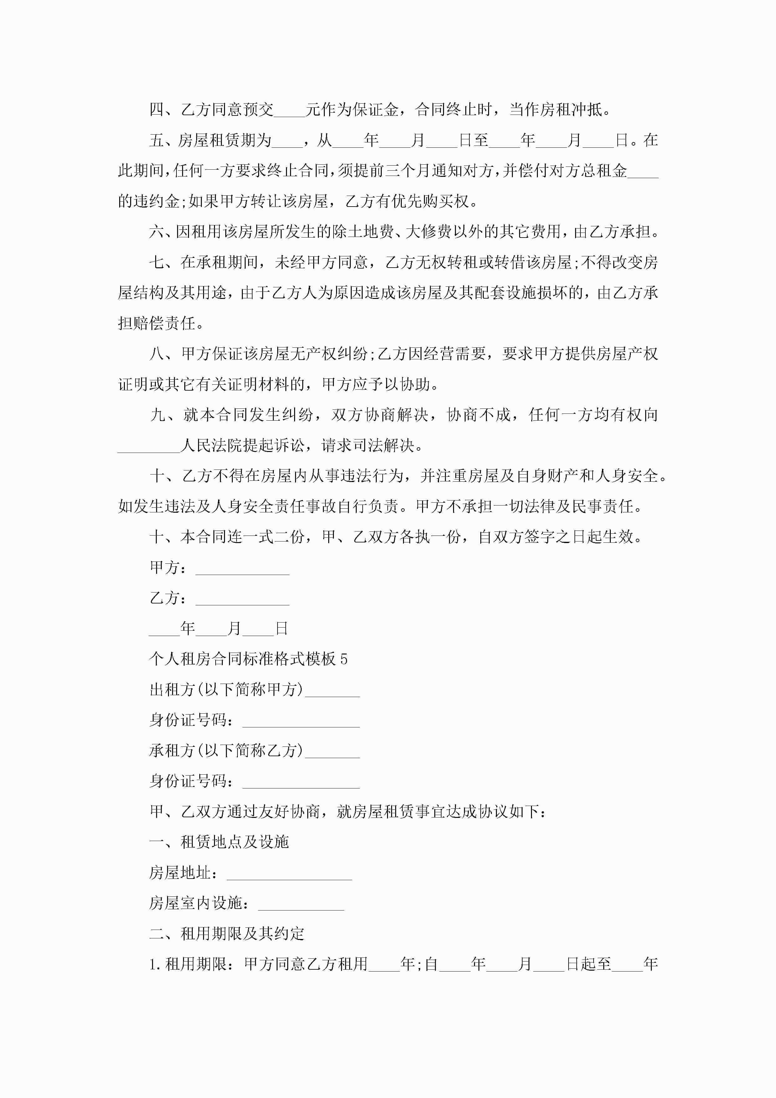 个人租房合同标准格式模板5篇jugei3月23日 01:47发布关注221 个人租房合同标准格式模板5篇此内容为付费资源,请付费后查看¥10.9 单篇文档限时特惠¥15个人会员开通企业会员开通立即下载无需登陆!可直接快捷下载单个模板付费资源© 版权声明THE ENDWord模板# 实用文档# 实用模板# 合同模板# 租房合同 如有问题,可点击最底部“联系我们”联系客服 分享QQ空间微博QQ好友海报分享复制链接收藏