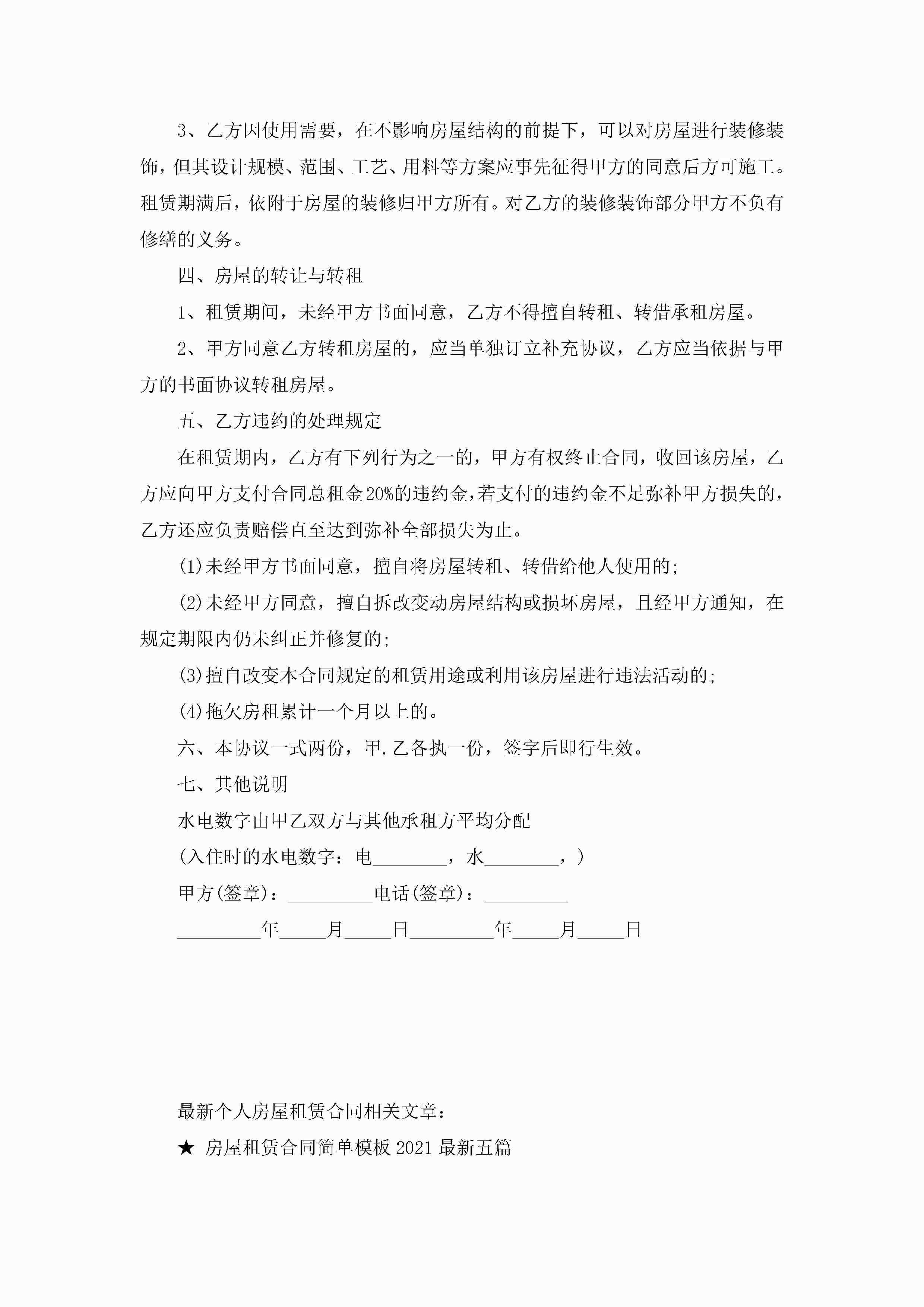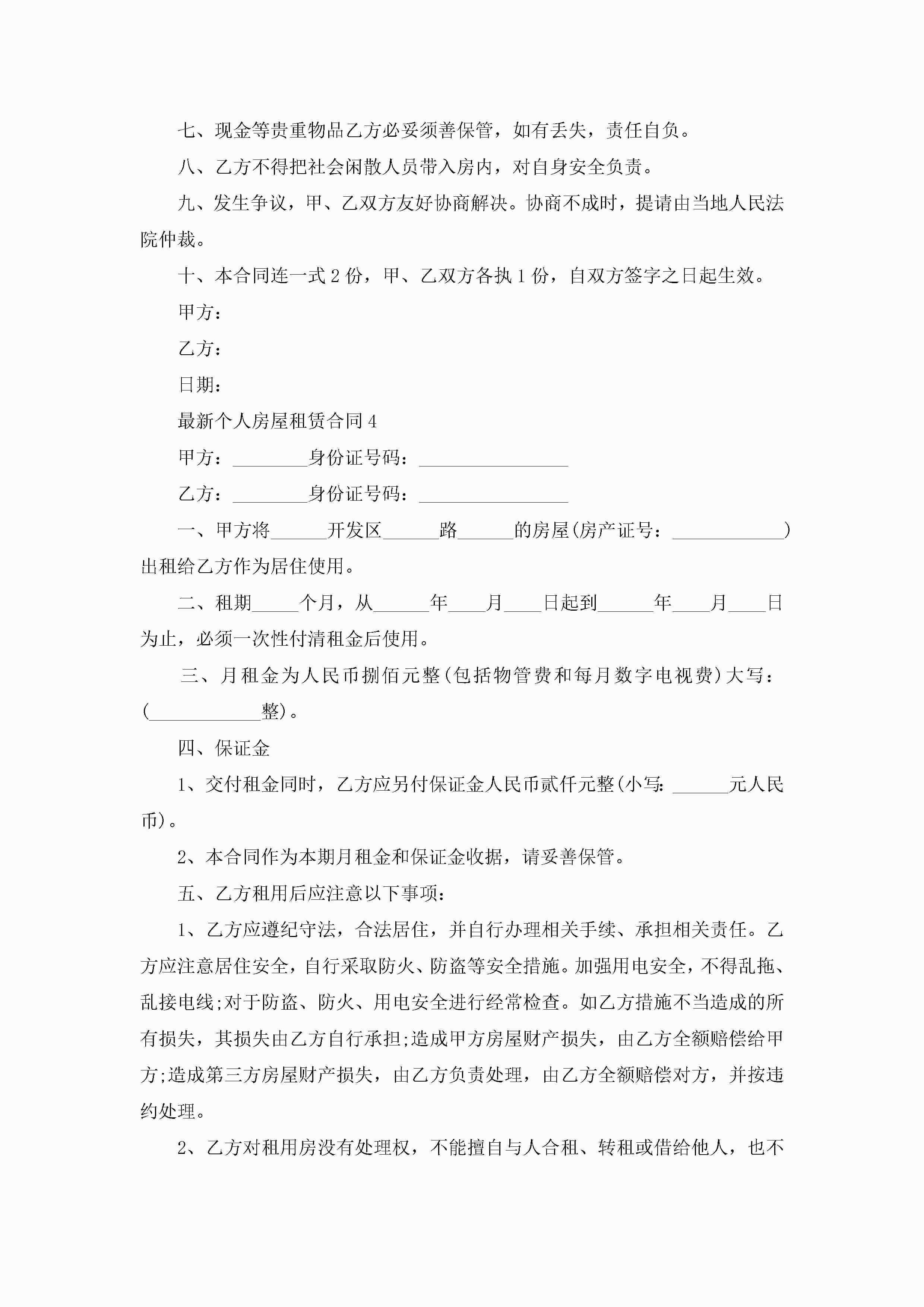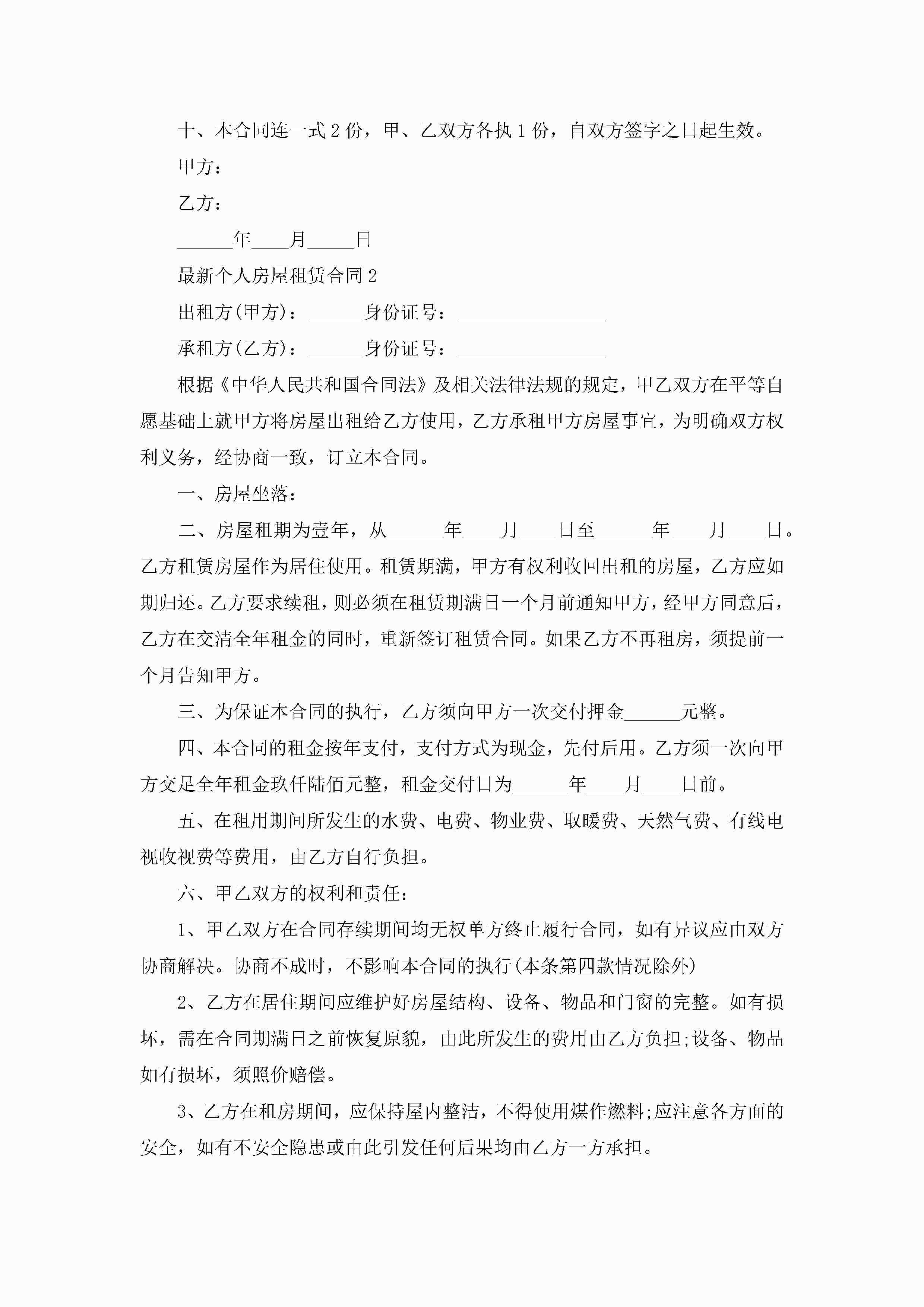 最新个人房屋租赁合同5篇jugei3月23日 01:47发布关注191 最新个人房屋租赁合同5篇此内容为付费资源,请付费后查看¥10.9 单篇文档限时特惠¥15个人会员开通企业会员开通立即下载无需登陆!可直接快捷下载单个模板付费资源© 版权声明THE ENDWord模板# 实用文档# 实用模板# 合同模板# 租房合同 如有问题,可点击最底部“联系我们”联系客服 分享QQ空间微博QQ好友海报分享复制链接收藏