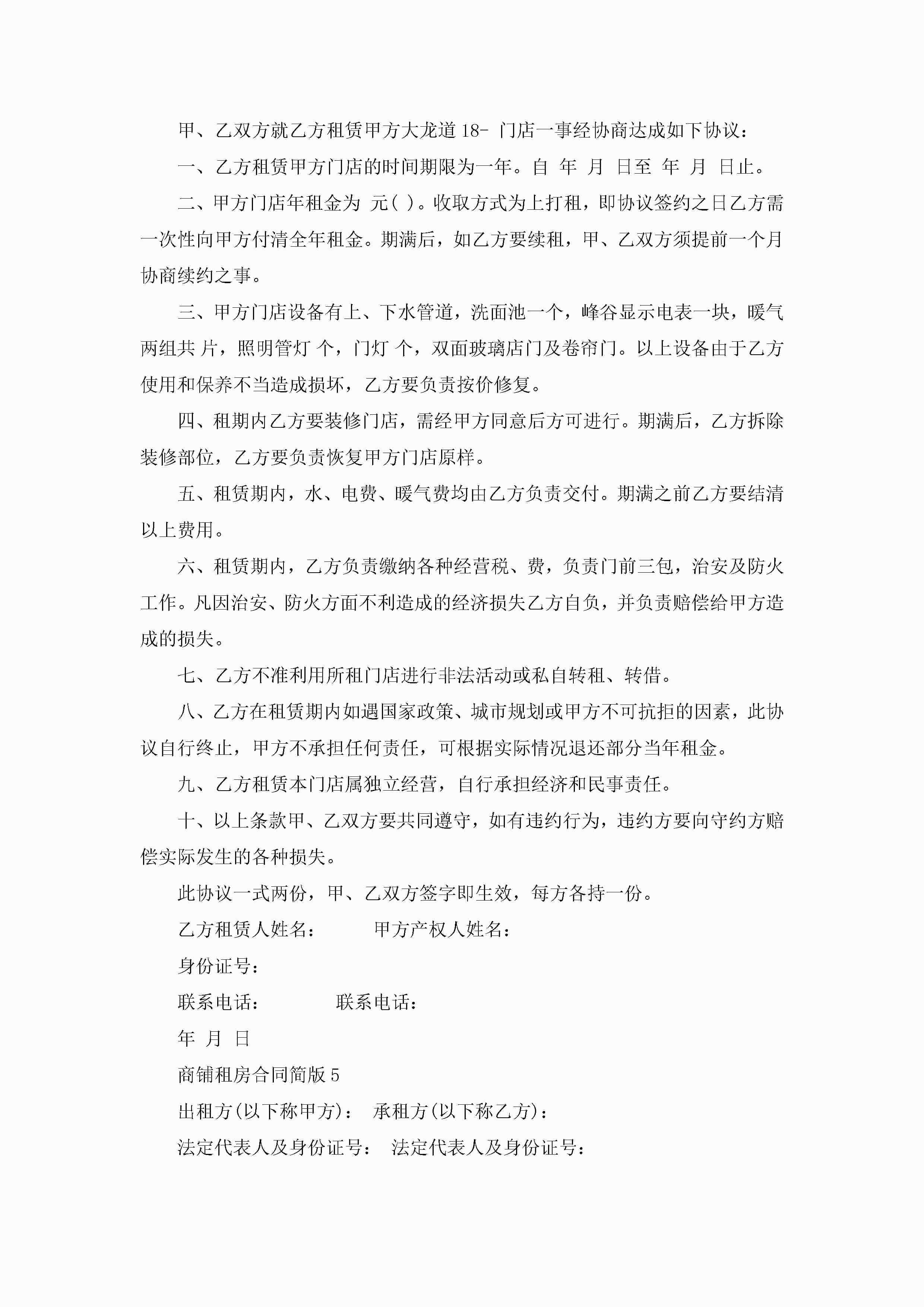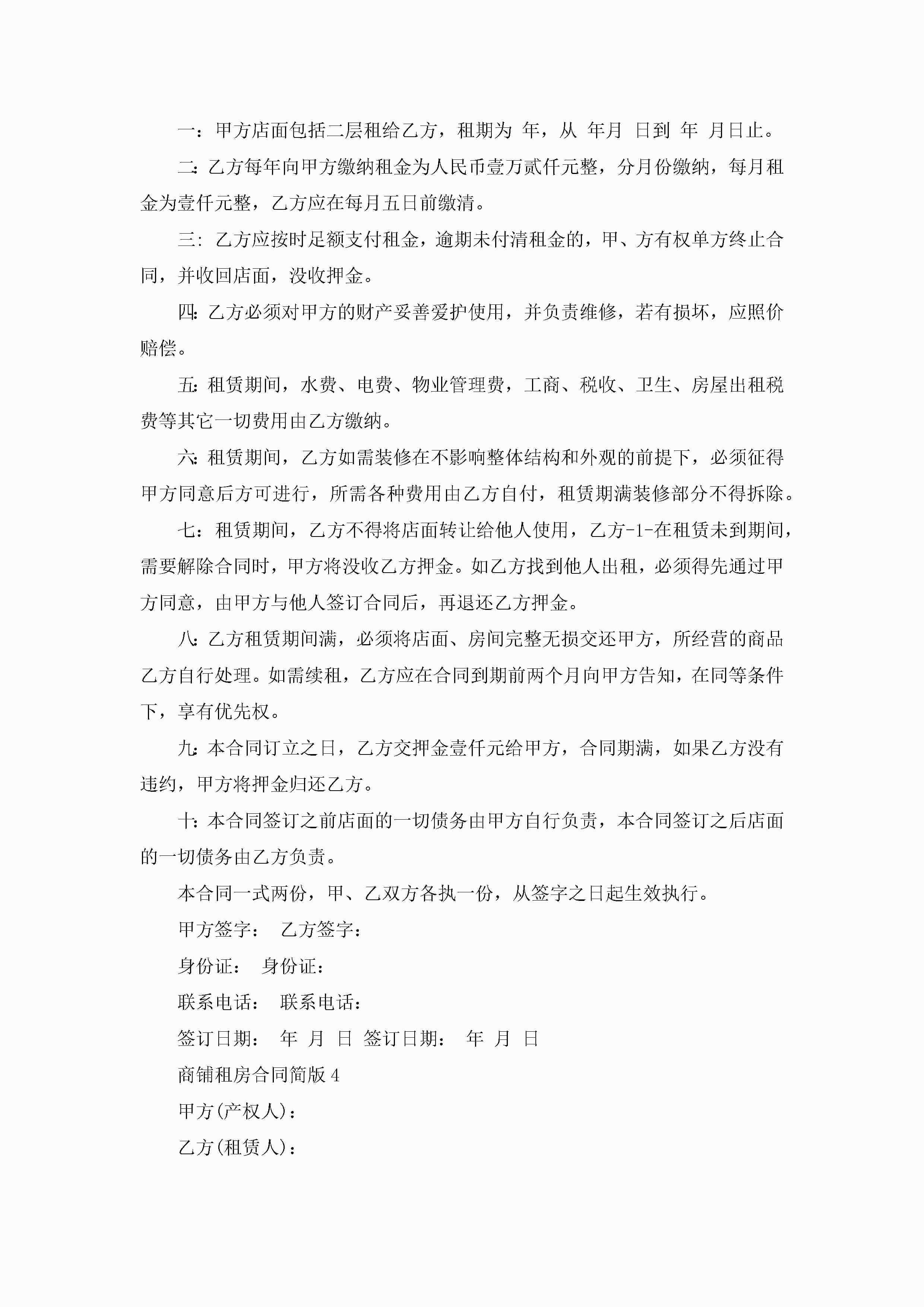 商铺租房合同简版5篇jugei3月23日 01:47发布关注234 商铺租房合同简版5篇此内容为付费资源,请付费后查看¥10.9 单篇文档限时特惠¥15个人会员开通企业会员开通立即下载无需登陆!可直接快捷下载单个模板付费资源© 版权声明THE ENDWord模板# 实用文档# 实用模板# 合同模板# 租房合同 如有问题,可点击最底部“联系我们”联系客服 分享QQ空间微博QQ好友海报分享复制链接收藏