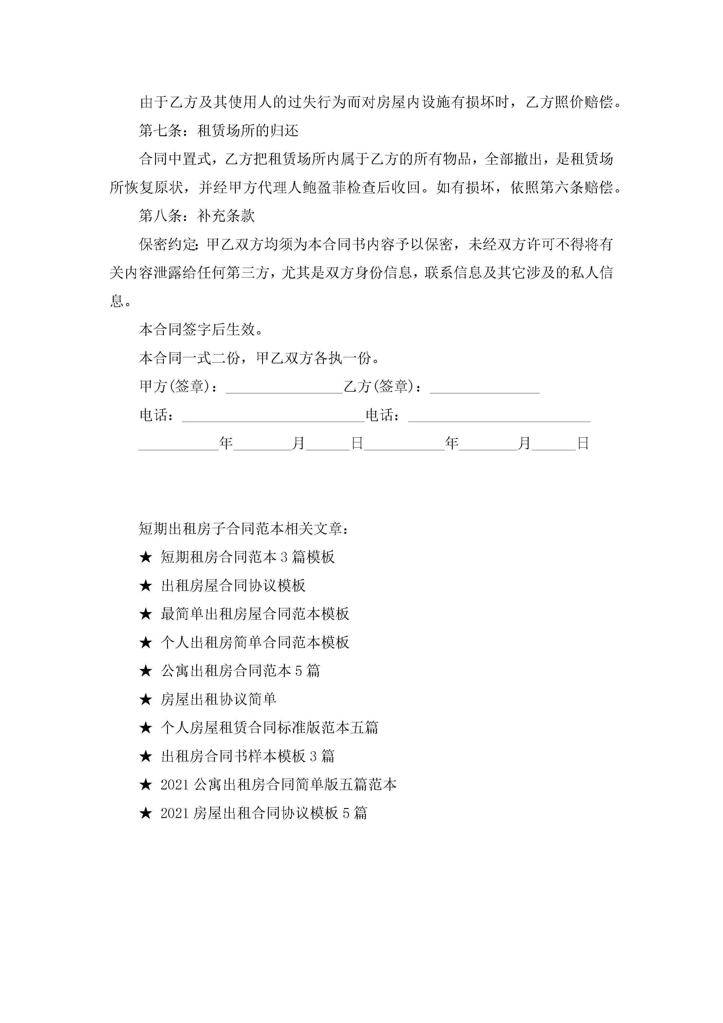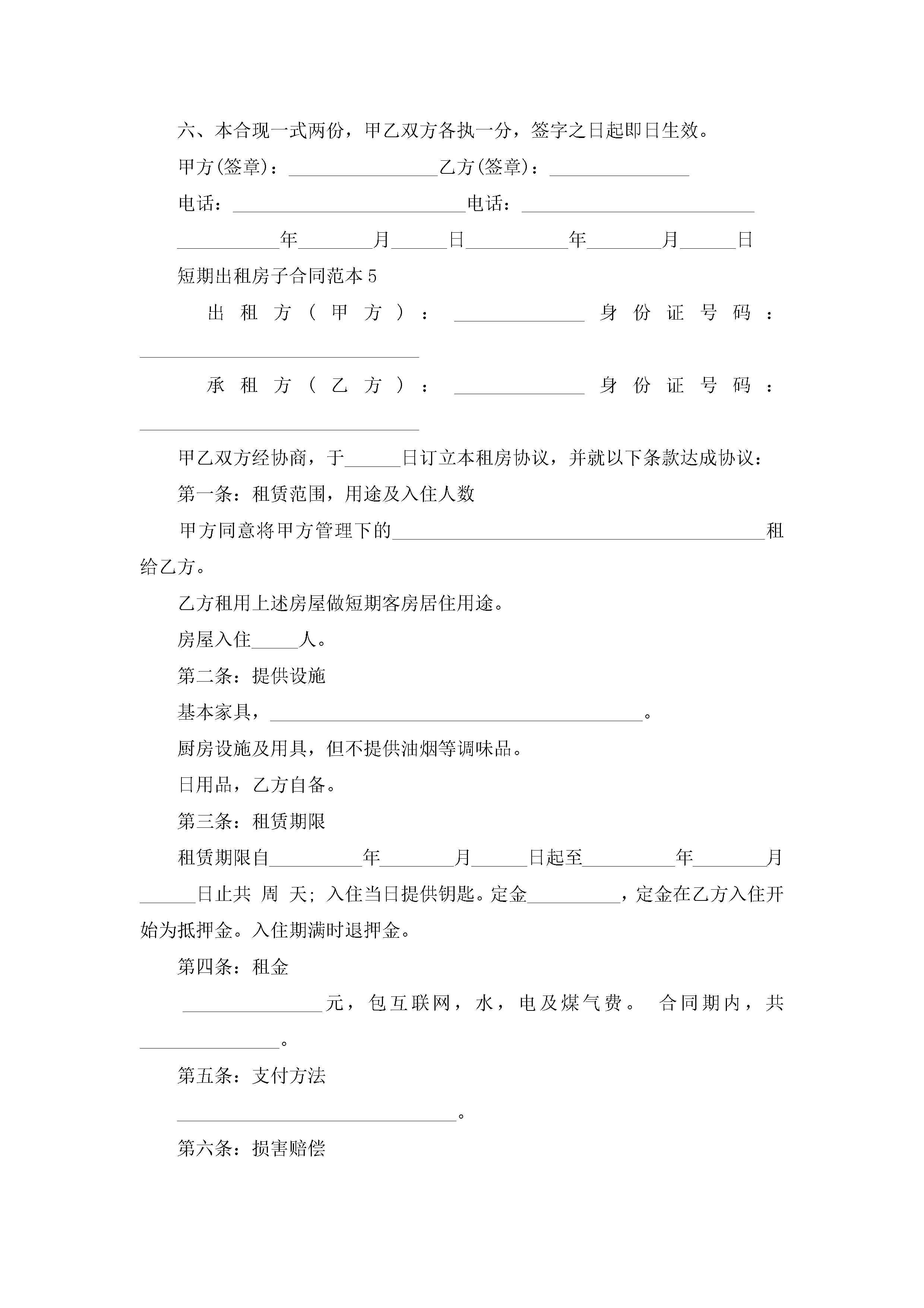 短期出租房子合同范本5篇jugei3月23日 01:47发布关注213 短期出租房子合同范本5篇此内容为付费资源,请付费后查看¥10.9 单篇文档限时特惠¥15个人会员开通企业会员开通立即下载无需登陆!可直接快捷下载单个模板付费资源© 版权声明THE ENDWord模板# 实用文档# 实用模板# 合同模板# 租房合同 如有问题,可点击最底部“联系我们”联系客服 分享QQ空间微博QQ好友海报分享复制链接收藏