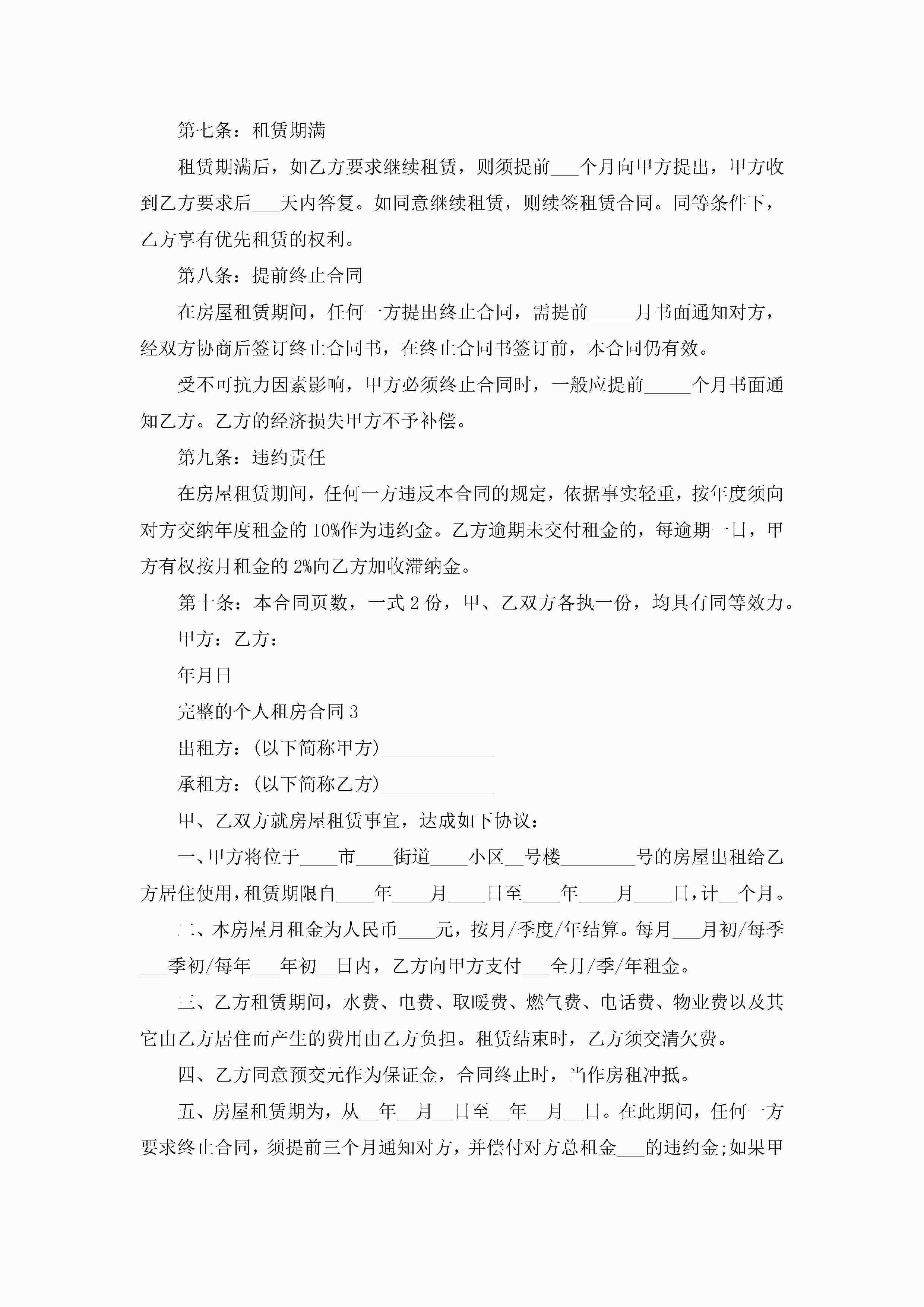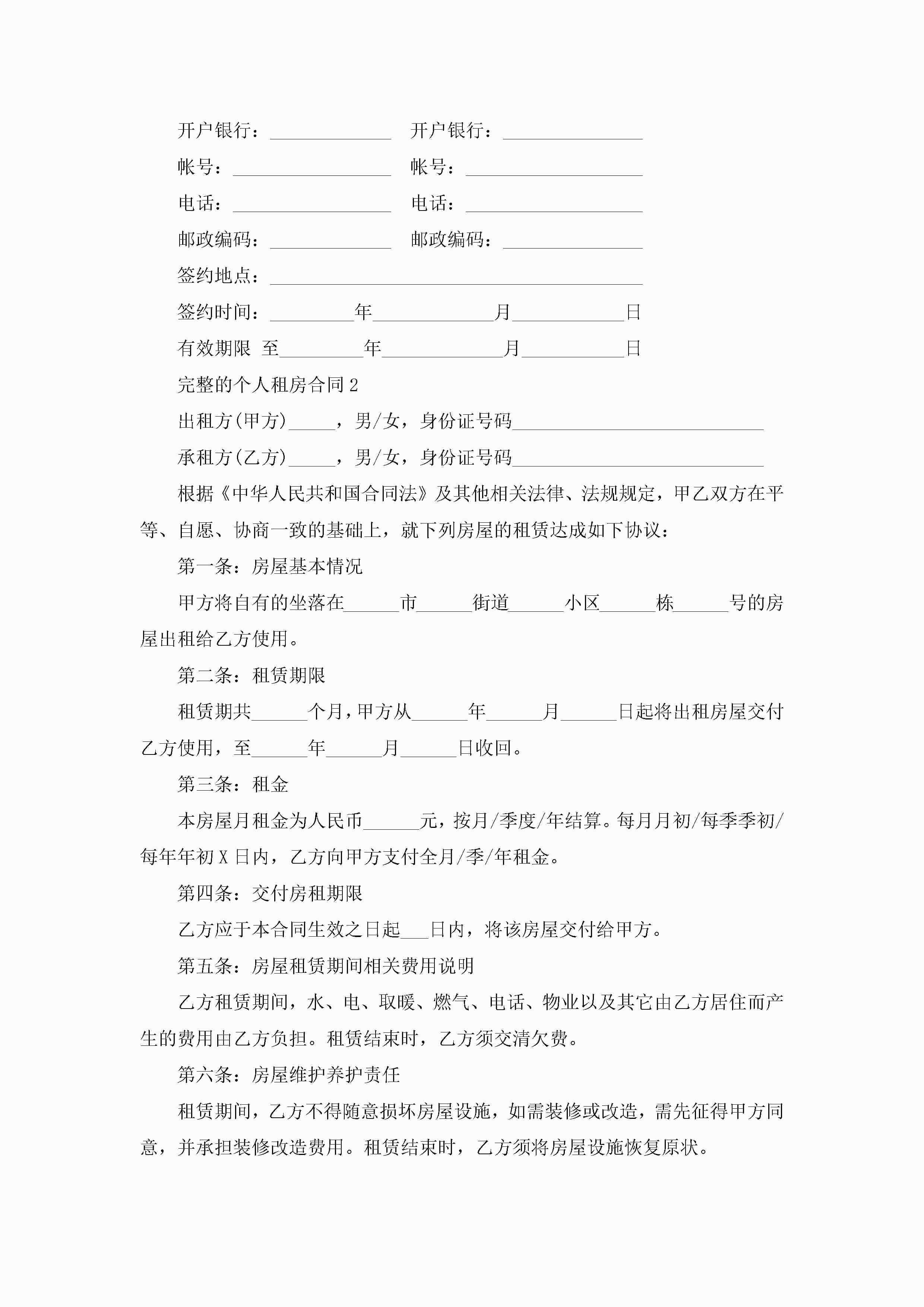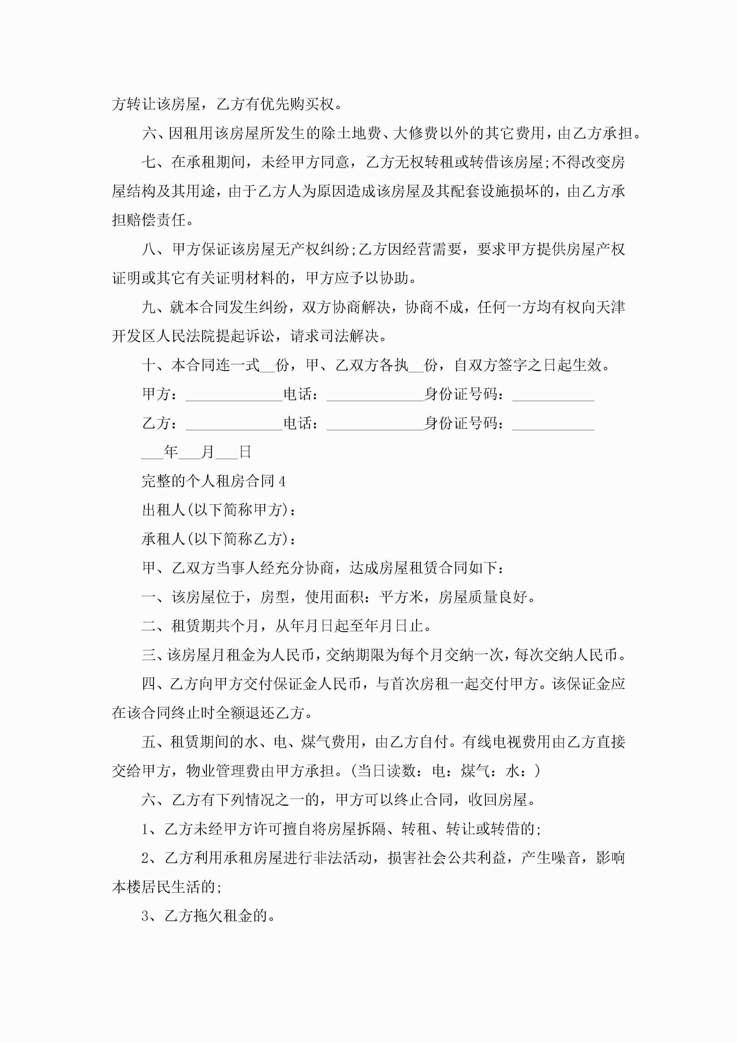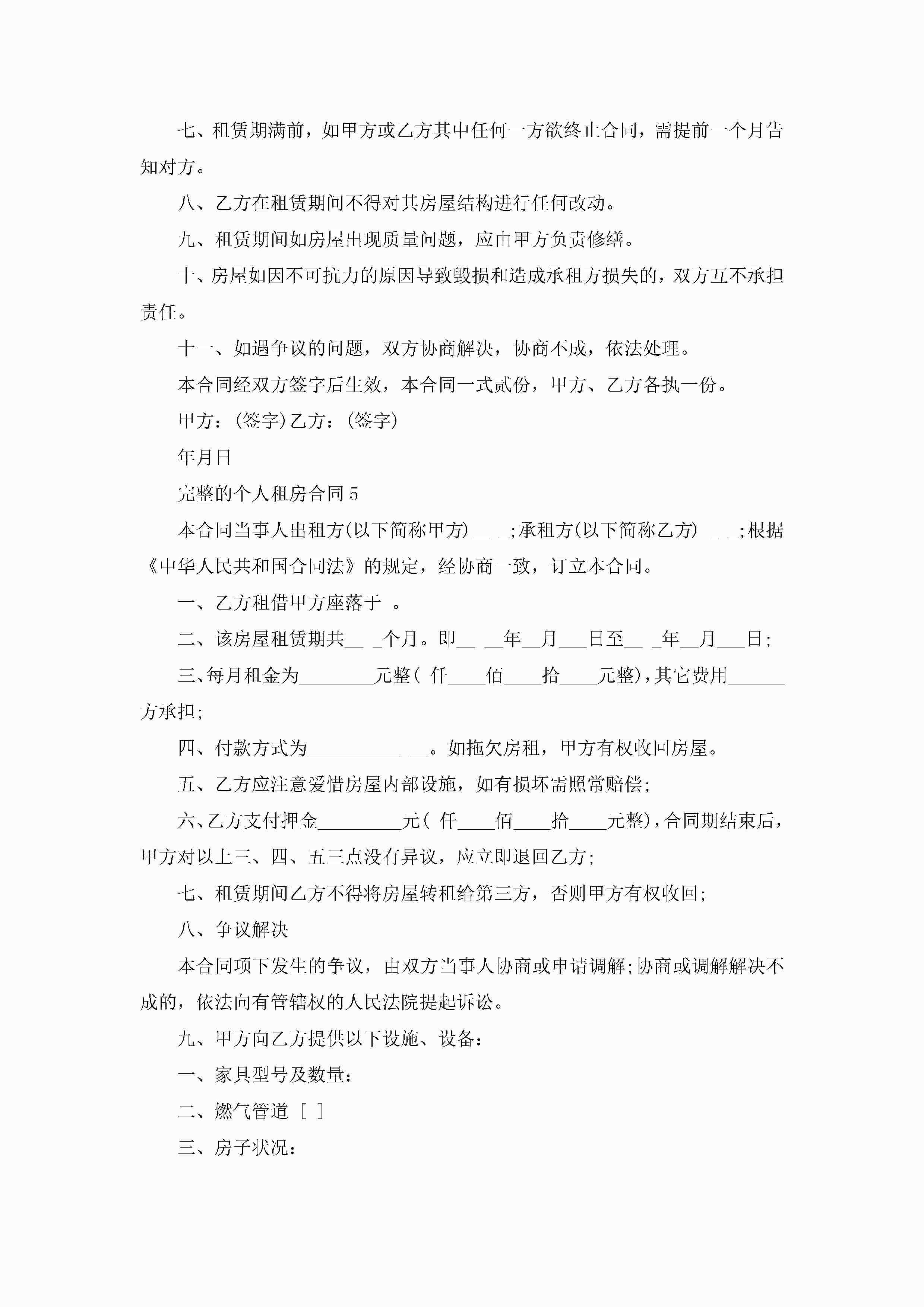完整的个人租房合同5篇jugei3月23日 01:47发布关注218 完整的个人租房合同5篇此内容为付费资源,请付费后查看¥10.9 单篇文档限时特惠¥15个人会员开通企业会员开通立即下载无需登陆!可直接快捷下载单个模板付费资源© 版权声明THE ENDWord模板# 实用文档# 实用模板# 合同模板# 租房合同 如有问题,可点击最底部“联系我们”联系客服 分享QQ空间微博QQ好友海报分享复制链接收藏