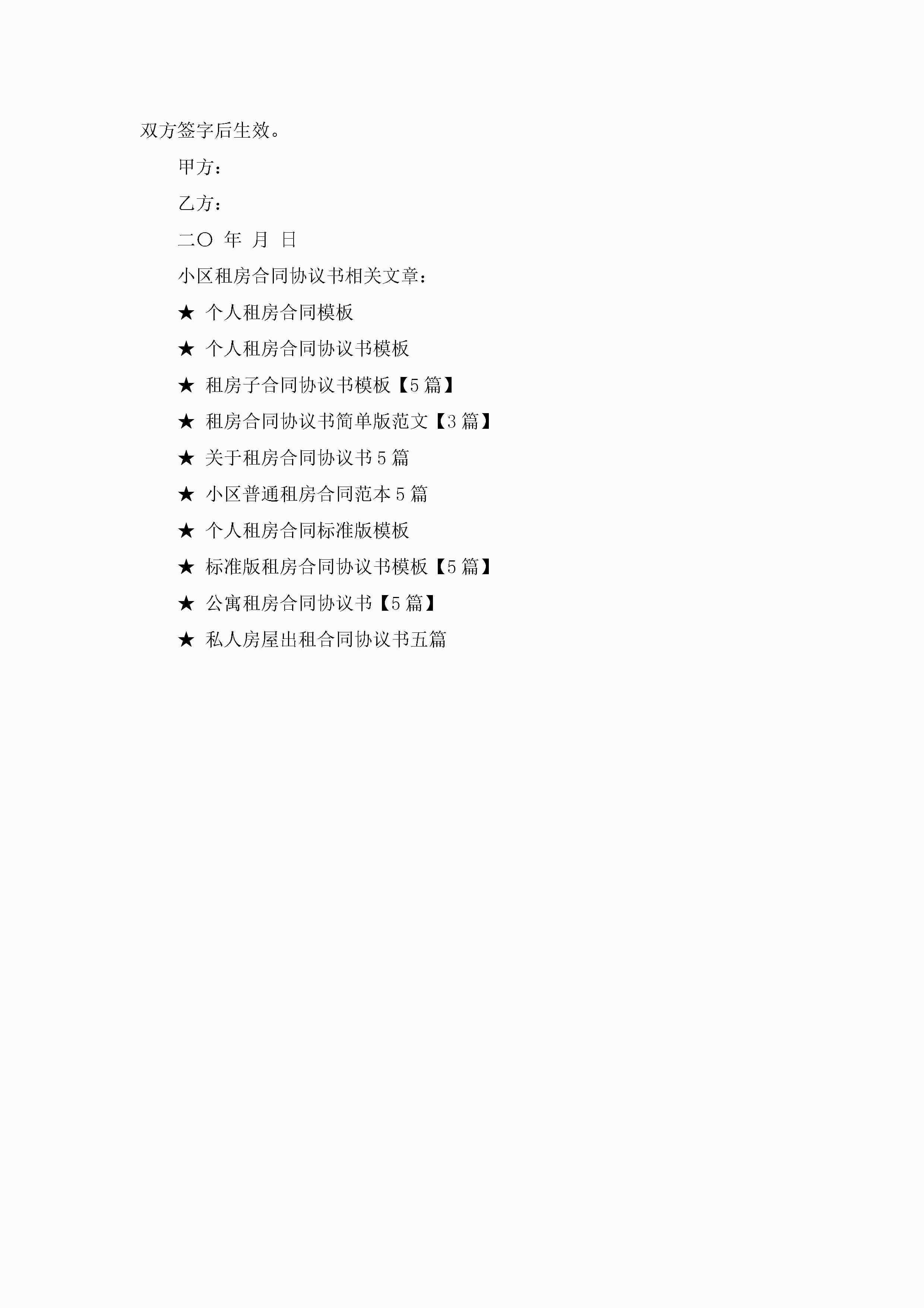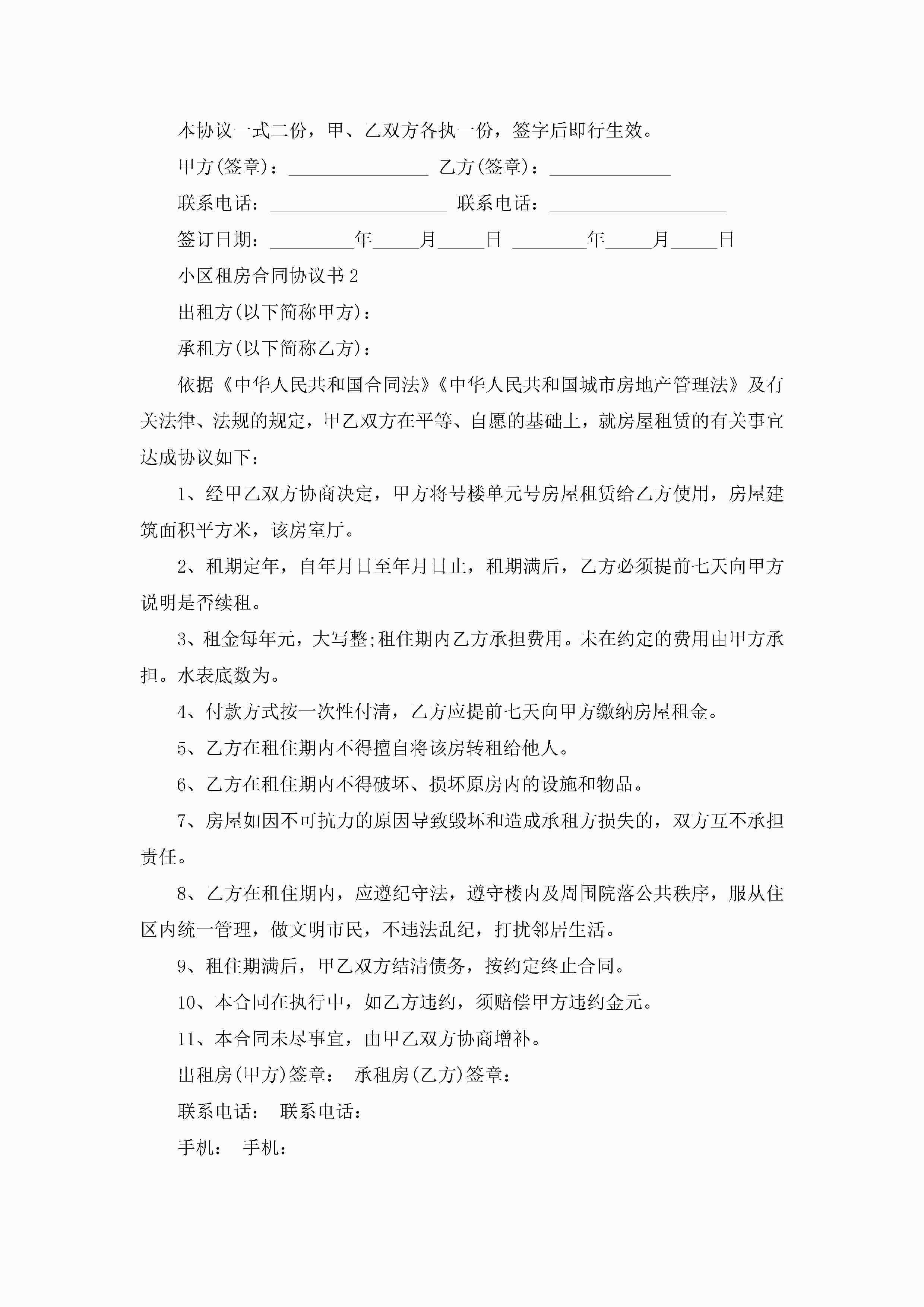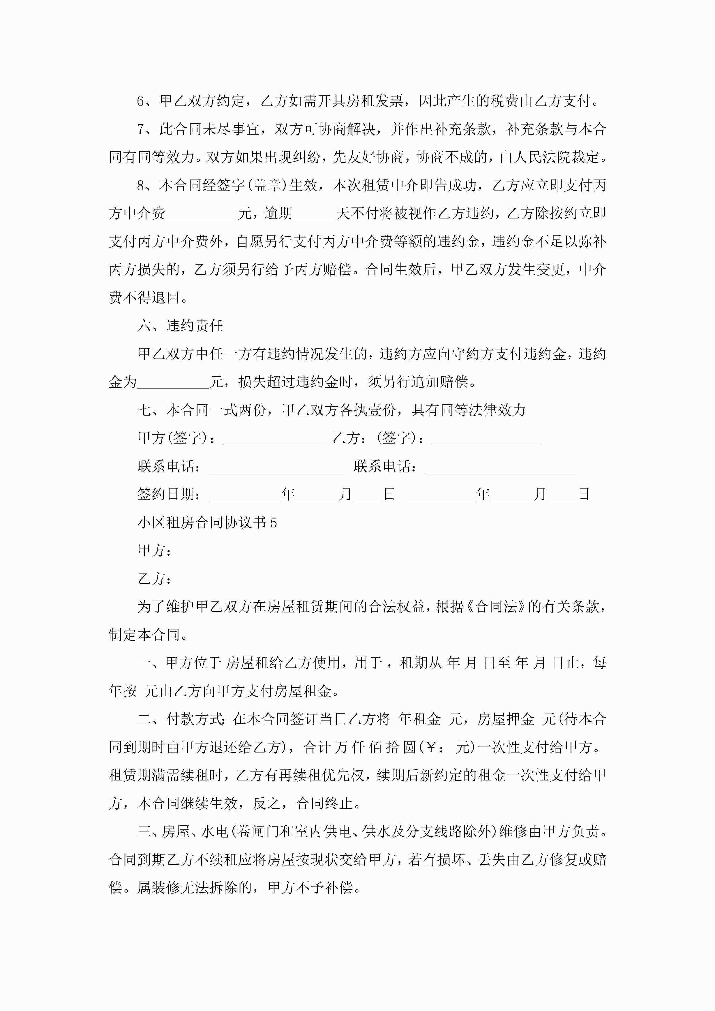 小区租房合同协议书5篇jugei3月23日 01:47发布关注186 小区租房合同协议书5篇此内容为付费资源,请付费后查看¥10.9 单篇文档限时特惠¥15个人会员开通企业会员开通立即下载无需登陆!可直接快捷下载单个模板付费资源© 版权声明THE ENDWord模板# 实用文档# 实用模板# 合同模板# 租房合同 如有问题,可点击最底部“联系我们”联系客服 分享QQ空间微博QQ好友海报分享复制链接收藏