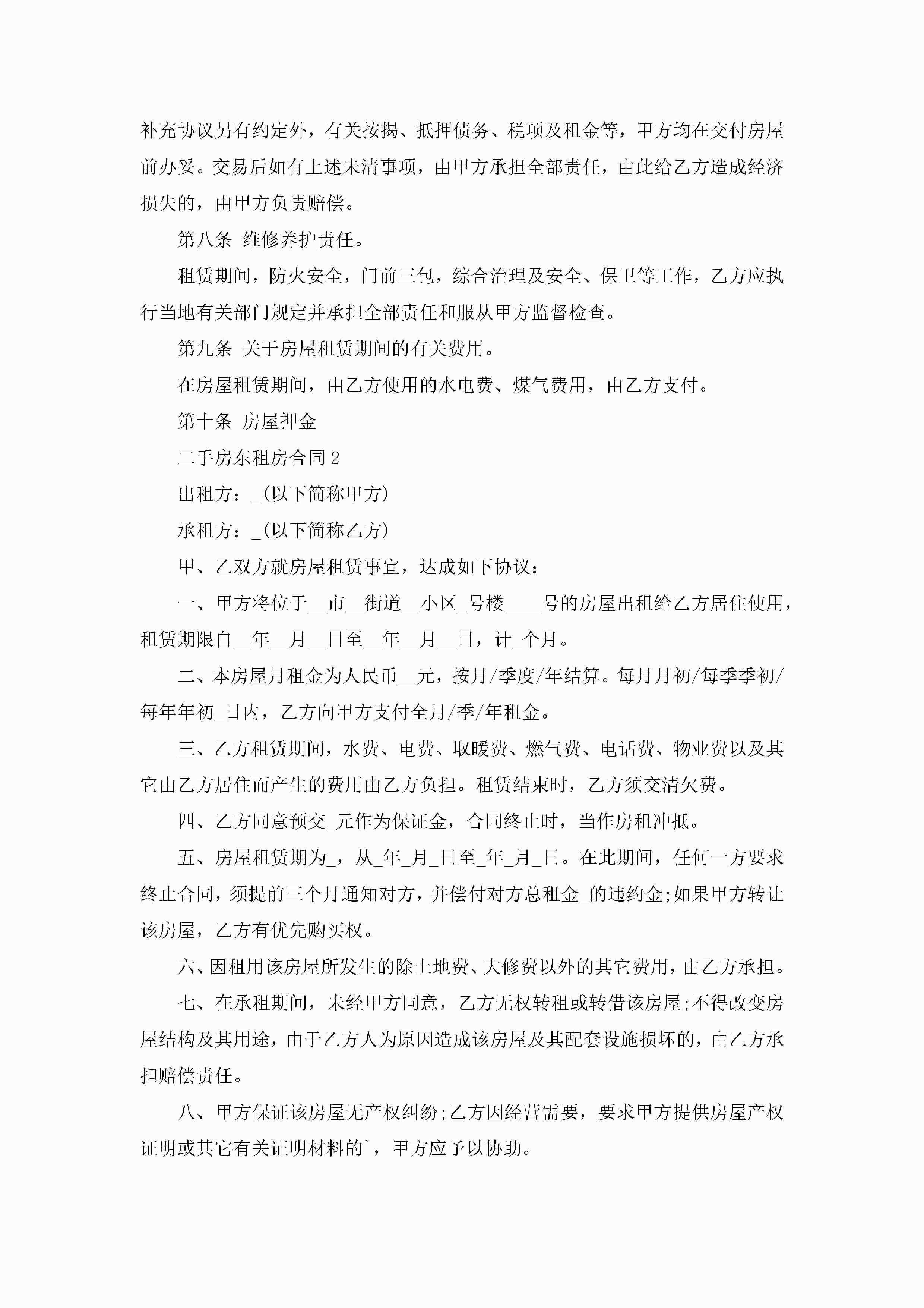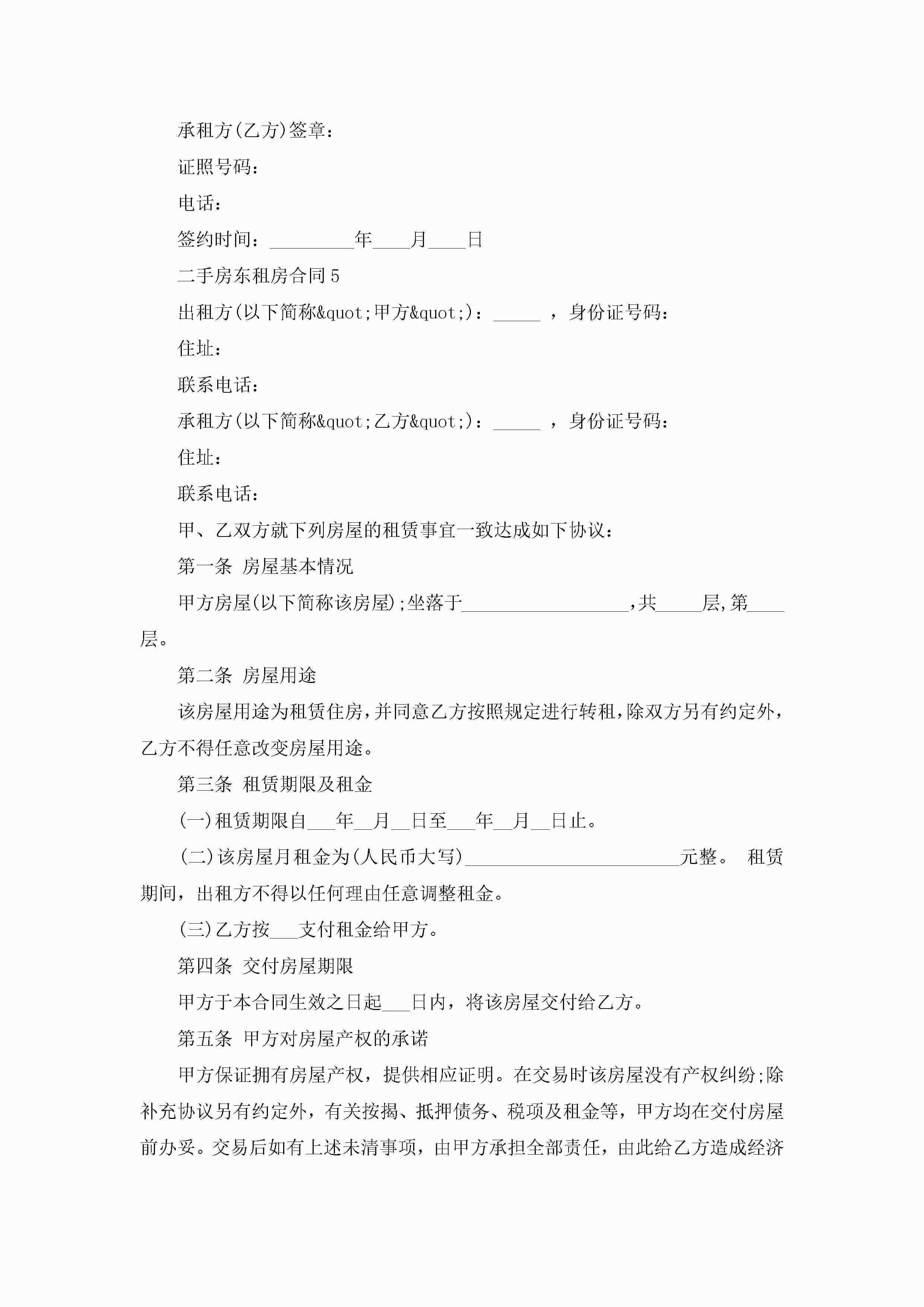 二手房东租房合同5篇jugei3月23日 01:47发布关注252 二手房东租房合同5篇此内容为付费资源,请付费后查看¥10.9 单篇文档限时特惠¥15个人会员开通企业会员开通立即下载无需登陆!可直接快捷下载单个模板付费资源© 版权声明THE ENDWord模板# 实用文档# 实用模板# 合同模板# 租房合同 如有问题,可点击最底部“联系我们”联系客服 分享QQ空间微博QQ好友海报分享复制链接收藏