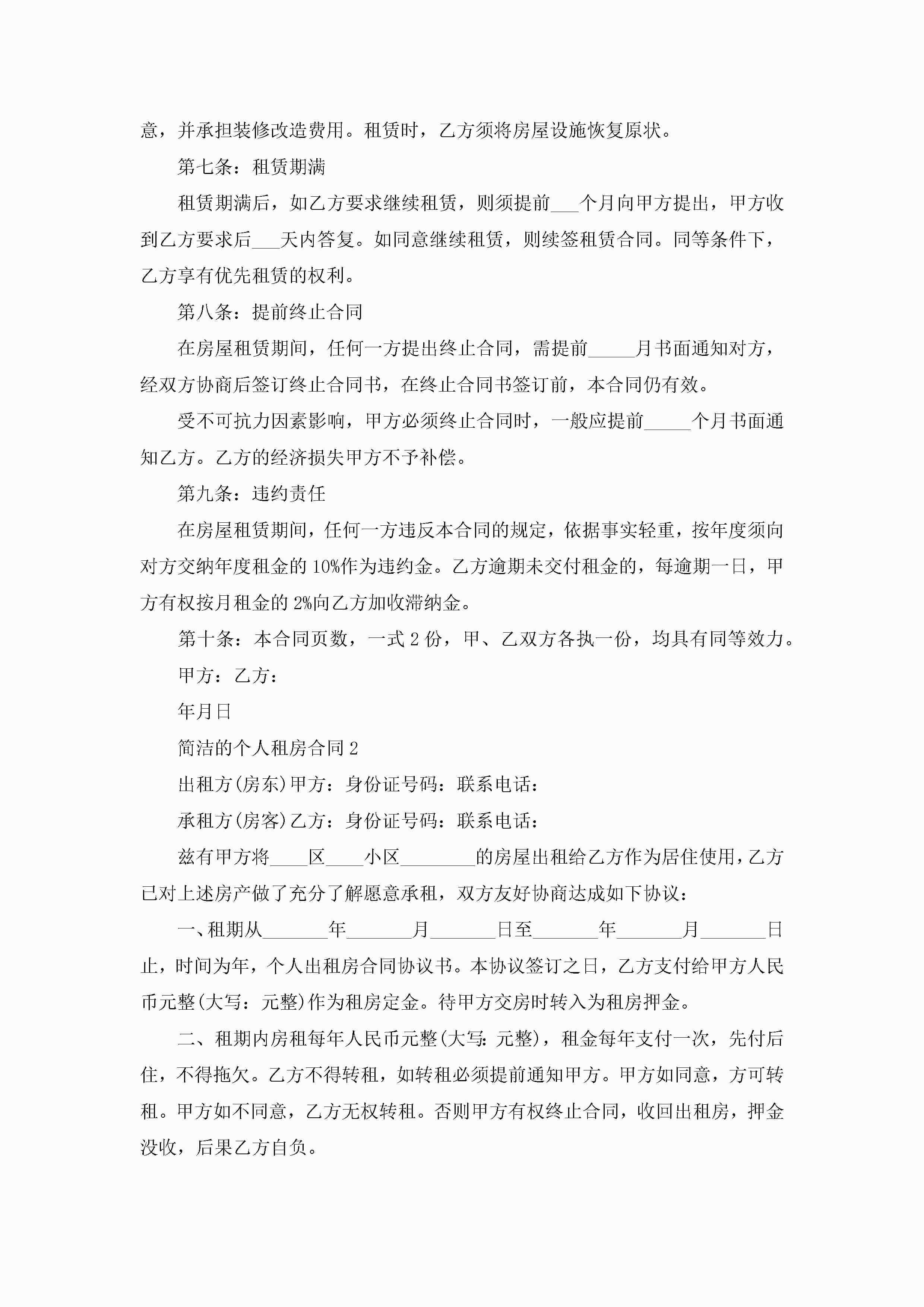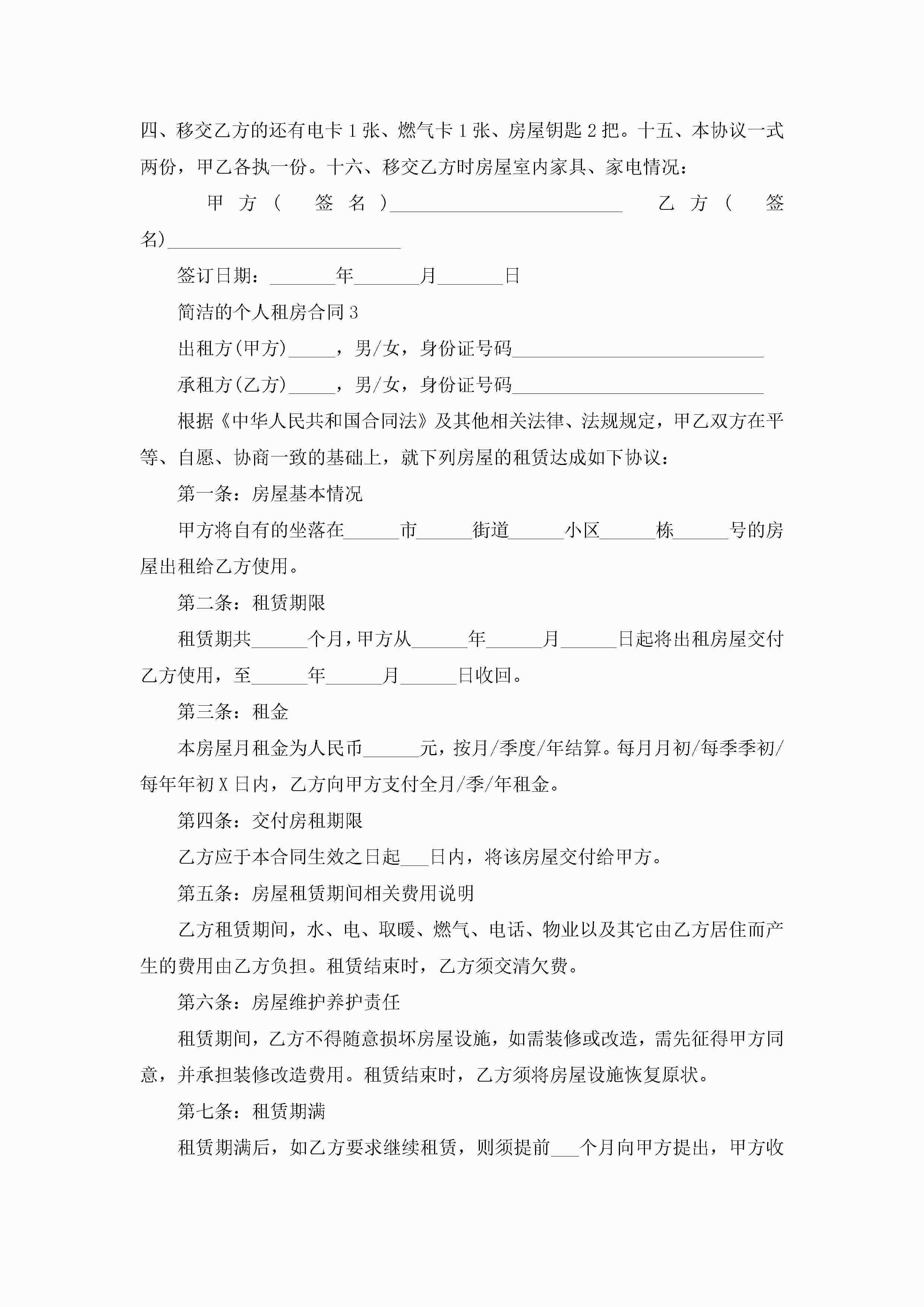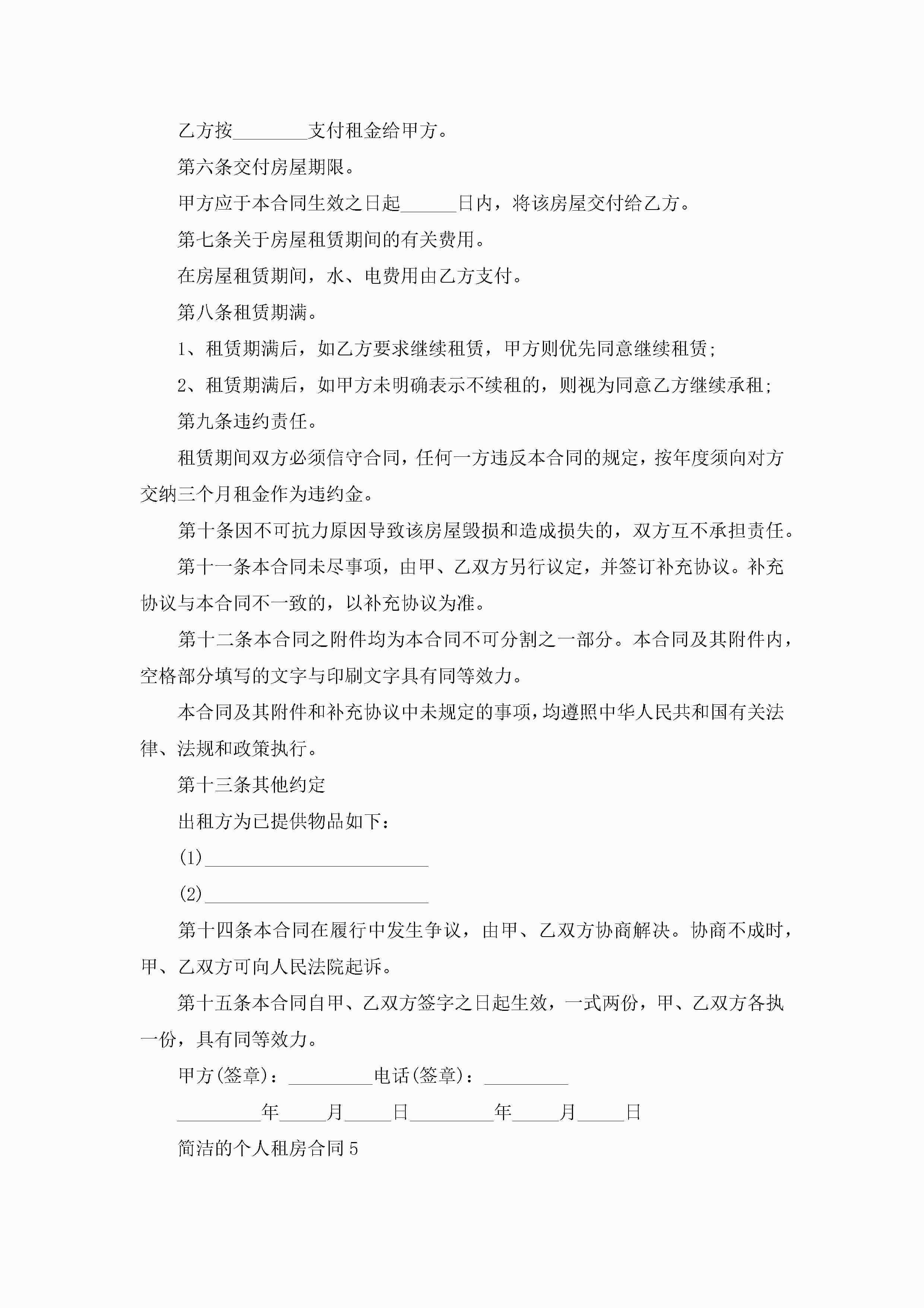 简洁的个人租房合同5篇jugei3月23日 01:47发布关注192 简洁的个人租房合同5篇此内容为付费资源,请付费后查看¥10.9 单篇文档限时特惠¥15个人会员开通企业会员开通立即下载无需登陆!可直接快捷下载单个模板付费资源© 版权声明THE ENDWord模板# 实用文档# 实用模板# 合同模板# 租房合同 如有问题,可点击最底部“联系我们”联系客服 分享QQ空间微博QQ好友海报分享复制链接收藏