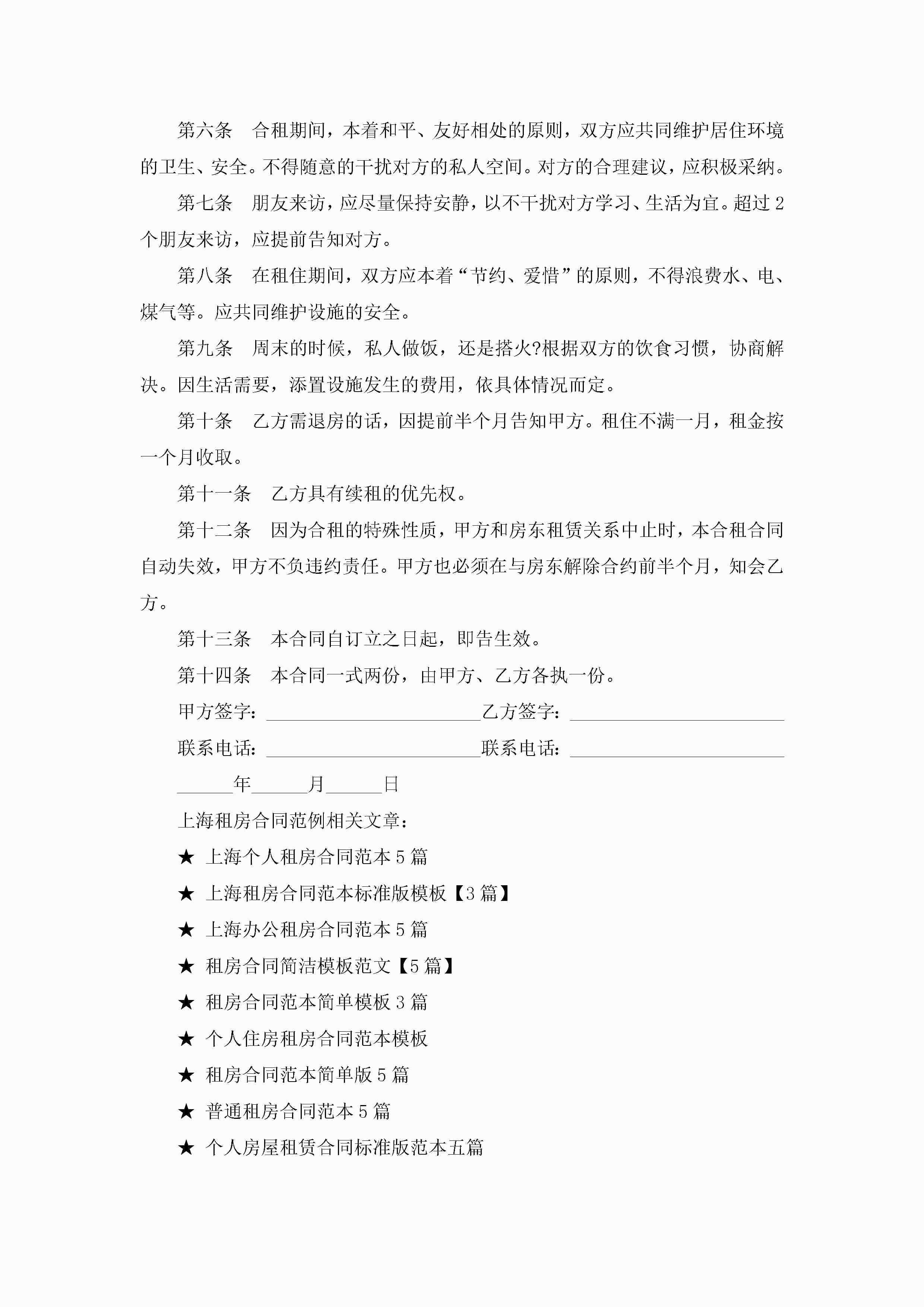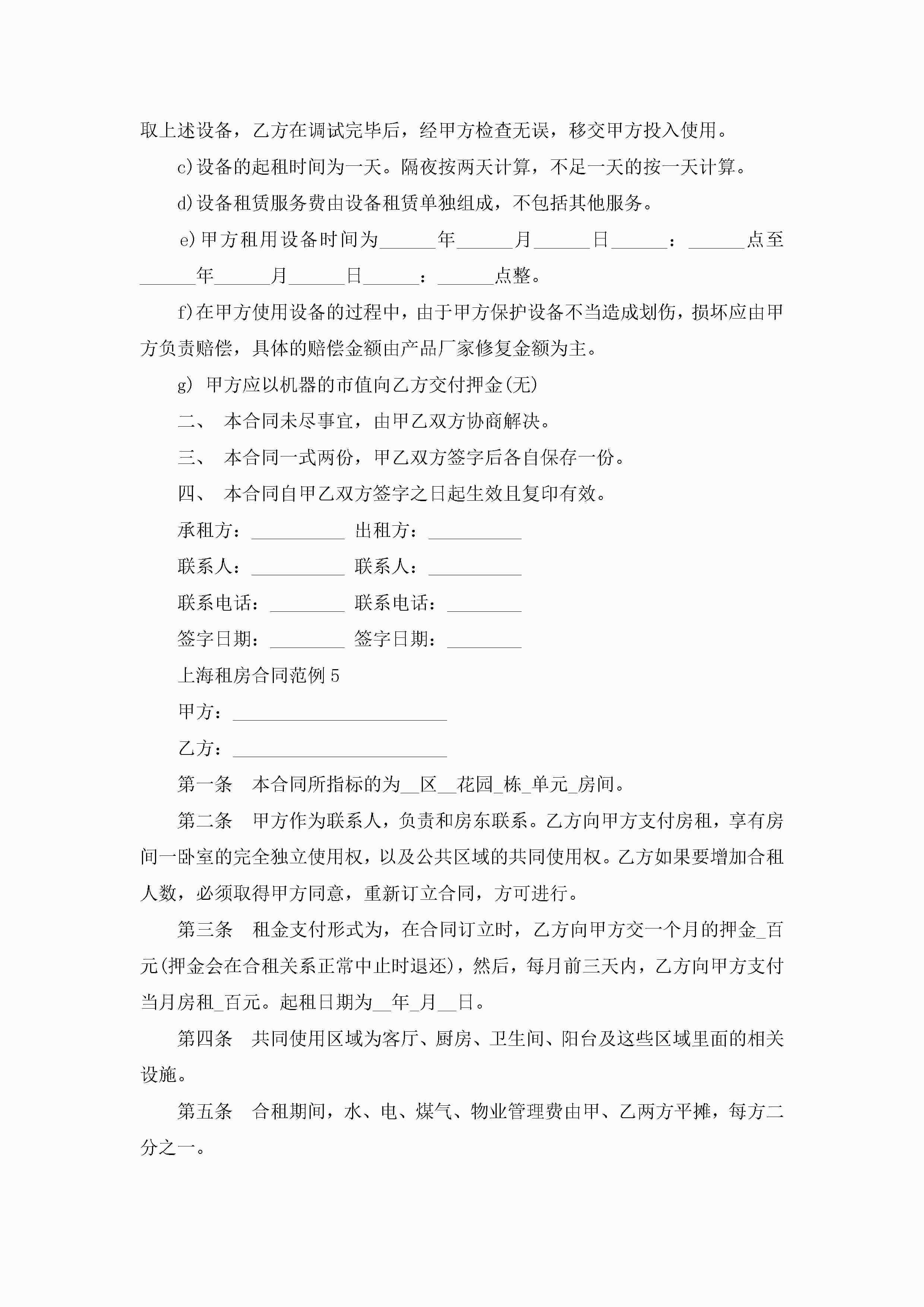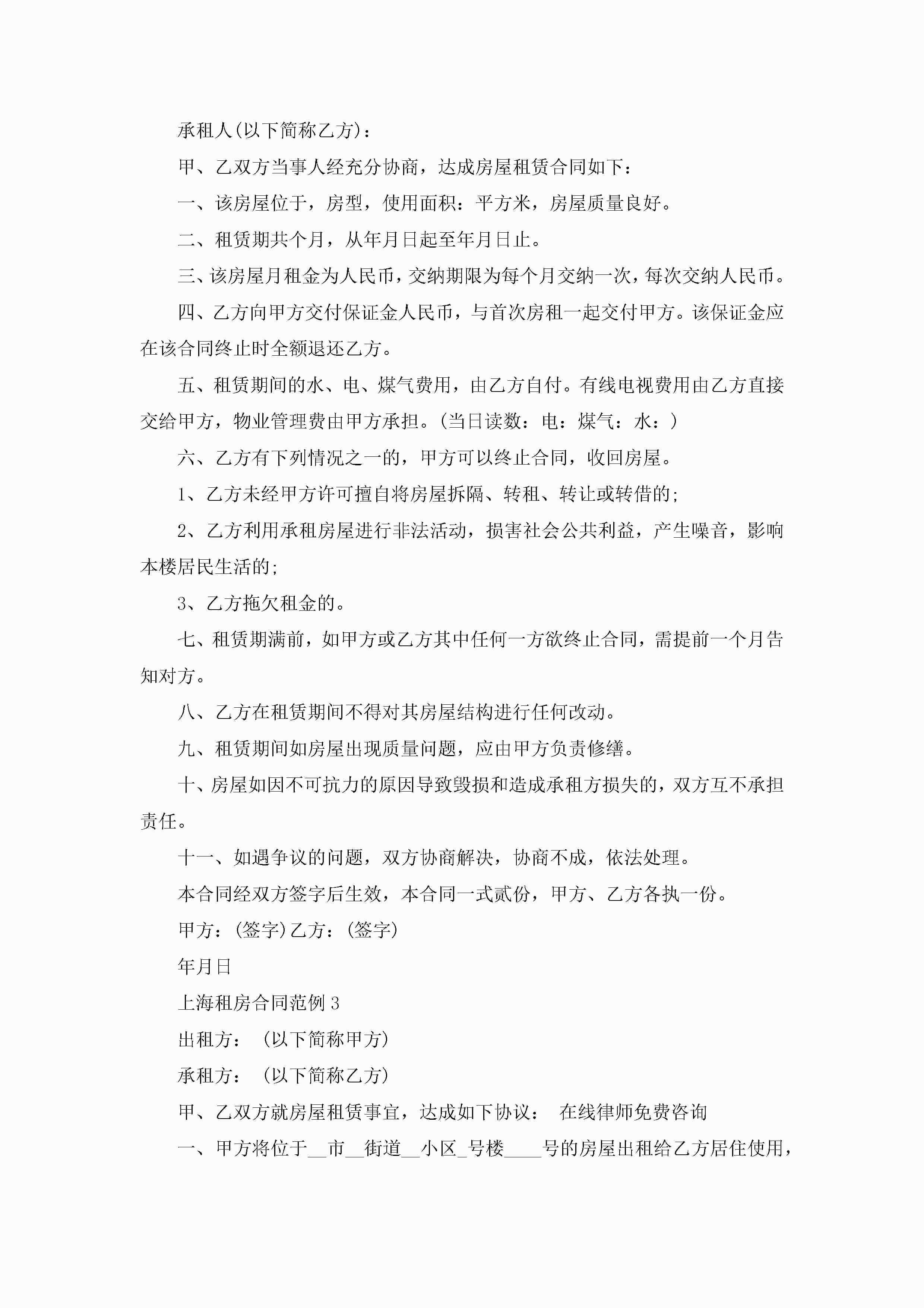 上海租房合同范例5篇jugei3月23日 01:47发布关注240 上海租房合同范例5篇此内容为付费资源,请付费后查看¥10.9 单篇文档限时特惠¥15个人会员开通企业会员开通立即下载无需登陆!可直接快捷下载单个模板付费资源© 版权声明THE ENDWord模板# 实用文档# 实用模板# 合同模板# 租房合同 如有问题,可点击最底部“联系我们”联系客服 分享QQ空间微博QQ好友海报分享复制链接收藏