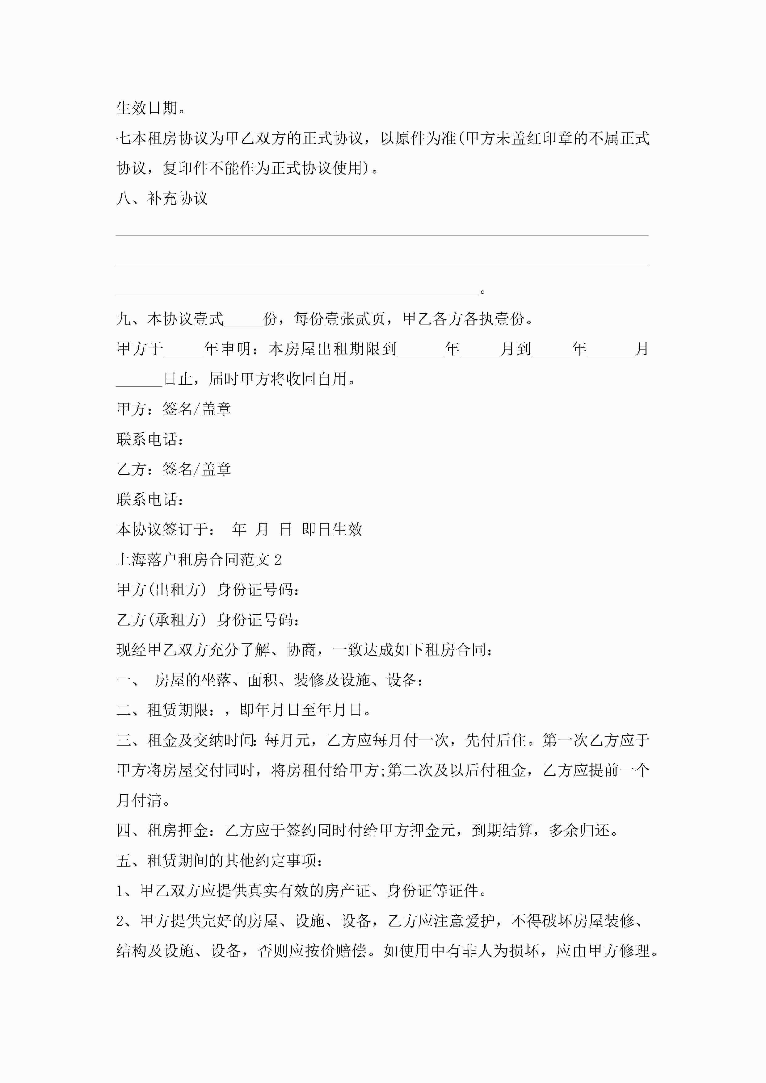 上海落户租房合同范文模板jugei3月23日 01:47发布关注244 上海落户租房合同范文模板此内容为付费资源,请付费后查看¥10.9 单篇文档限时特惠¥15个人会员开通企业会员开通立即下载无需登陆!可直接快捷下载单个模板付费资源© 版权声明THE ENDWord模板# 实用文档# 实用模板# 合同模板# 租房合同 如有问题,可点击最底部“联系我们”联系客服 分享QQ空间微博QQ好友海报分享复制链接收藏