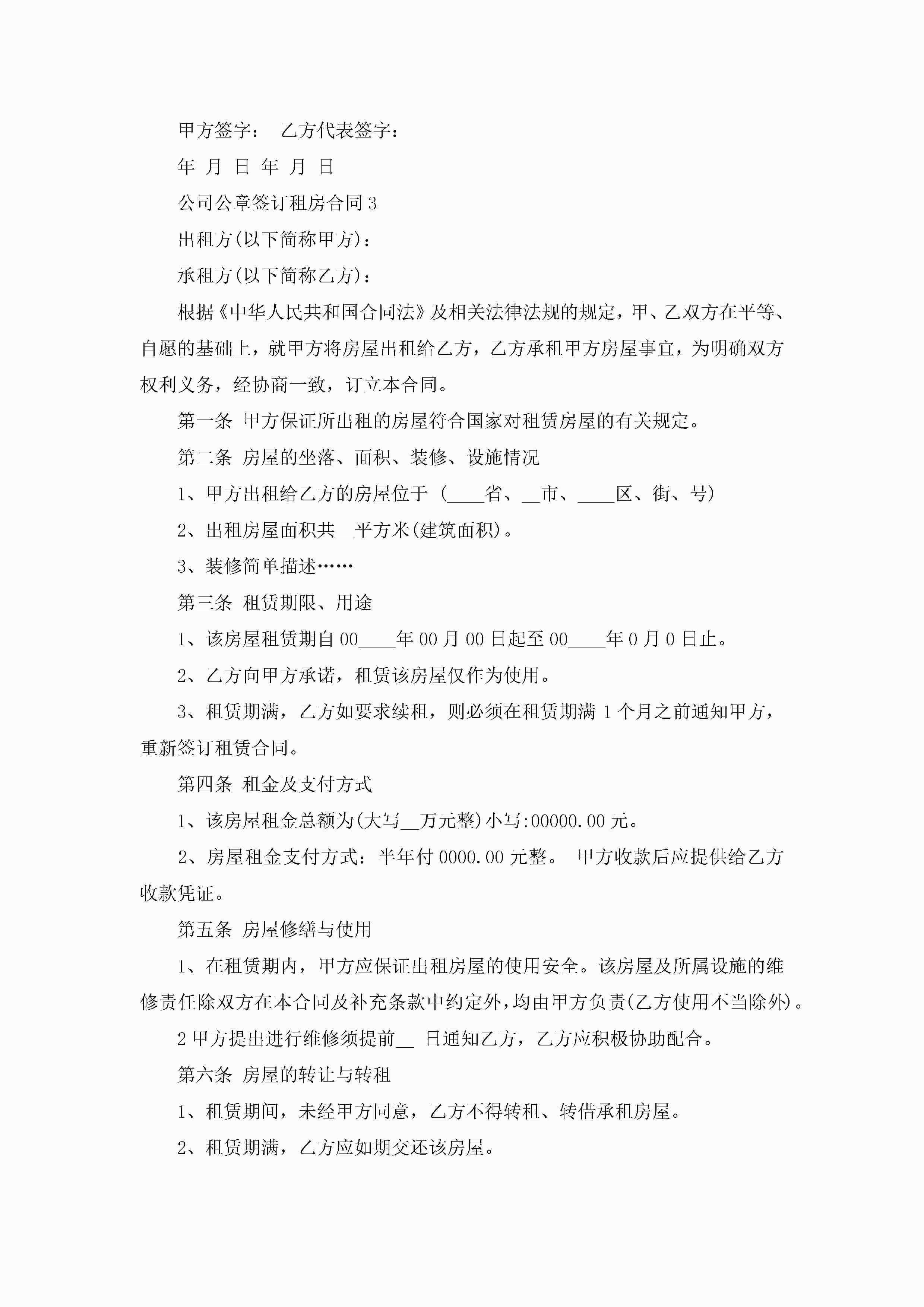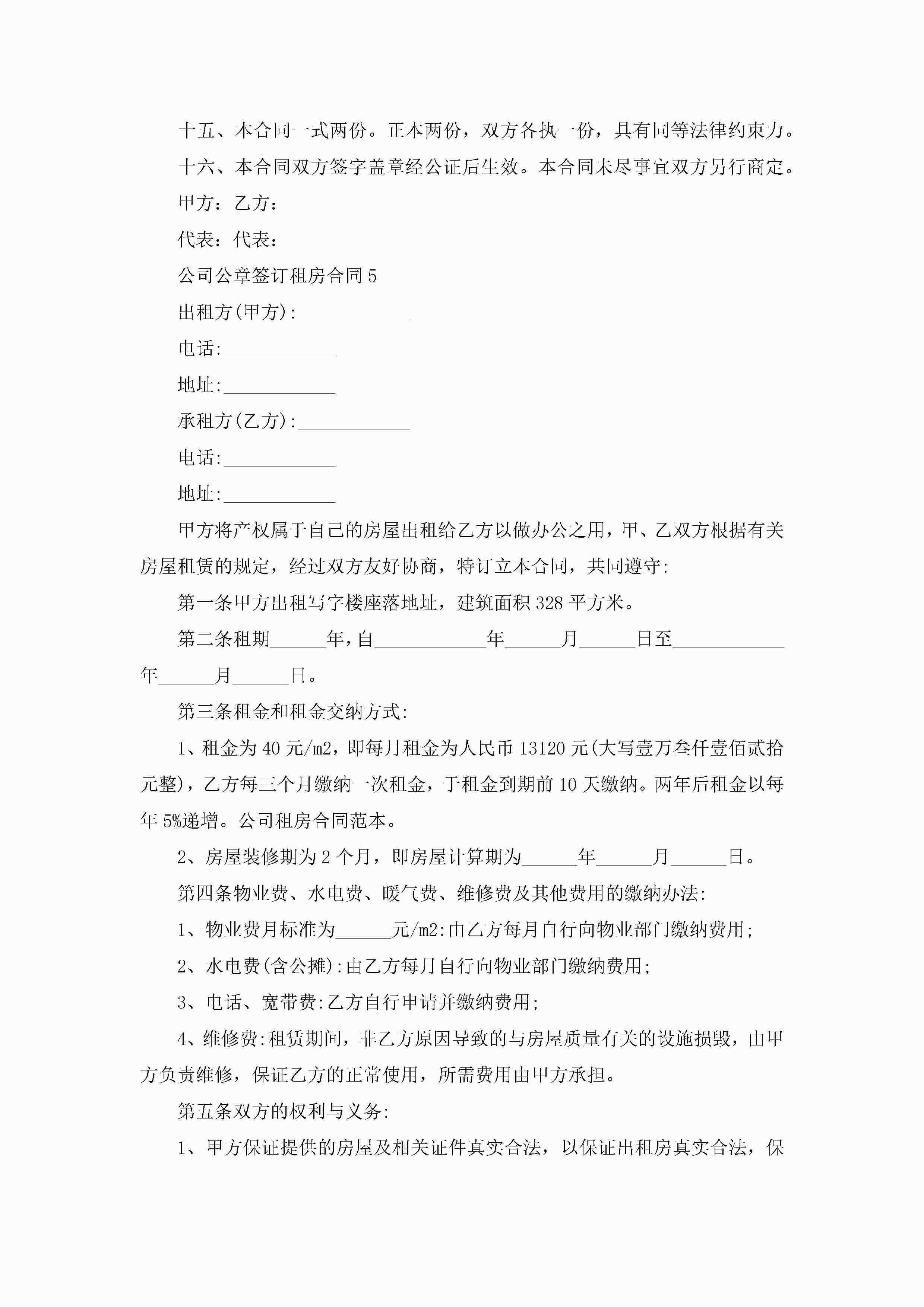关于公司公章签订租房合同5篇jugei3月23日 01:47发布关注244 关于公司公章签订租房合同5篇此内容为付费资源,请付费后查看¥10.9 单篇文档限时特惠¥15个人会员开通企业会员开通立即下载无需登陆!可直接快捷下载单个模板付费资源© 版权声明THE ENDWord模板# 实用文档# 实用模板# 合同模板# 租房合同 如有问题,可点击最底部“联系我们”联系客服 分享QQ空间微博QQ好友海报分享复制链接收藏