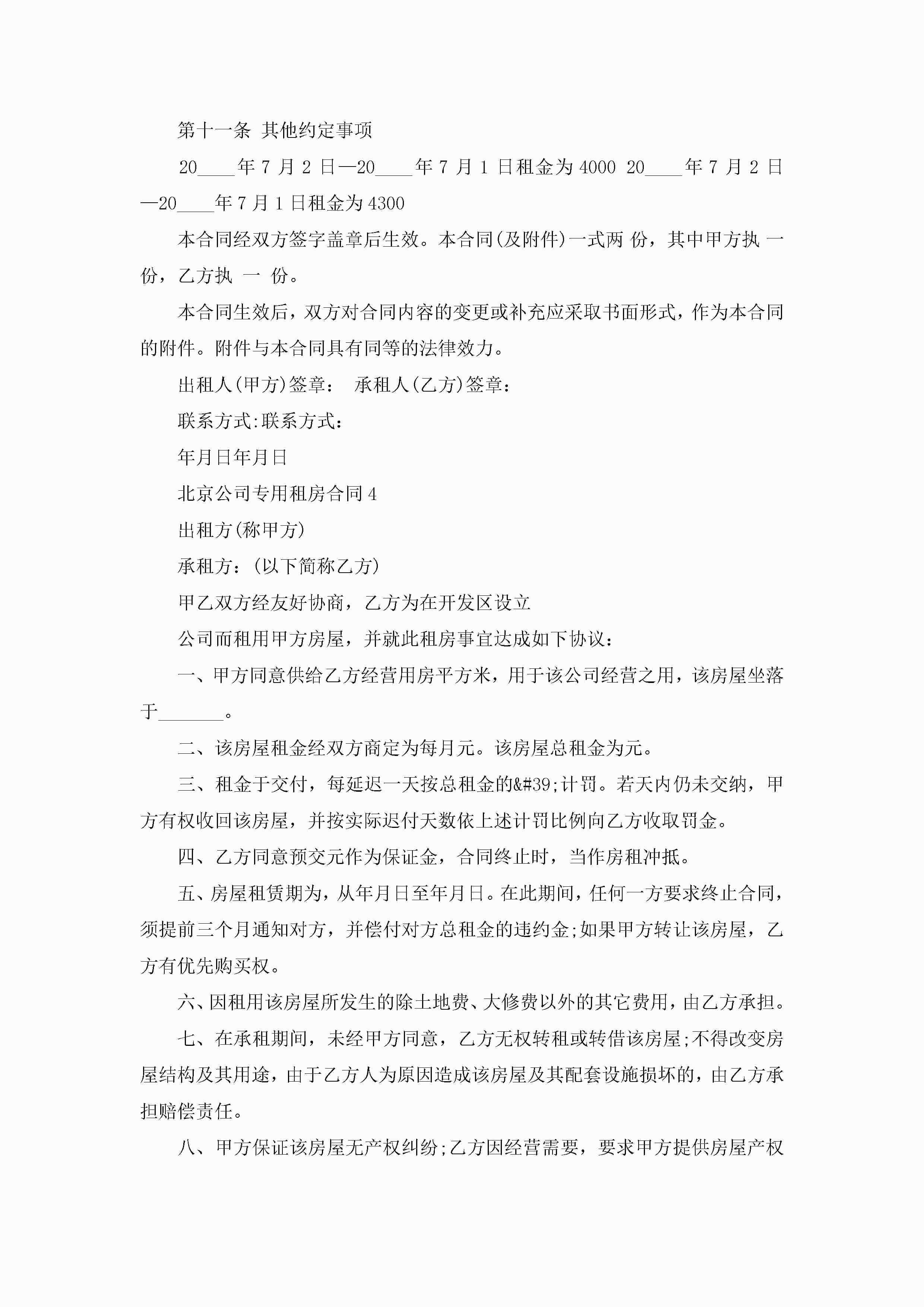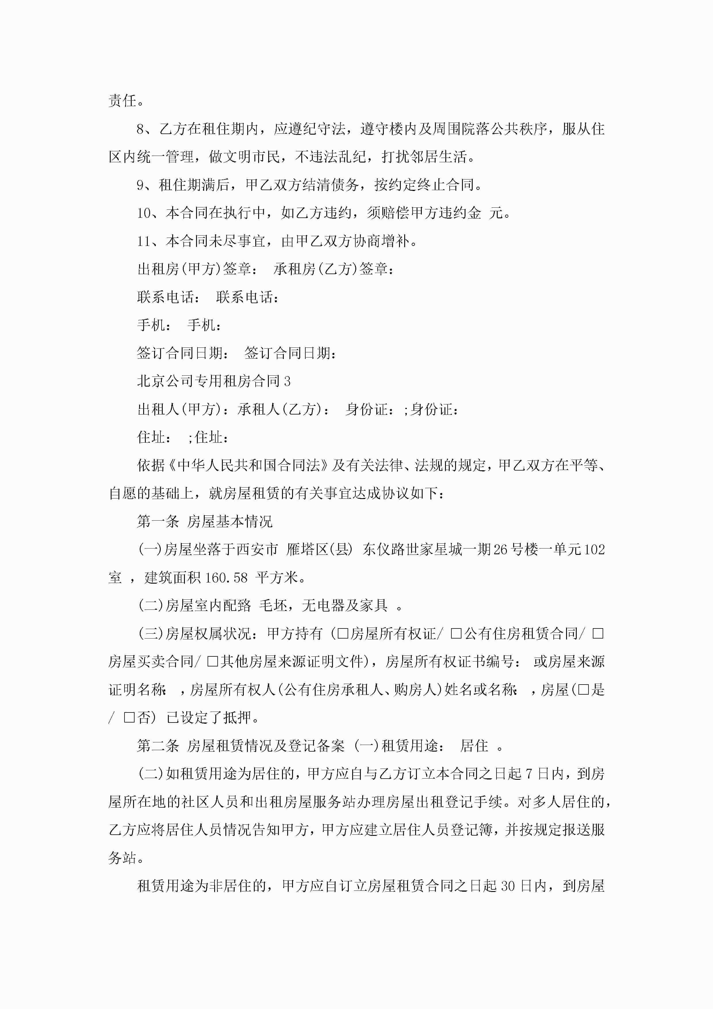 北京公司专用租房合同5篇jugei3月23日 01:47发布关注272 北京公司专用租房合同5篇此内容为付费资源,请付费后查看¥10.9 单篇文档限时特惠¥15个人会员开通企业会员开通立即下载无需登陆!可直接快捷下载单个模板付费资源© 版权声明THE ENDWord模板# 实用文档# 实用模板# 合同模板# 租房合同 如有问题,可点击最底部“联系我们”联系客服 分享QQ空间微博QQ好友海报分享复制链接收藏