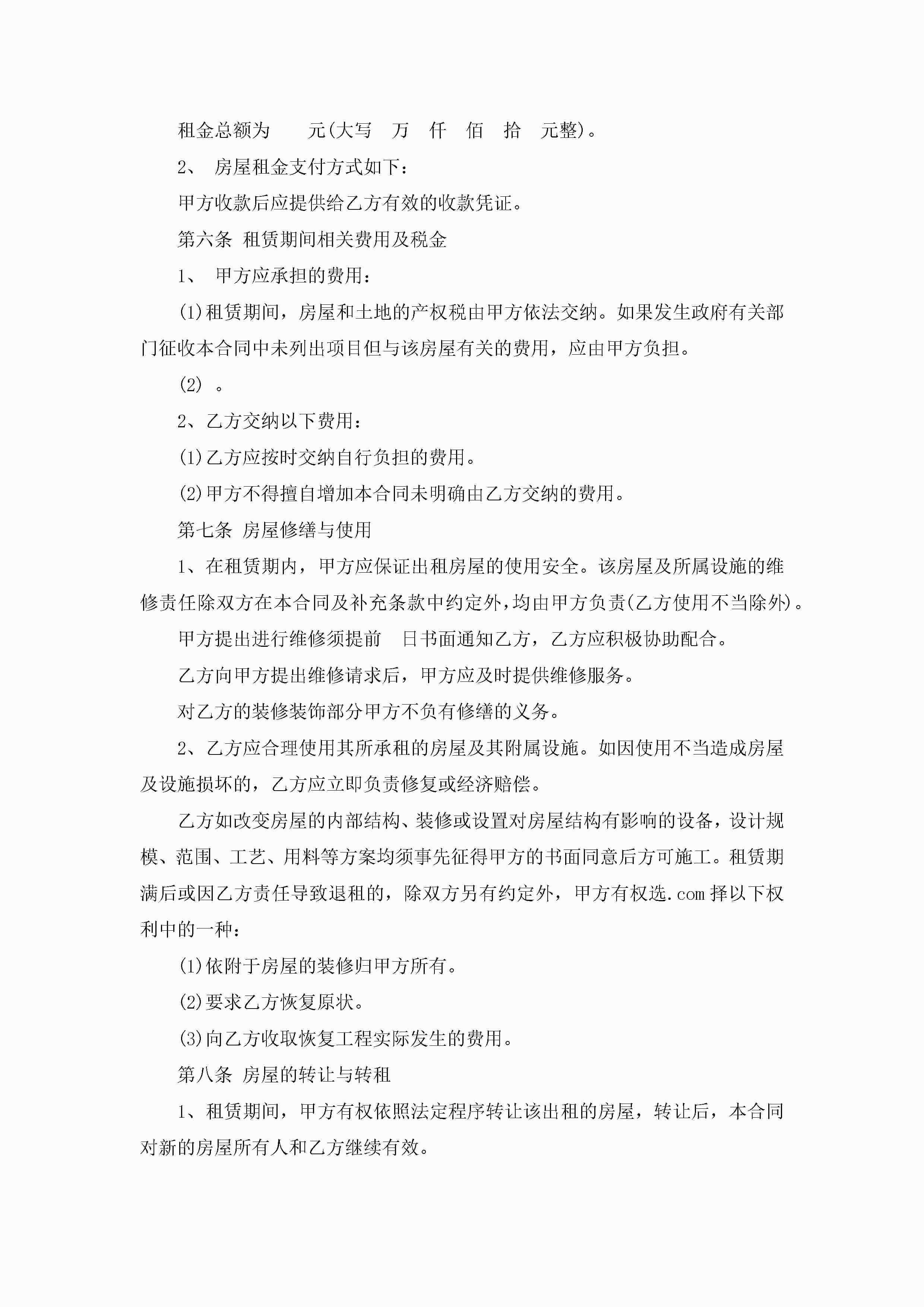最新甲与乙签订租房合同5篇jugei3月23日 01:47发布关注186 最新甲与乙签订租房合同5篇此内容为付费资源,请付费后查看¥10.9 单篇文档限时特惠¥15个人会员开通企业会员开通立即下载无需登陆!可直接快捷下载单个模板付费资源© 版权声明THE ENDWord模板# 实用文档# 实用模板# 合同模板# 租房合同 如有问题,可点击最底部“联系我们”联系客服 分享QQ空间微博QQ好友海报分享复制链接收藏
