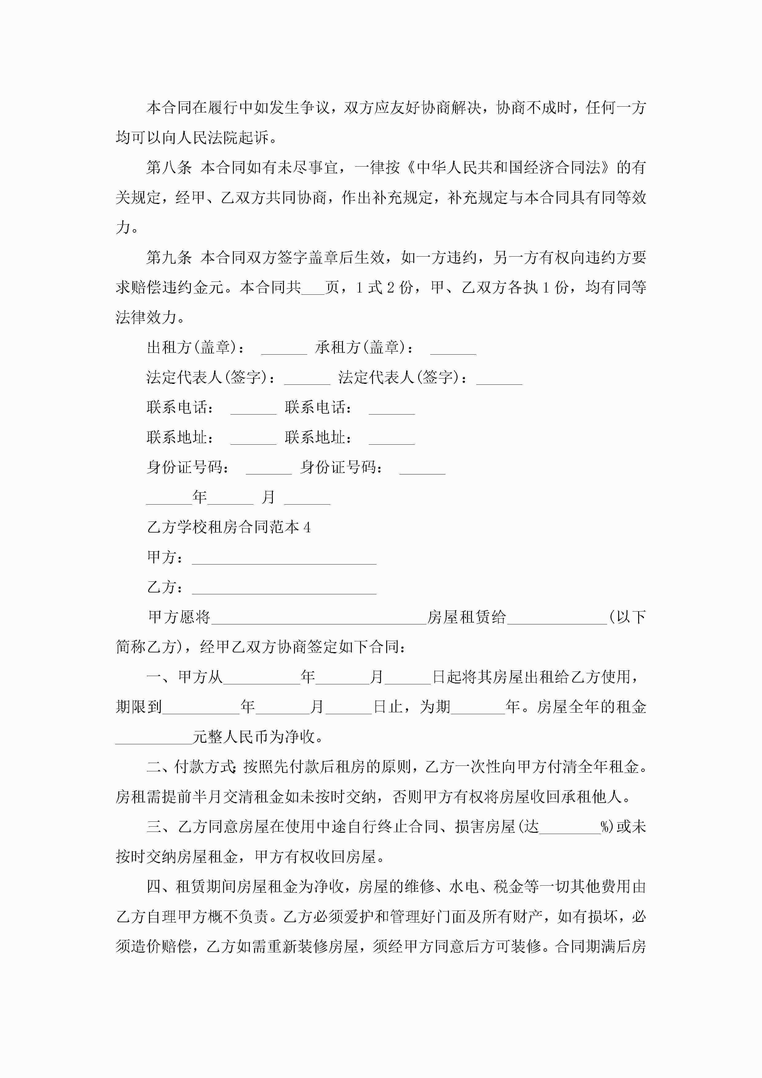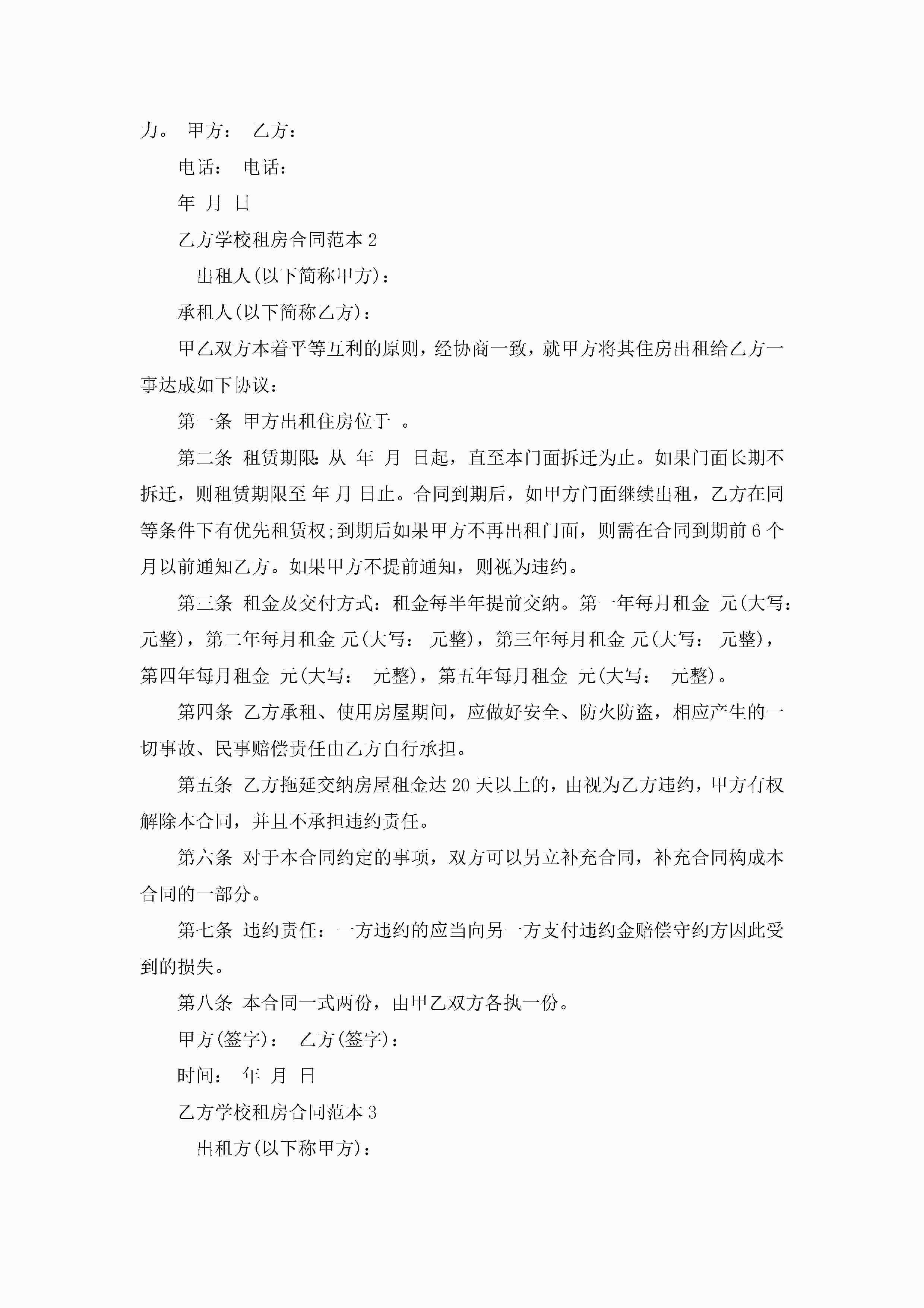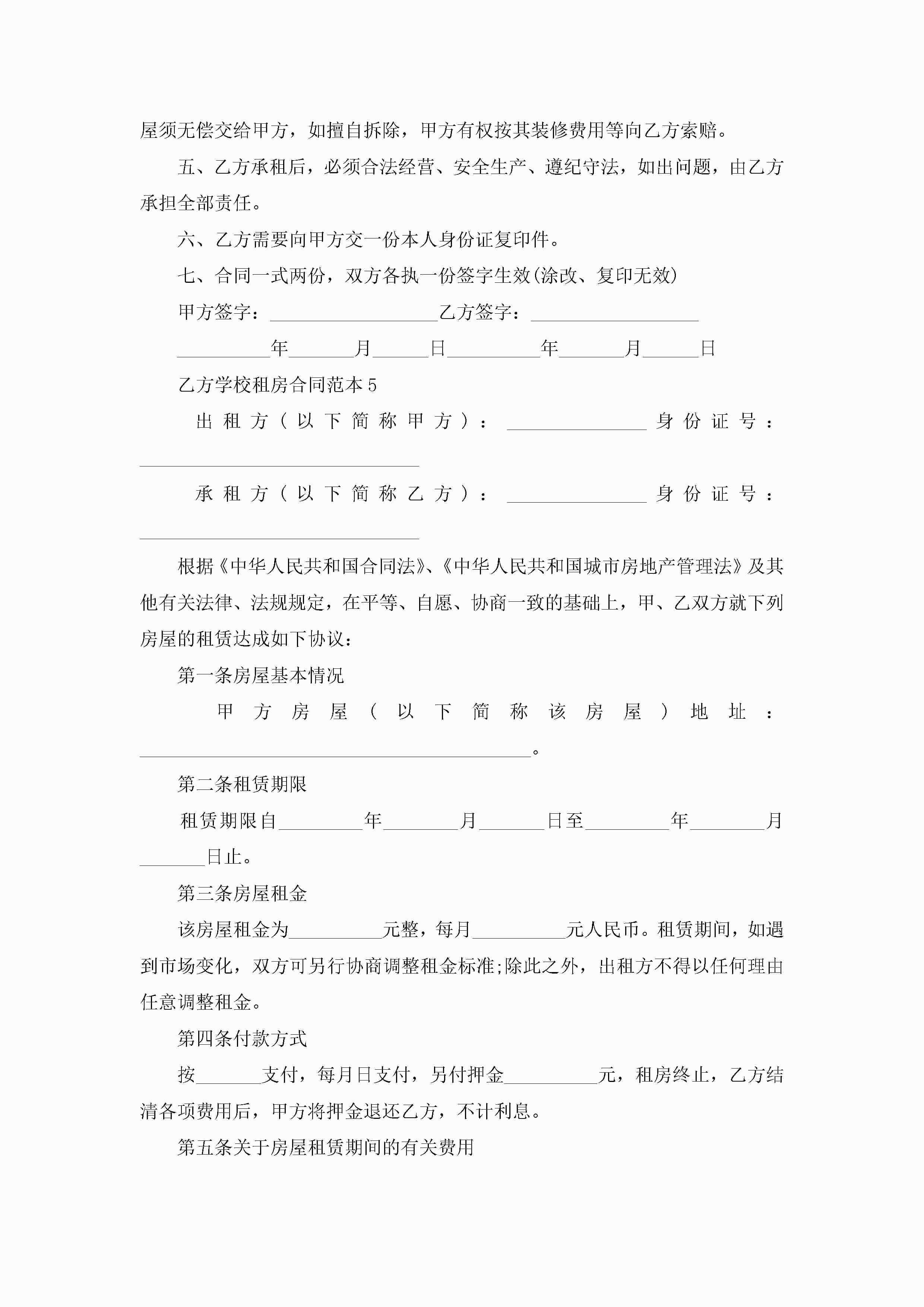 乙方学校租房合同范本5篇jugei3月23日 01:47发布关注184 乙方学校租房合同范本5篇此内容为付费资源,请付费后查看¥10.9 单篇文档限时特惠¥15个人会员开通企业会员开通立即下载无需登陆!可直接快捷下载单个模板付费资源© 版权声明THE ENDWord模板# 实用文档# 实用模板# 合同模板# 租房合同 如有问题,可点击最底部“联系我们”联系客服 分享QQ空间微博QQ好友海报分享复制链接收藏