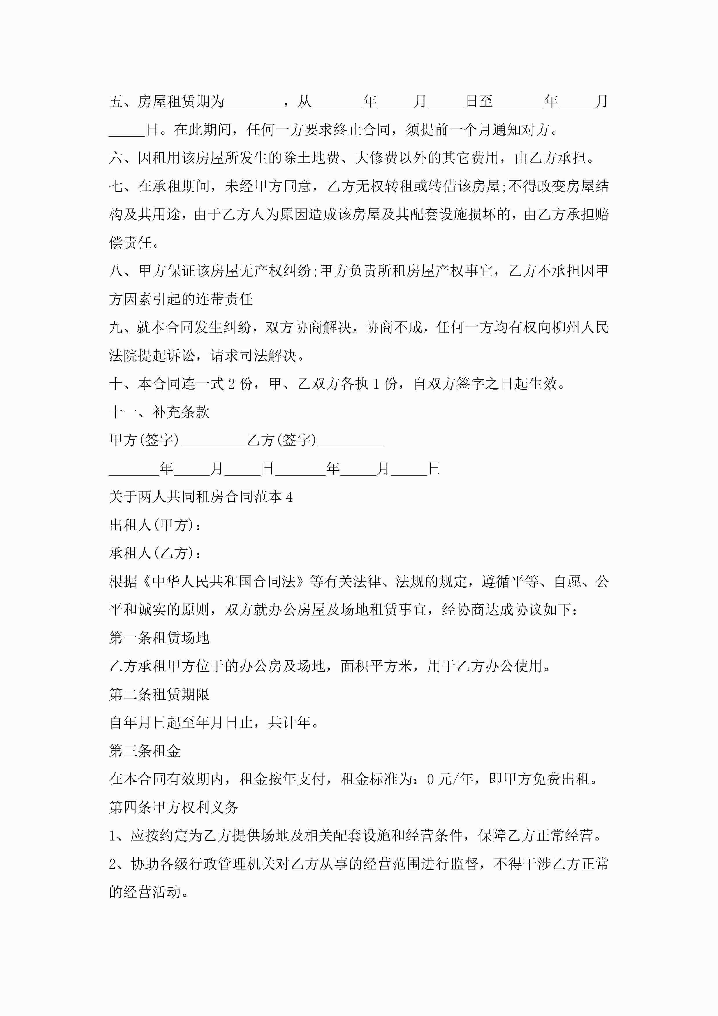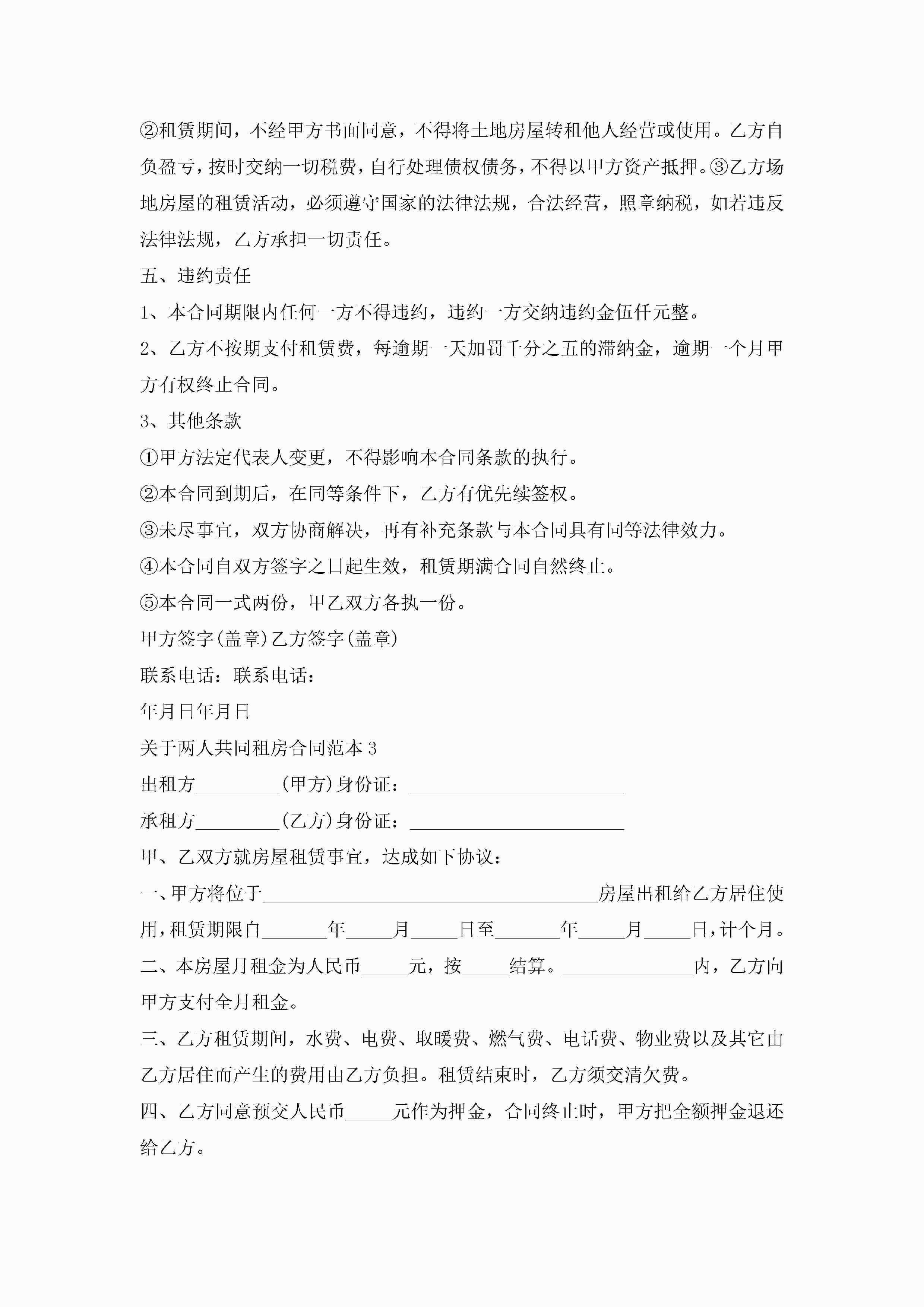 关于两人共同租房合同范本5篇jugei3月23日 01:47发布关注191 关于两人共同租房合同范本5篇此内容为付费资源,请付费后查看¥10.9 单篇文档限时特惠¥15个人会员开通企业会员开通立即下载无需登陆!可直接快捷下载单个模板付费资源© 版权声明THE ENDWord模板# 实用文档# 实用模板# 合同模板# 租房合同 如有问题,可点击最底部“联系我们”联系客服 分享QQ空间微博QQ好友海报分享复制链接收藏