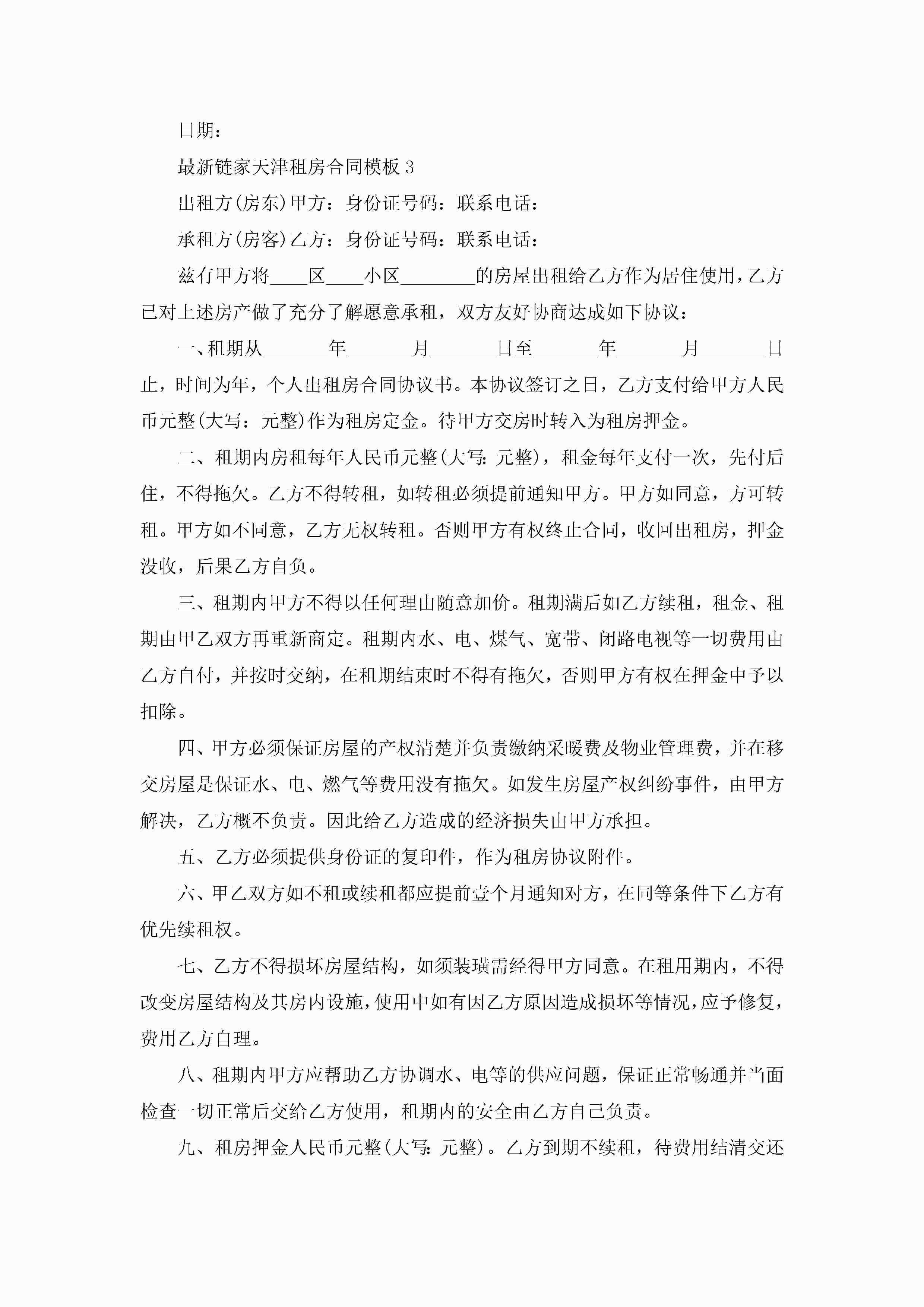 最新链家天津租房合同模板5篇jugei3月23日 01:47发布关注215 最新链家天津租房合同模板5篇此内容为付费资源,请付费后查看¥10.9 单篇文档限时特惠¥15个人会员开通企业会员开通立即下载无需登陆!可直接快捷下载单个模板付费资源© 版权声明THE ENDWord模板# 实用文档# 实用模板# 合同模板# 租房合同 如有问题,可点击最底部“联系我们”联系客服 分享QQ空间微博QQ好友海报分享复制链接收藏