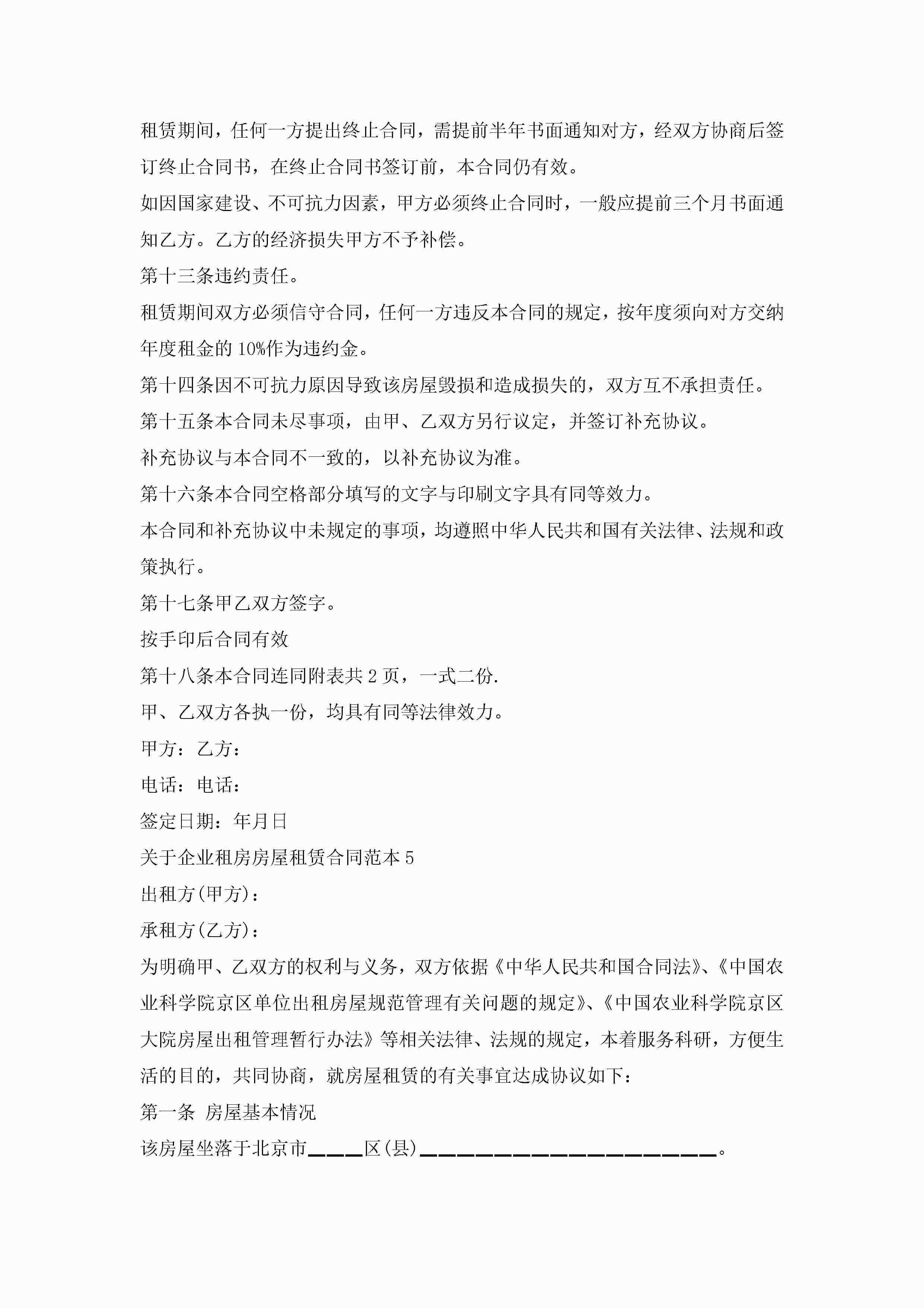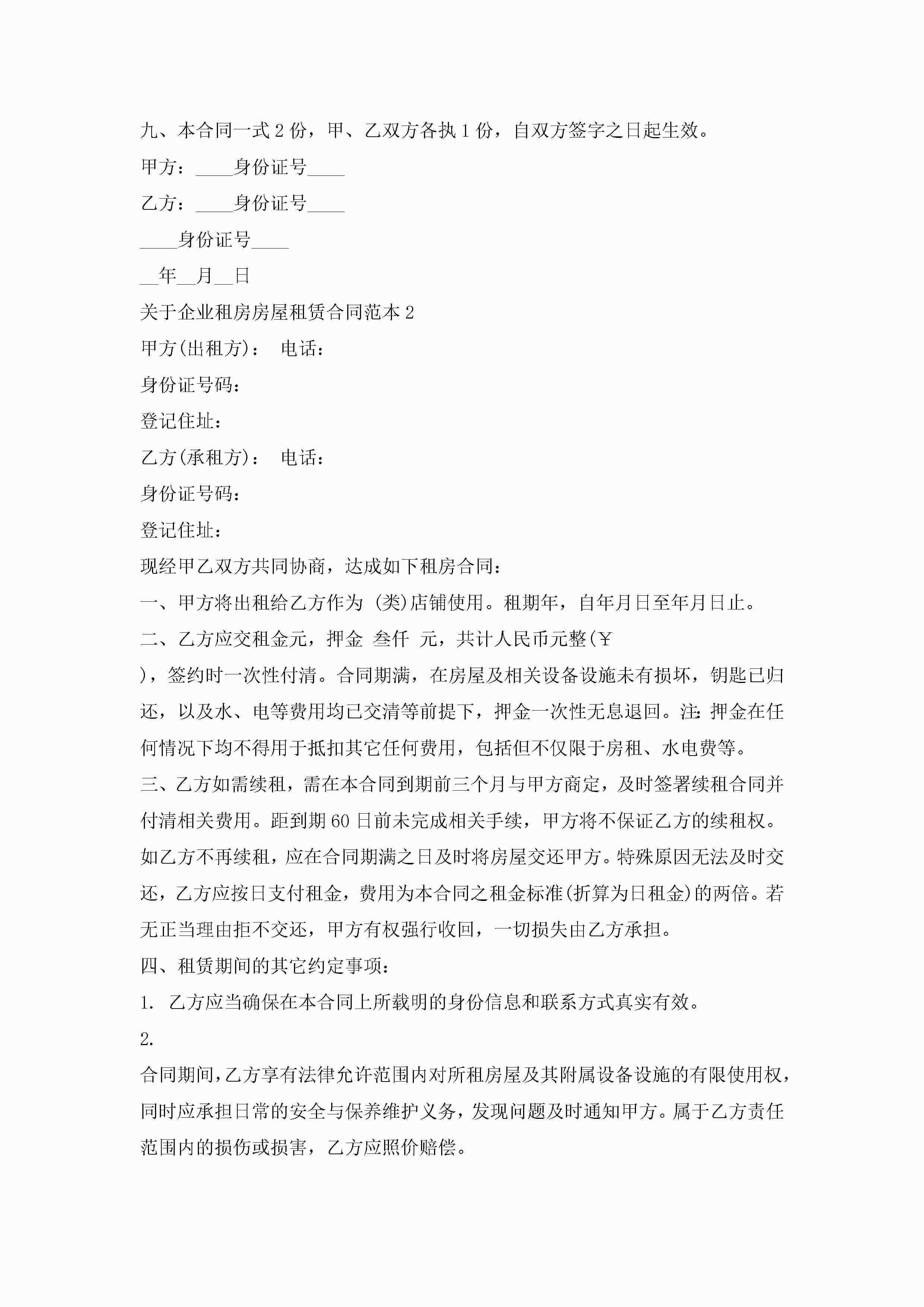 关于企业租房房屋租赁合同范本5篇jugei3月23日 01:47发布关注246 关于企业租房房屋租赁合同范本5篇此内容为付费资源,请付费后查看¥10.9 单篇文档限时特惠¥15个人会员开通企业会员开通立即下载无需登陆!可直接快捷下载单个模板付费资源© 版权声明THE ENDWord模板# 实用文档# 实用模板# 合同模板# 租房合同 如有问题,可点击最底部“联系我们”联系客服 分享QQ空间微博QQ好友海报分享复制链接收藏