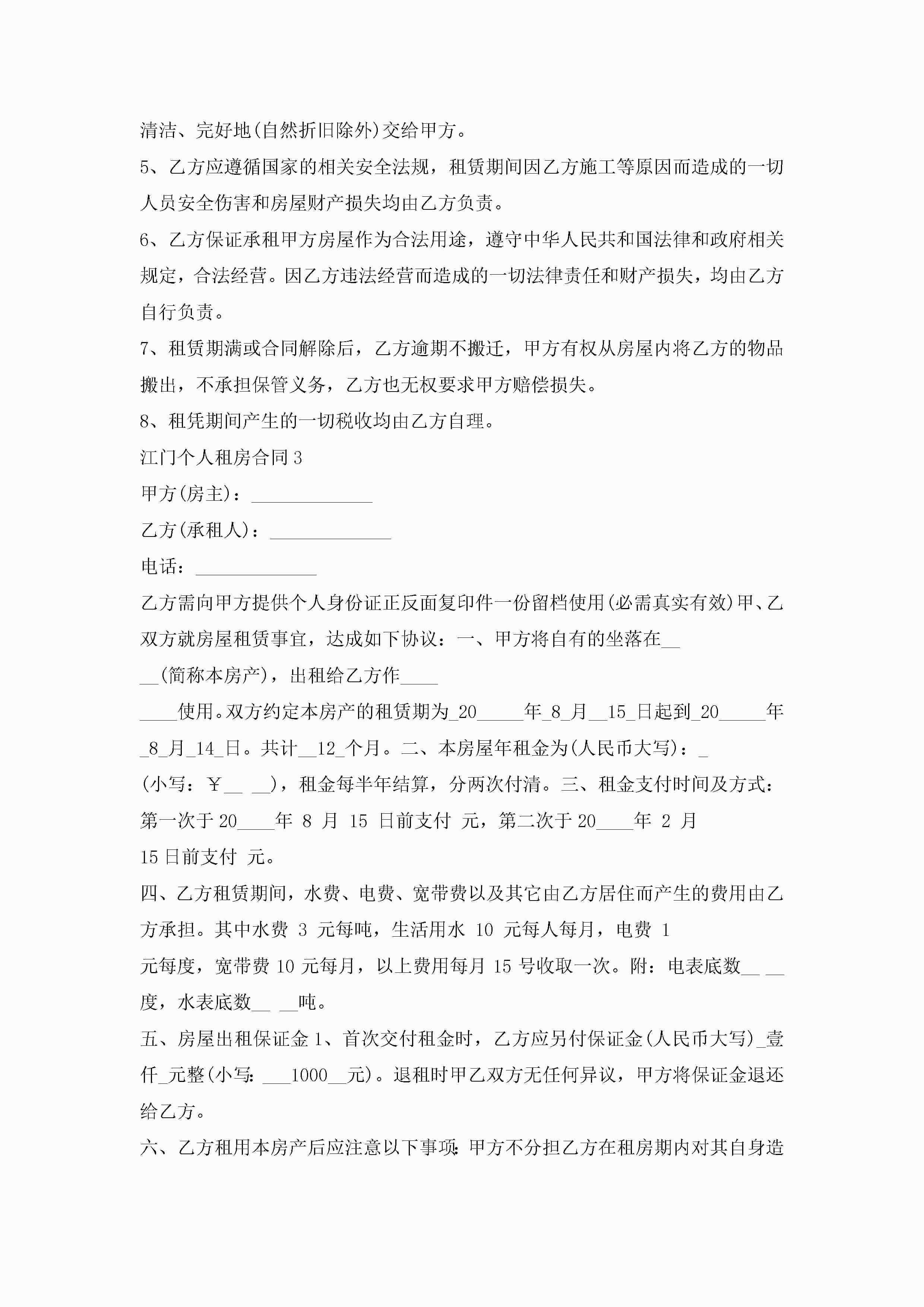 江门个人租房合同5篇范文jugei3月23日 01:48发布关注191 江门个人租房合同5篇范文此内容为付费资源,请付费后查看¥10.9 单篇文档限时特惠¥15个人会员开通企业会员开通立即下载无需登陆!可直接快捷下载单个模板付费资源© 版权声明THE ENDWord模板# 实用文档# 实用模板# 合同模板# 租房合同 如有问题,可点击最底部“联系我们”联系客服 分享QQ空间微博QQ好友海报分享复制链接收藏