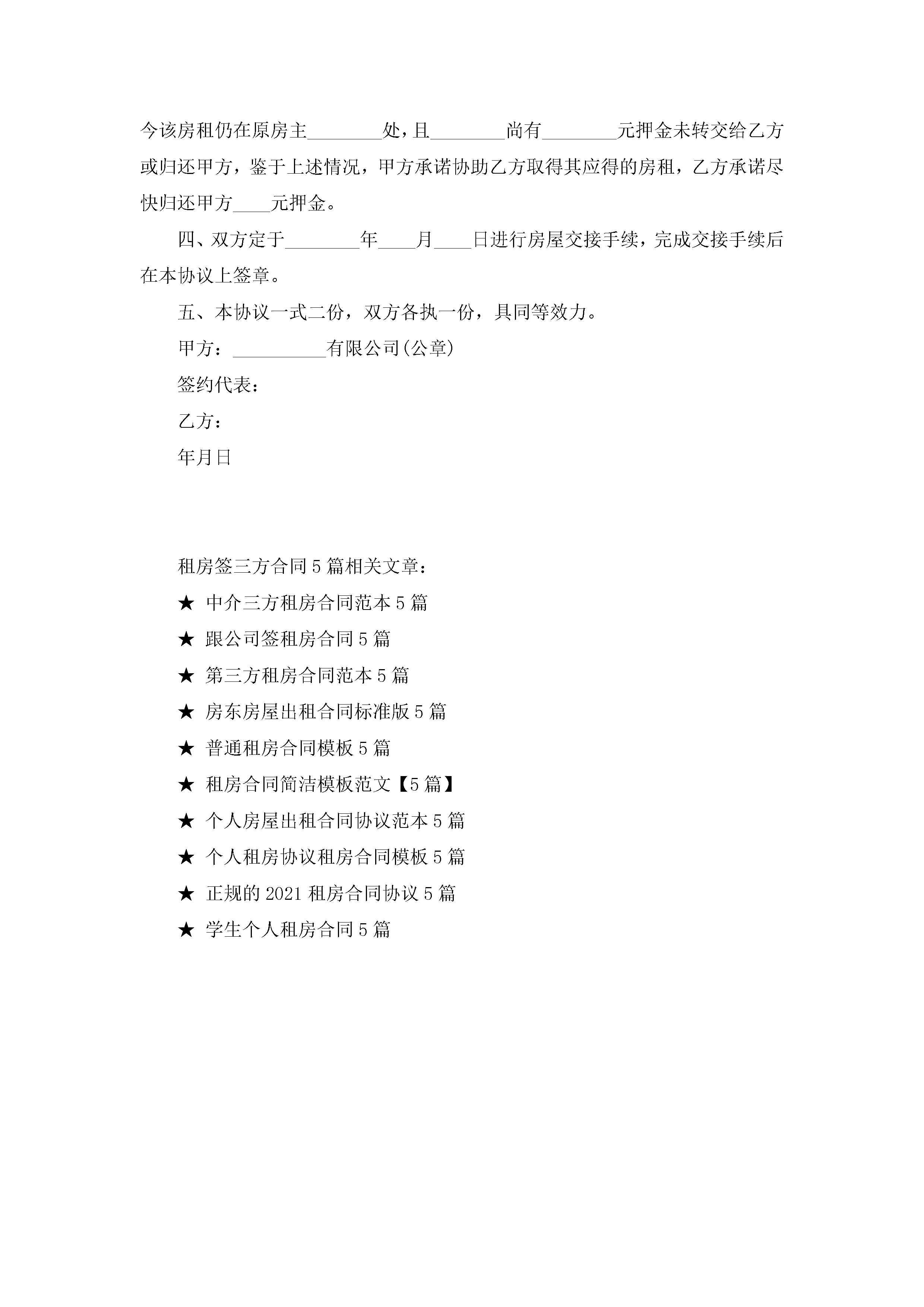 最新租房签三方合同5篇jugei3月23日 01:48发布关注255 最新租房签三方合同5篇此内容为付费资源,请付费后查看¥10.9 单篇文档限时特惠¥15个人会员开通企业会员开通立即下载无需登陆!可直接快捷下载单个模板付费资源© 版权声明THE ENDWord模板# 实用文档# 实用模板# 合同模板# 租房合同 如有问题,可点击最底部“联系我们”联系客服 分享QQ空间微博QQ好友海报分享复制链接收藏