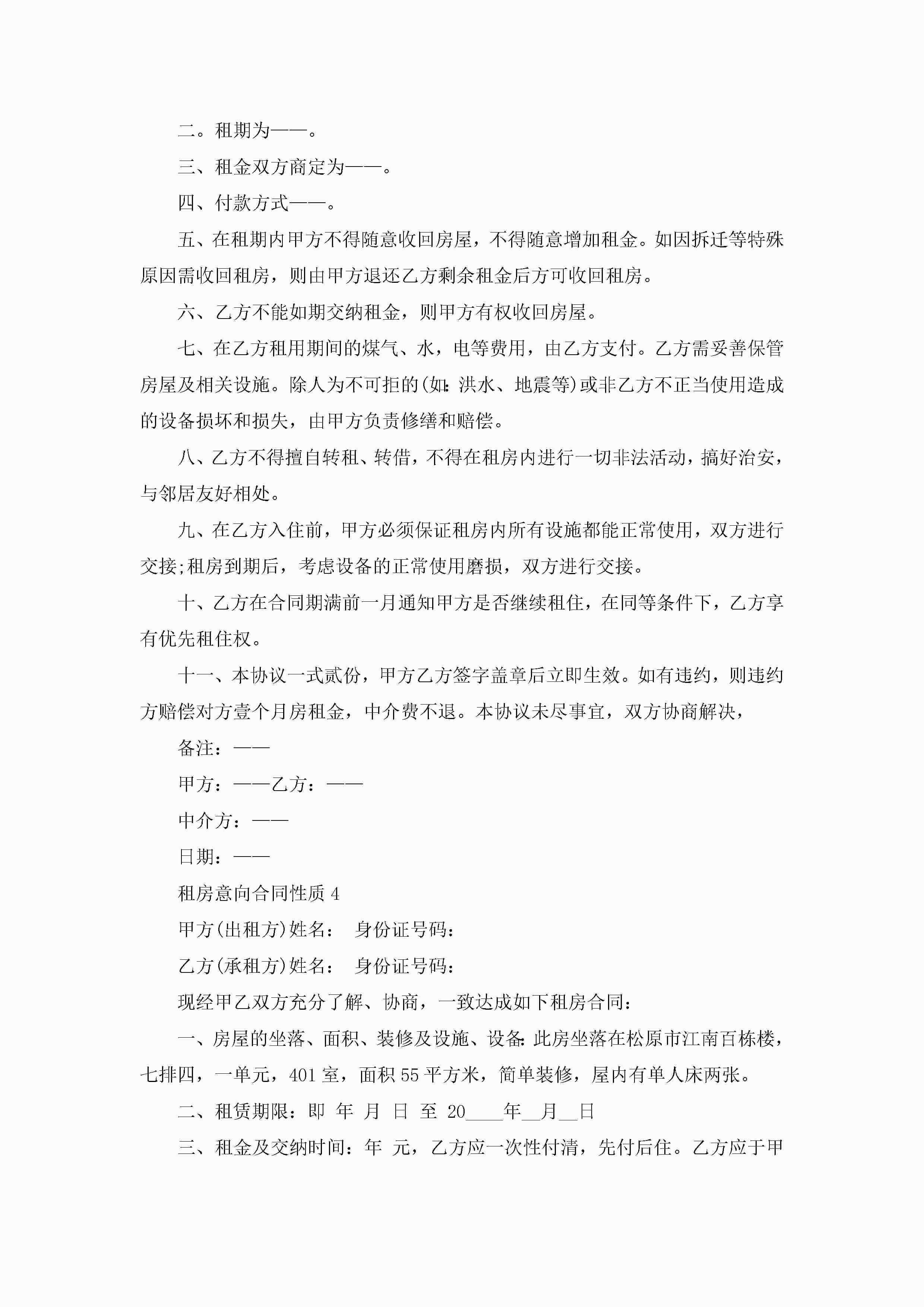 关于租房意向合同性质5篇jugei3月23日 01:48发布关注202 关于租房意向合同性质5篇此内容为付费资源,请付费后查看¥10.9 单篇文档限时特惠¥15个人会员开通企业会员开通立即下载无需登陆!可直接快捷下载单个模板付费资源© 版权声明THE ENDWord模板# 实用文档# 实用模板# 合同模板# 租房合同 如有问题,可点击最底部“联系我们”联系客服 分享QQ空间微博QQ好友海报分享复制链接收藏