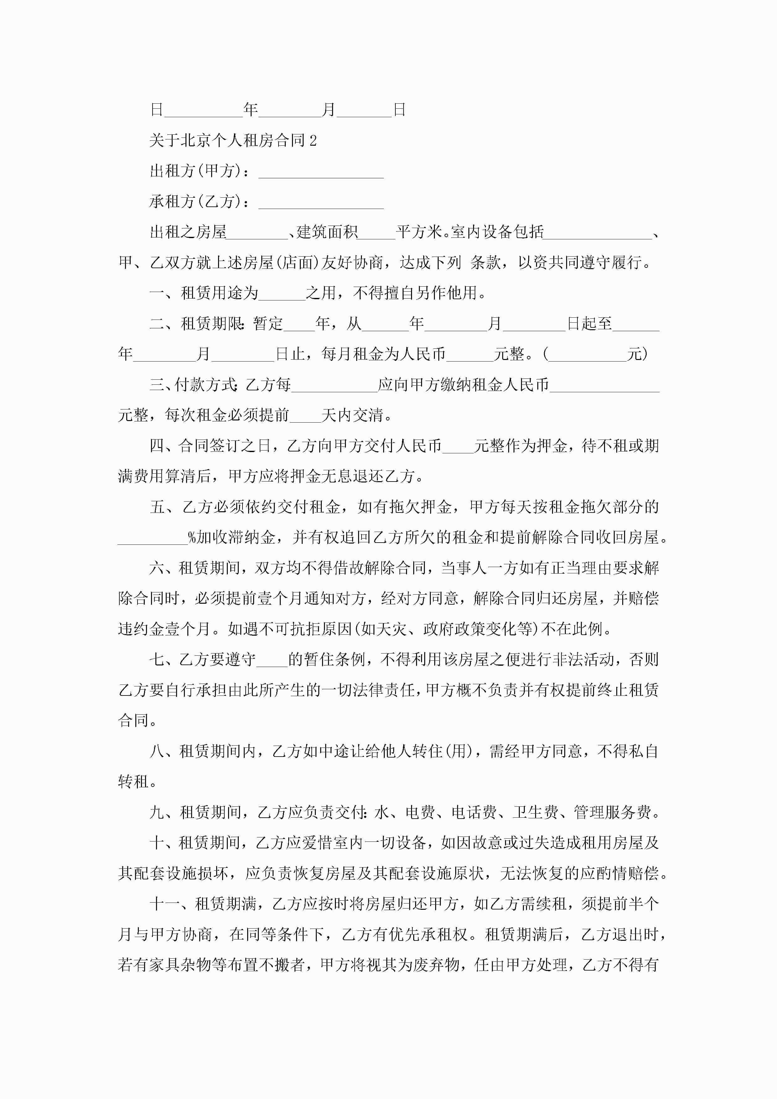 关于北京个人租房合同5篇jugei3月23日 01:48发布关注283 关于北京个人租房合同5篇此内容为付费资源,请付费后查看¥10.9 单篇文档限时特惠¥15个人会员开通企业会员开通立即下载无需登陆!可直接快捷下载单个模板付费资源© 版权声明THE ENDWord模板# 实用文档# 实用模板# 合同模板# 租房合同 如有问题,可点击最底部“联系我们”联系客服 分享QQ空间微博QQ好友海报分享复制链接收藏