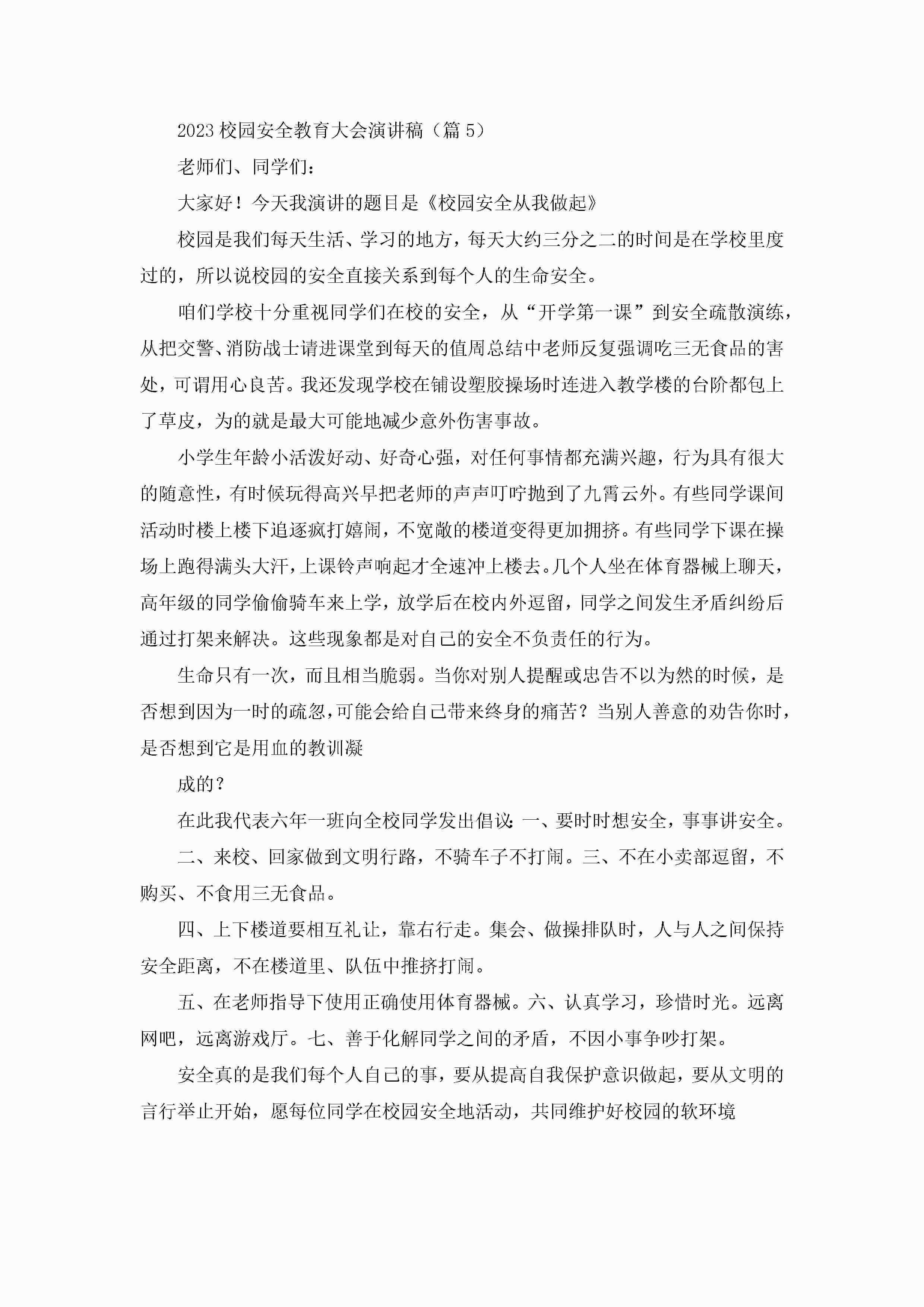2023校园安全教育大会演讲稿5篇jugei3月23日 01:48发布关注357 2023校园安全教育大会演讲稿5篇此内容为付费资源,请付费后查看¥10.9 单篇文档限时特惠¥15个人会员开通企业会员开通立即下载无需登陆!可直接快捷下载单个模板付费资源© 版权声明THE ENDWord模板# 实用文档# 演讲稿# 经典演讲稿# 实用写作 如有问题,可点击最底部“联系我们”联系客服 分享QQ空间微博QQ好友海报分享复制链接收藏