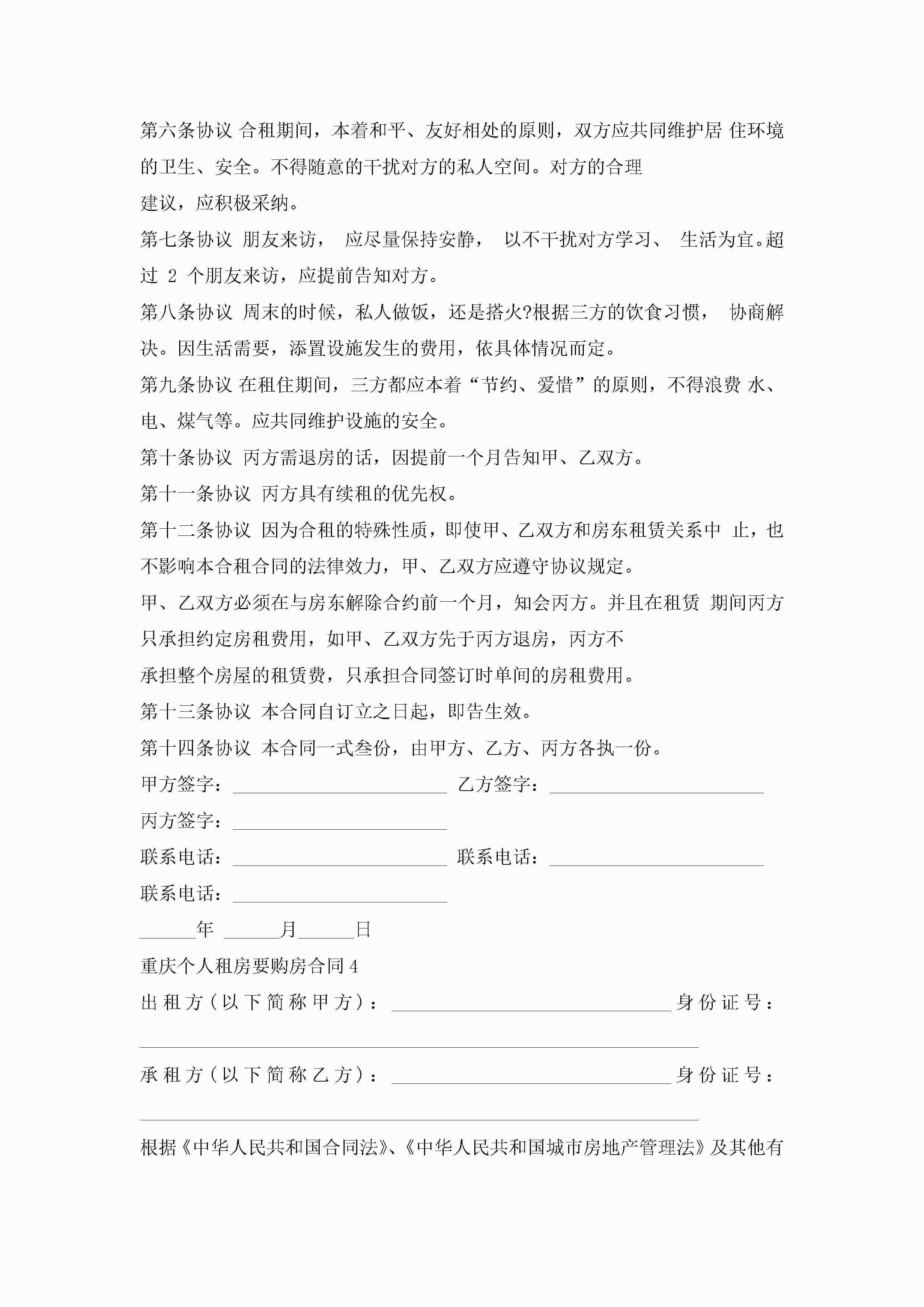 重庆个人租房要购房合同5篇jugei3月23日 01:48发布关注188 重庆个人租房要购房合同5篇此内容为付费资源,请付费后查看¥10.9 单篇文档限时特惠¥15个人会员开通企业会员开通立即下载无需登陆!可直接快捷下载单个模板付费资源© 版权声明THE ENDWord模板# 实用文档# 实用模板# 合同模板# 租房合同 如有问题,可点击最底部“联系我们”联系客服 分享QQ空间微博QQ好友海报分享复制链接收藏