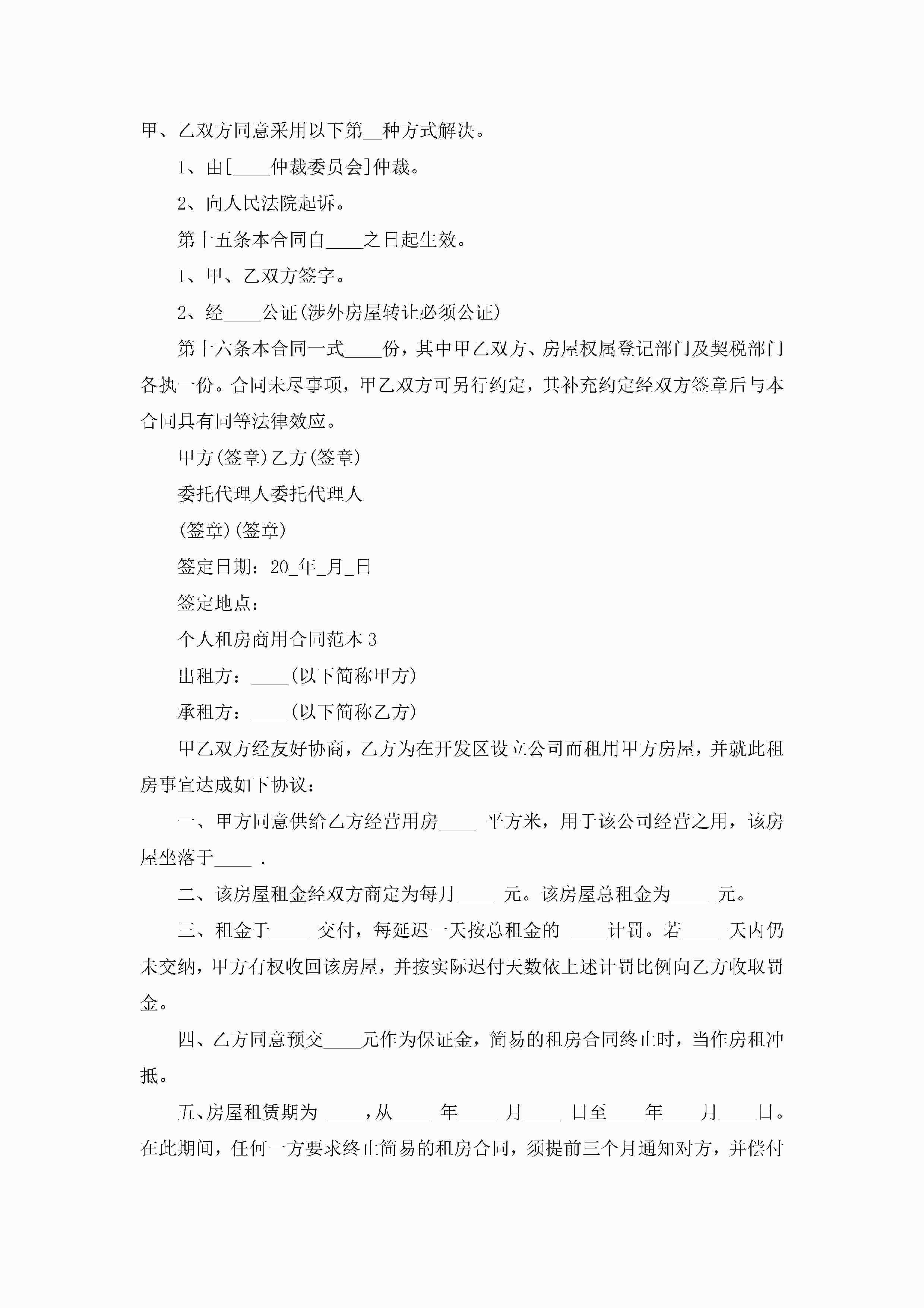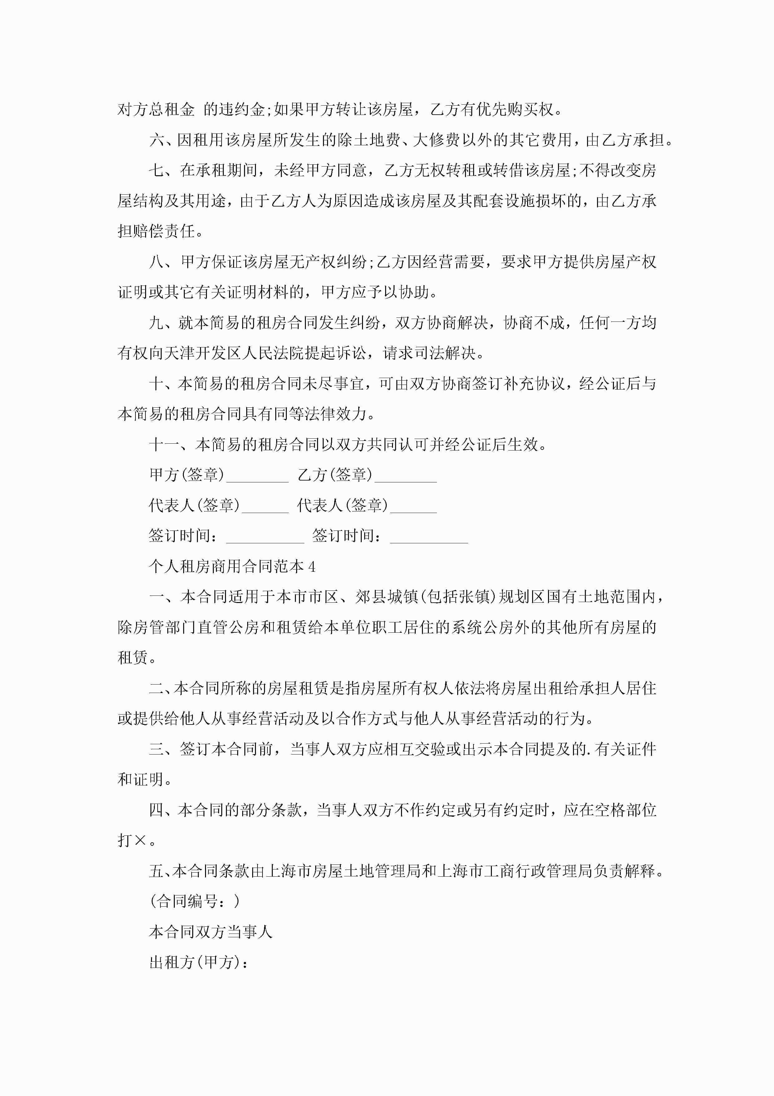 个人租房商用合同范本5篇jugei3月23日 01:48发布关注196 个人租房商用合同范本5篇此内容为付费资源,请付费后查看¥10.9 单篇文档限时特惠¥15个人会员开通企业会员开通立即下载无需登陆!可直接快捷下载单个模板付费资源© 版权声明THE ENDWord模板# 实用文档# 实用模板# 合同模板# 租房合同 如有问题,可点击最底部“联系我们”联系客服 分享QQ空间微博QQ好友海报分享复制链接收藏