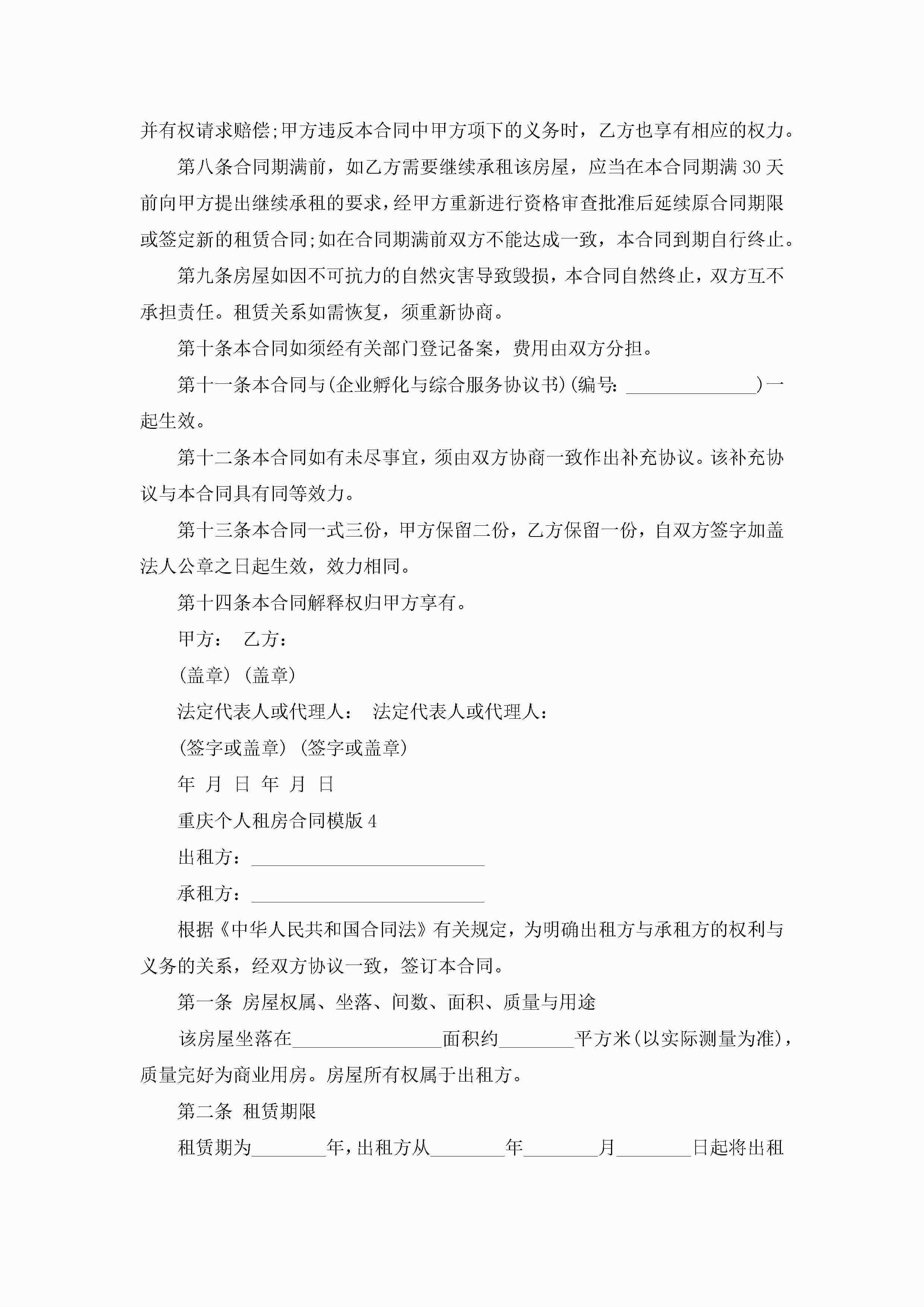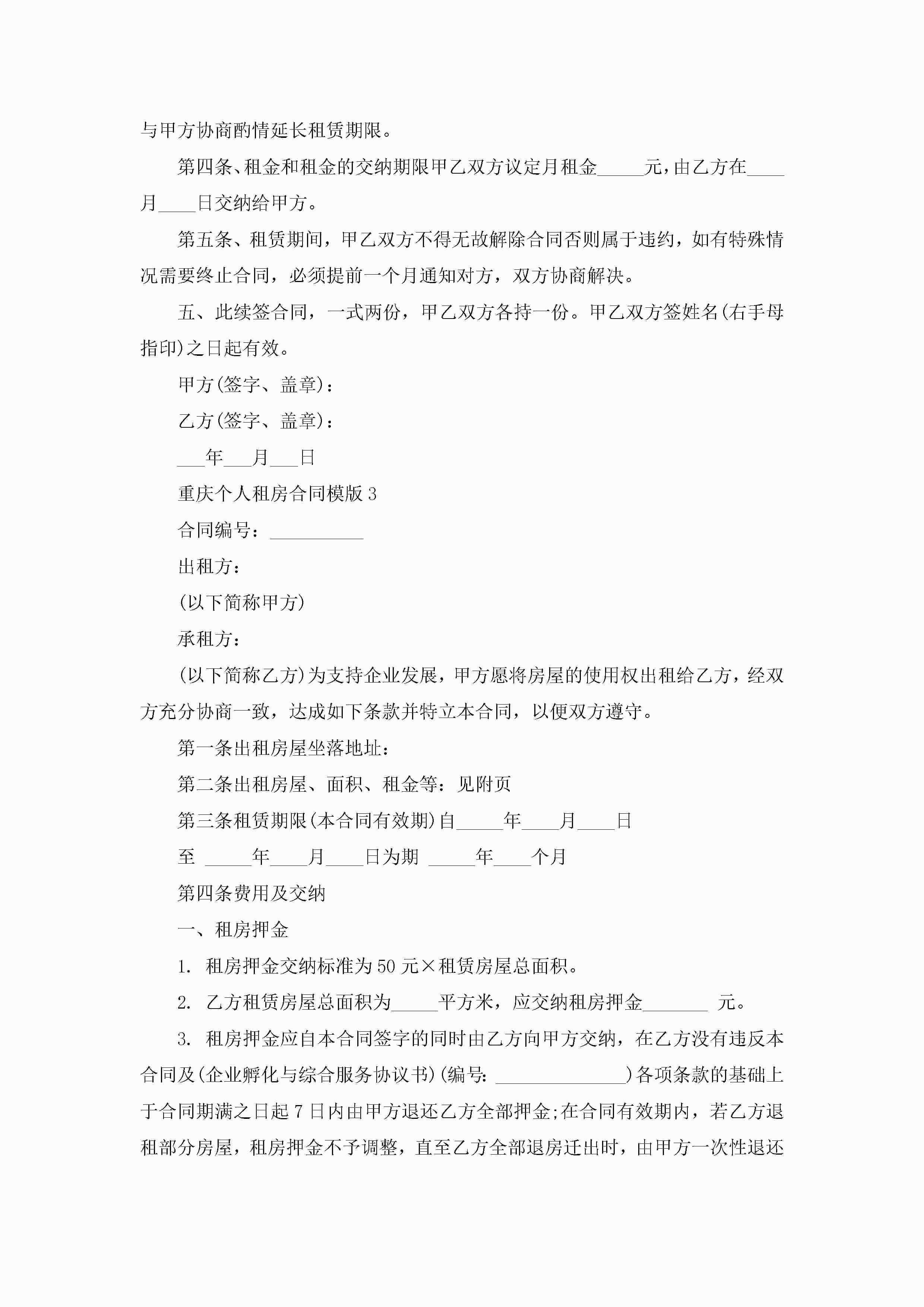 重庆个人租房合同模版5篇jugei3月23日 01:48发布关注194 重庆个人租房合同模版5篇此内容为付费资源,请付费后查看¥10.9 单篇文档限时特惠¥15个人会员开通企业会员开通立即下载无需登陆!可直接快捷下载单个模板付费资源© 版权声明THE ENDWord模板# 实用文档# 实用模板# 合同模板# 租房合同 如有问题,可点击最底部“联系我们”联系客服 分享QQ空间微博QQ好友海报分享复制链接收藏