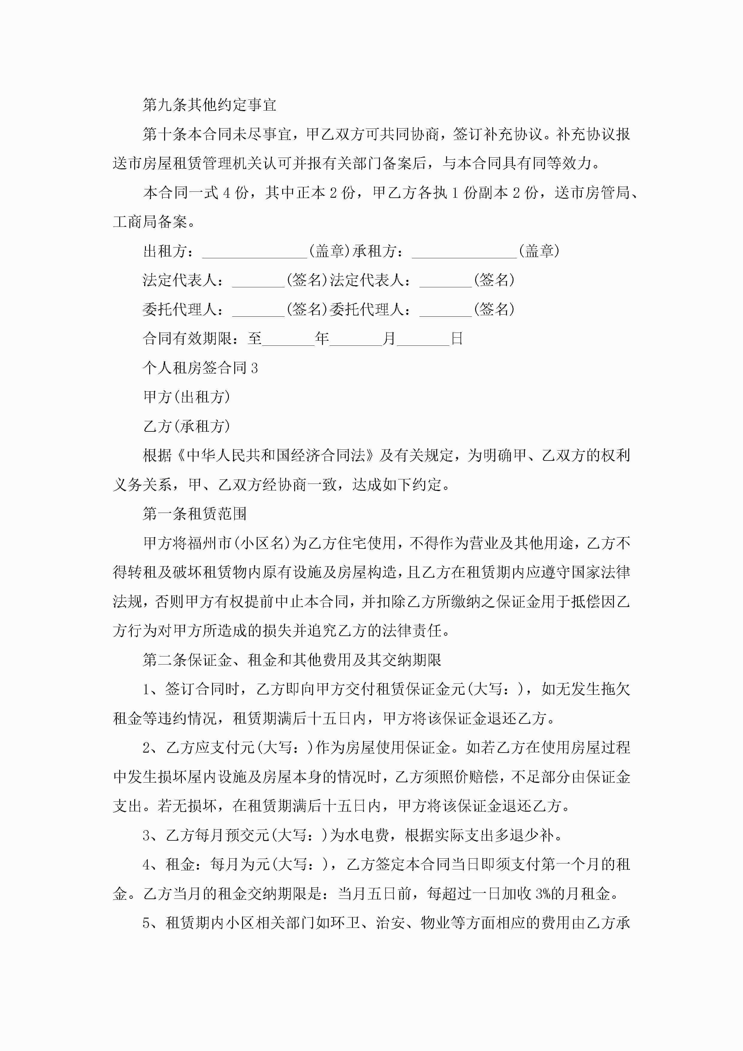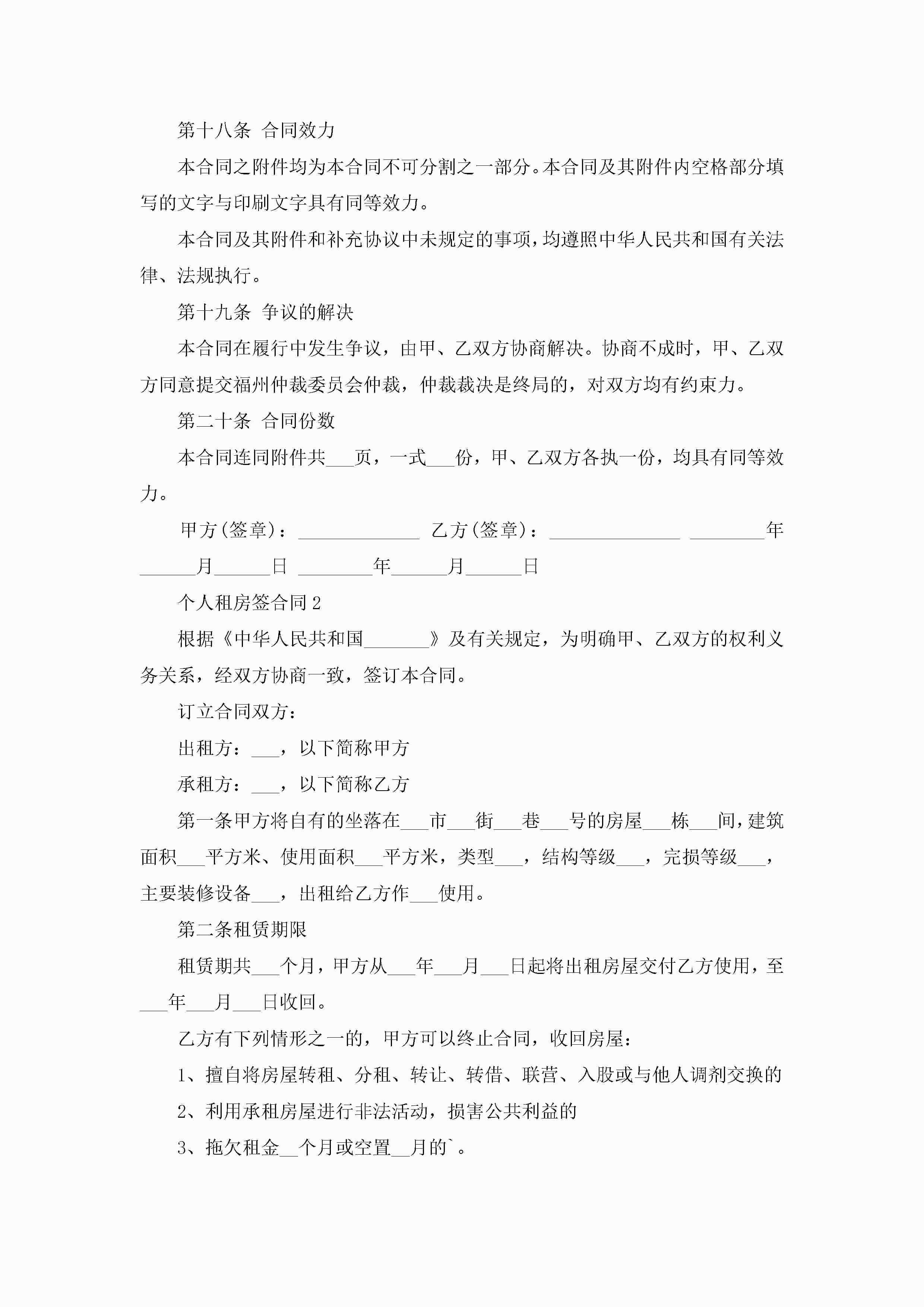 最新个人租房签合同5篇jugei3月23日 01:48发布关注190 最新个人租房签合同5篇此内容为付费资源,请付费后查看¥10.9 单篇文档限时特惠¥15个人会员开通企业会员开通立即下载无需登陆!可直接快捷下载单个模板付费资源© 版权声明THE ENDWord模板# 实用文档# 实用模板# 合同模板# 租房合同 如有问题,可点击最底部“联系我们”联系客服 分享QQ空间微博QQ好友海报分享复制链接收藏