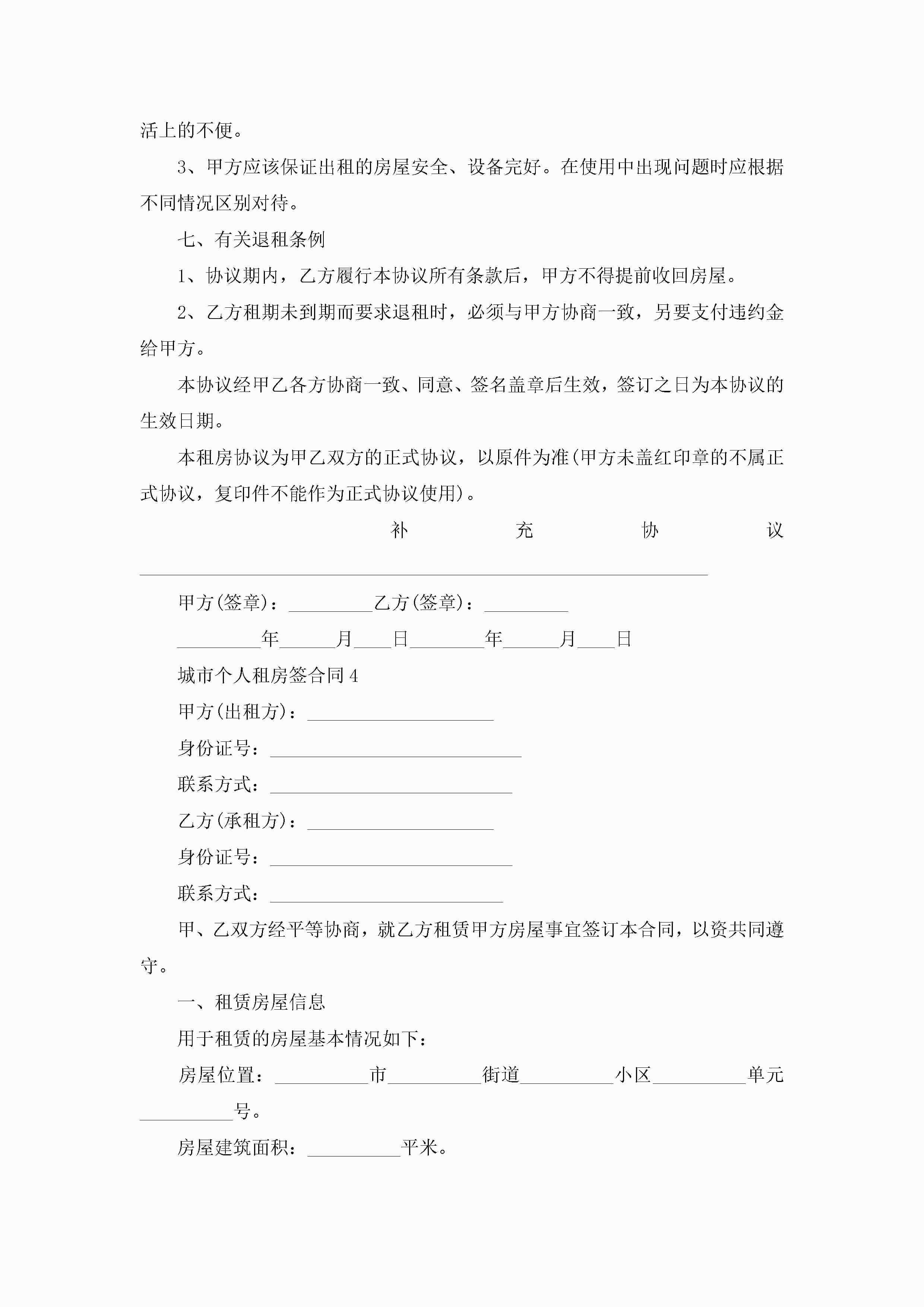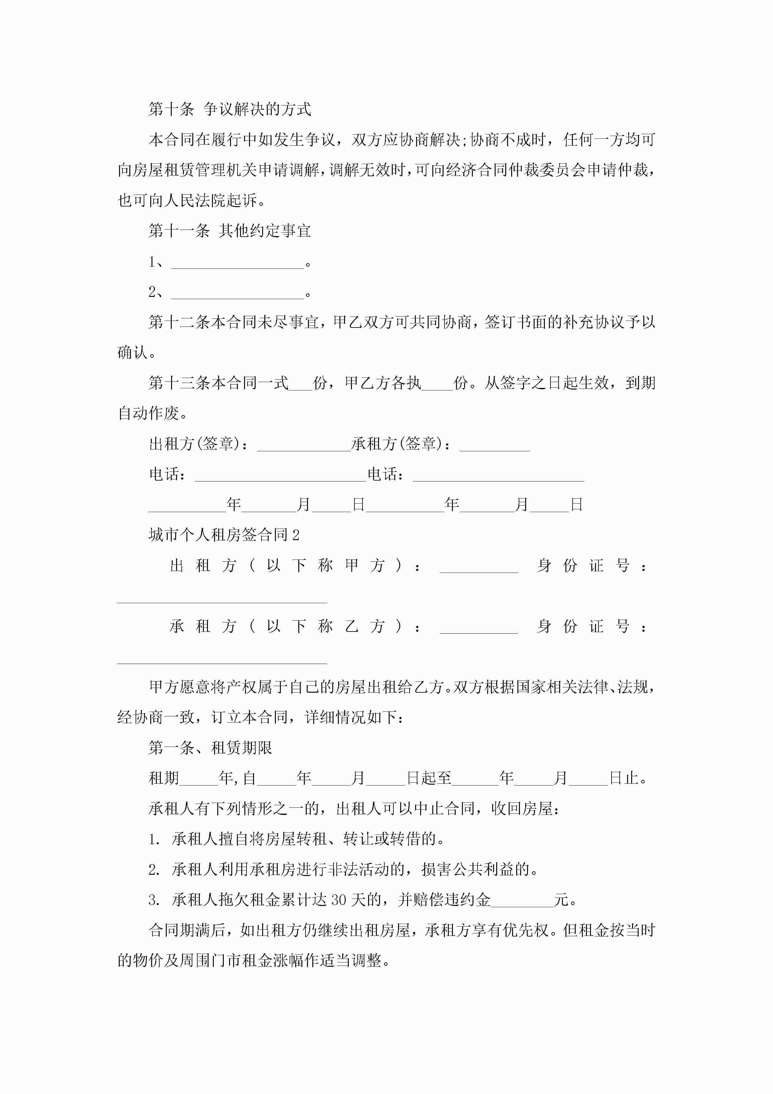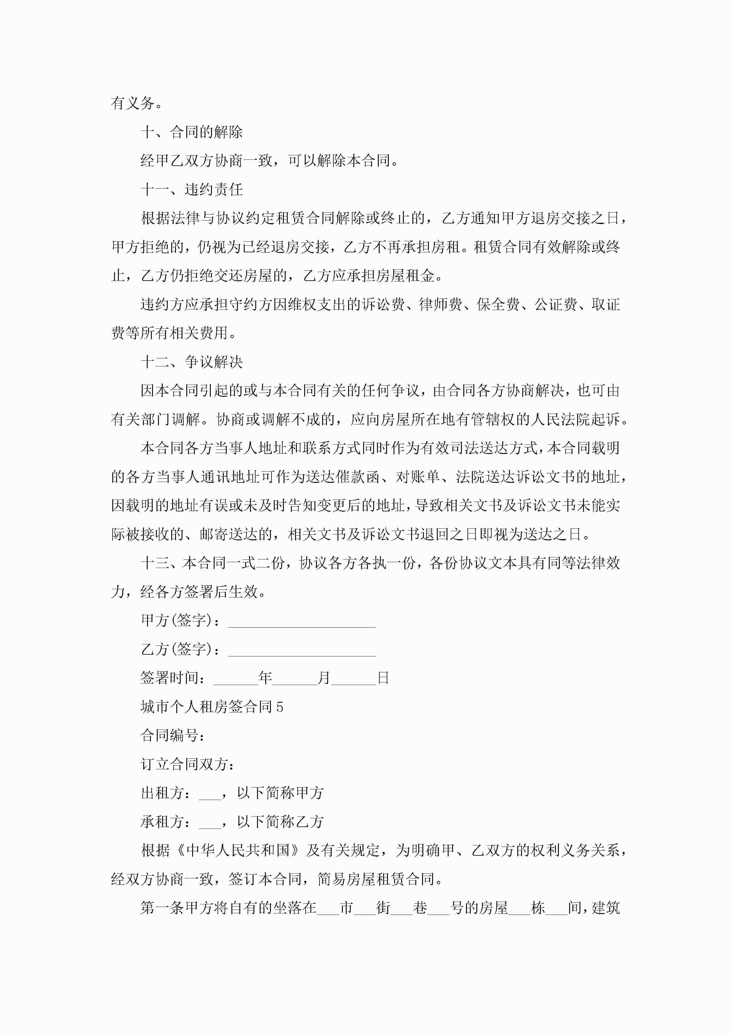 城市个人租房签合同5篇jugei3月23日 01:48发布关注193 城市个人租房签合同5篇此内容为付费资源,请付费后查看¥10.9 单篇文档限时特惠¥15个人会员开通企业会员开通立即下载无需登陆!可直接快捷下载单个模板付费资源© 版权声明THE ENDWord模板# 实用文档# 实用模板# 合同模板# 租房合同 如有问题,可点击最底部“联系我们”联系客服 分享QQ空间微博QQ好友海报分享复制链接收藏