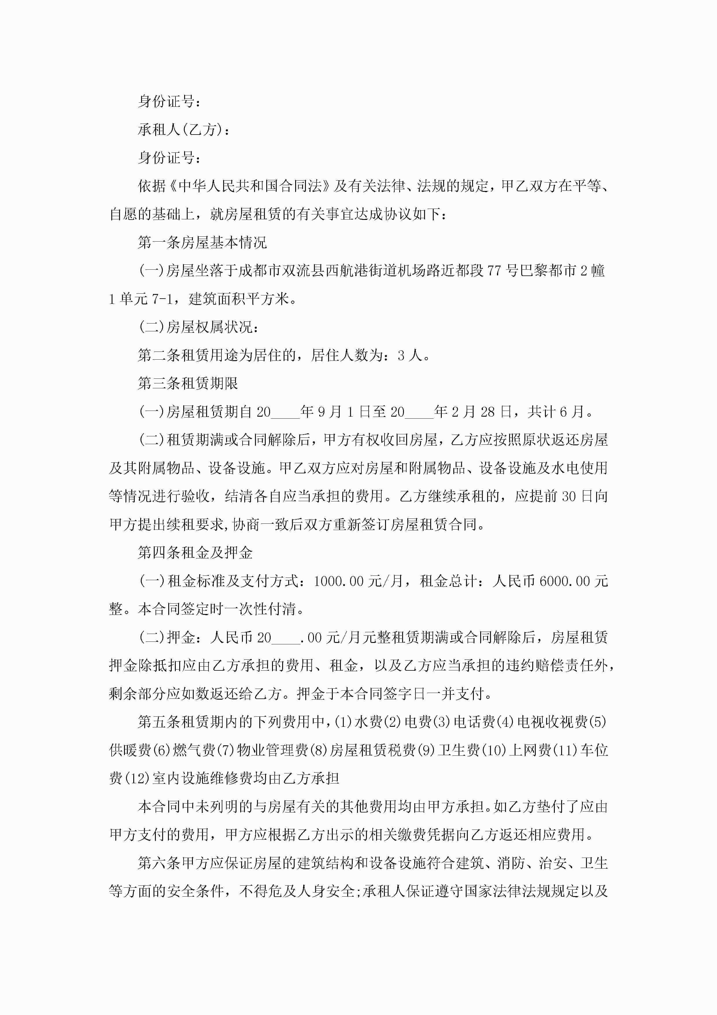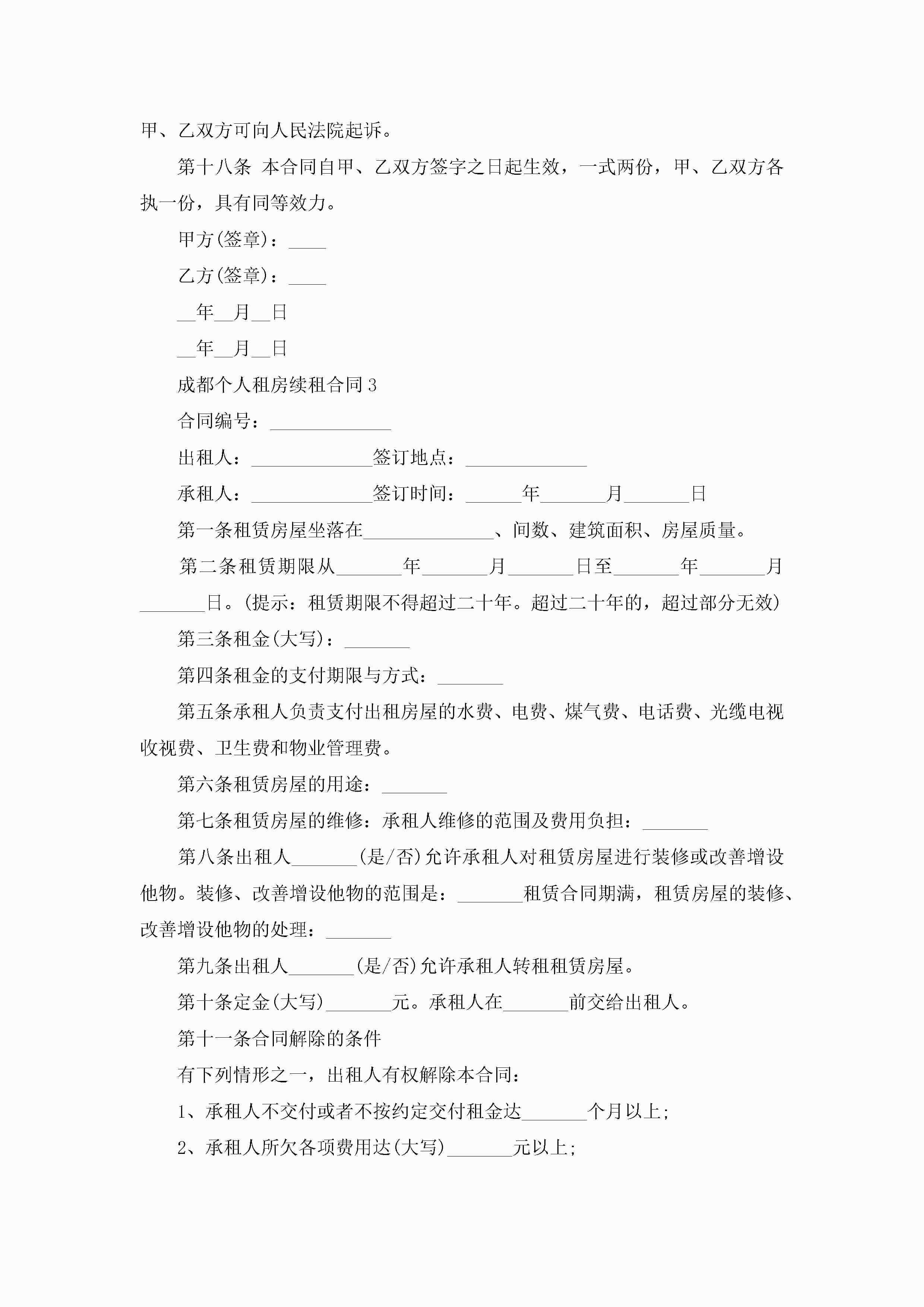 最新成都个人租房续租合同6篇jugei3月23日 01:48发布关注258 最新成都个人租房续租合同6篇此内容为付费资源,请付费后查看¥10.9 单篇文档限时特惠¥15个人会员开通企业会员开通立即下载无需登陆!可直接快捷下载单个模板付费资源© 版权声明THE ENDWord模板# 实用文档# 实用模板# 合同模板# 租房合同 如有问题,可点击最底部“联系我们”联系客服 分享QQ空间微博QQ好友海报分享复制链接收藏