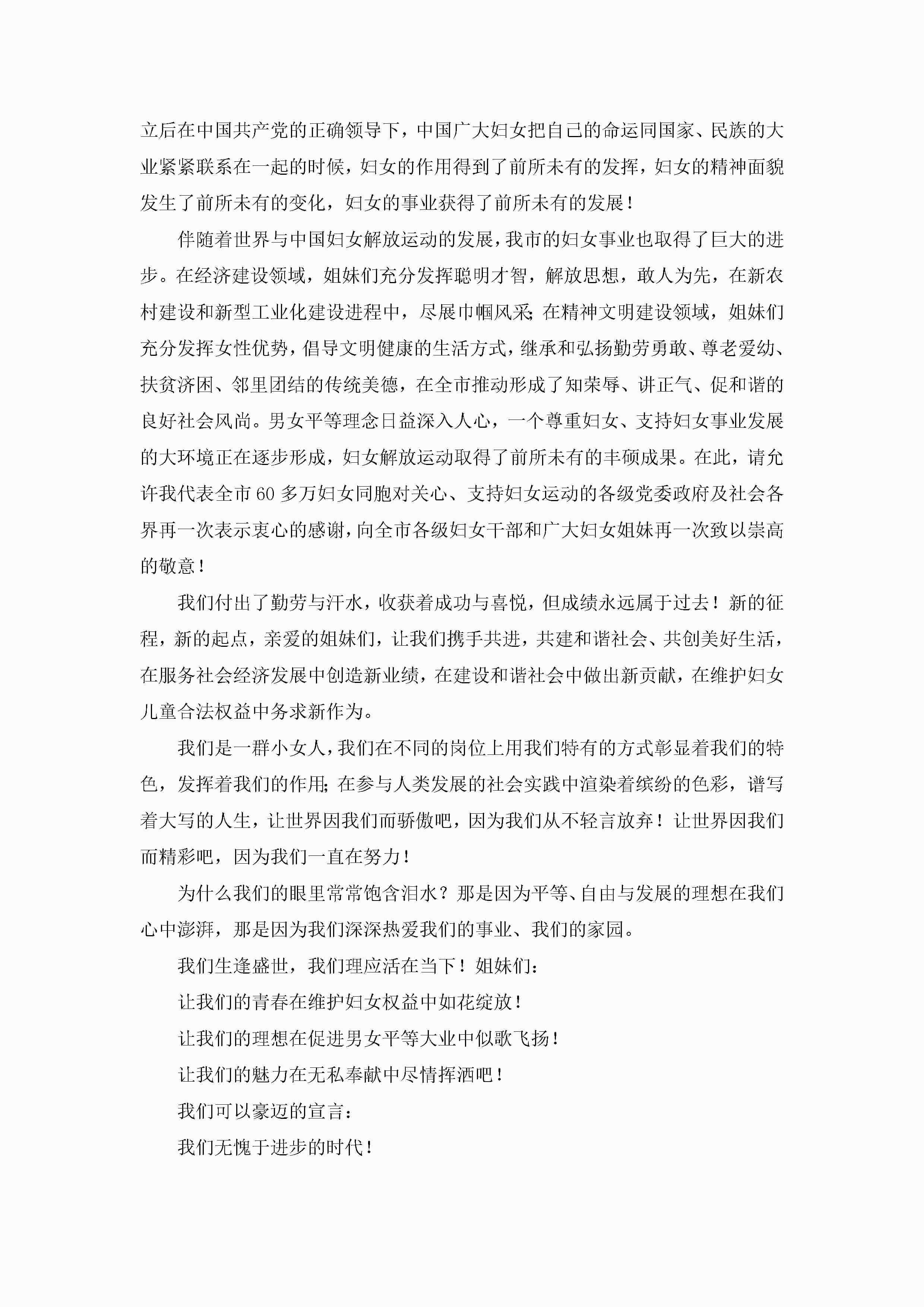 妇女节节日致辞演讲稿7篇文本2023jugei3月23日 01:48发布关注199 妇女节节日致辞演讲稿7篇文本2023此内容为付费资源,请付费后查看¥10.9 单篇文档限时特惠¥15个人会员开通企业会员开通立即下载无需登陆!可直接快捷下载单个模板付费资源© 版权声明THE ENDWord模板# 实用文档# 演讲稿# 经典演讲稿# 实用写作 如有问题,可点击最底部“联系我们”联系客服 分享QQ空间微博QQ好友海报分享复制链接收藏