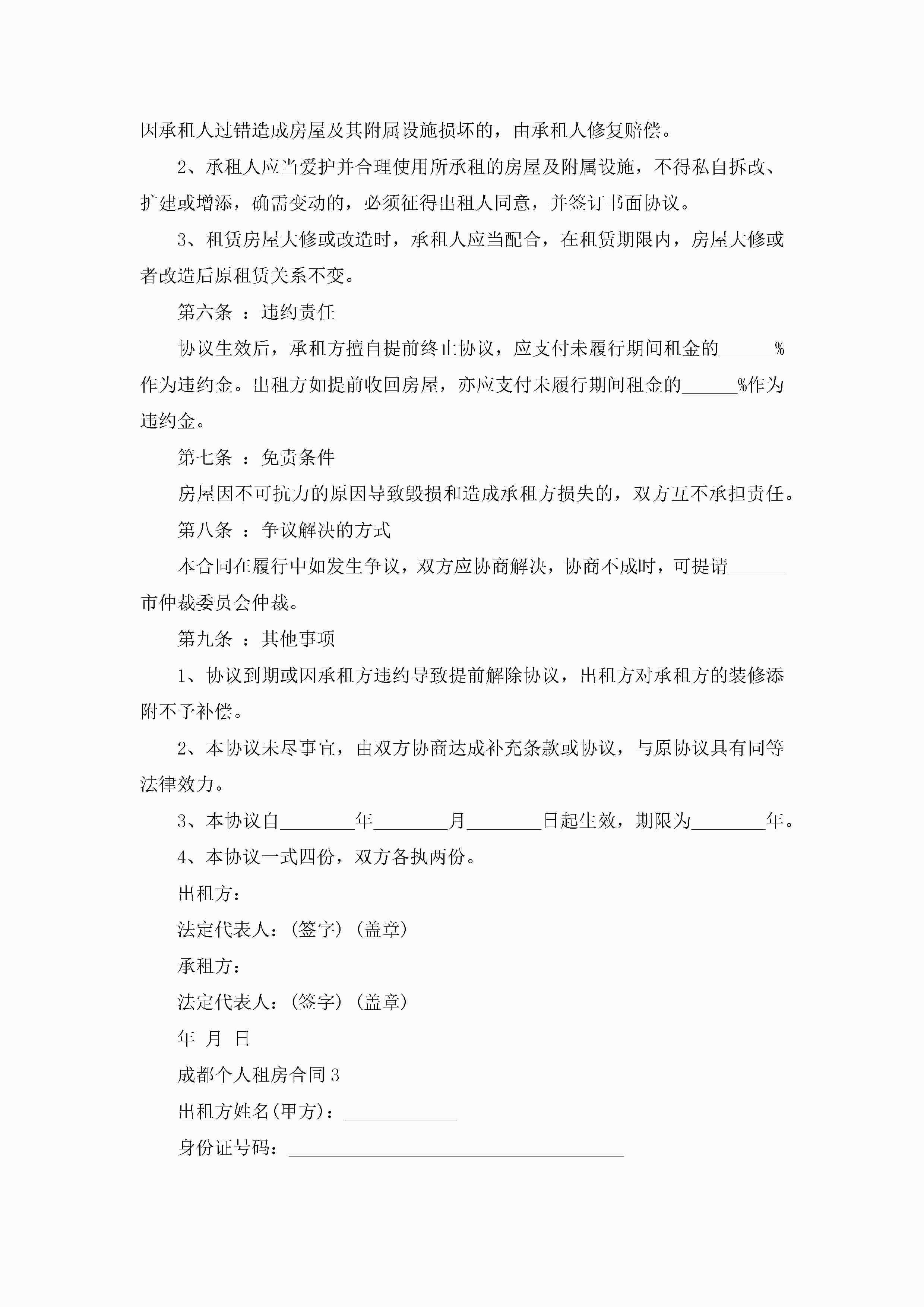 成都个人租房合同5篇jugei3月23日 01:48发布关注195 成都个人租房合同5篇此内容为付费资源,请付费后查看¥10.9 单篇文档限时特惠¥15个人会员开通企业会员开通立即下载无需登陆!可直接快捷下载单个模板付费资源© 版权声明THE ENDWord模板# 实用文档# 实用模板# 合同模板# 租房合同 如有问题,可点击最底部“联系我们”联系客服 分享QQ空间微博QQ好友海报分享复制链接收藏