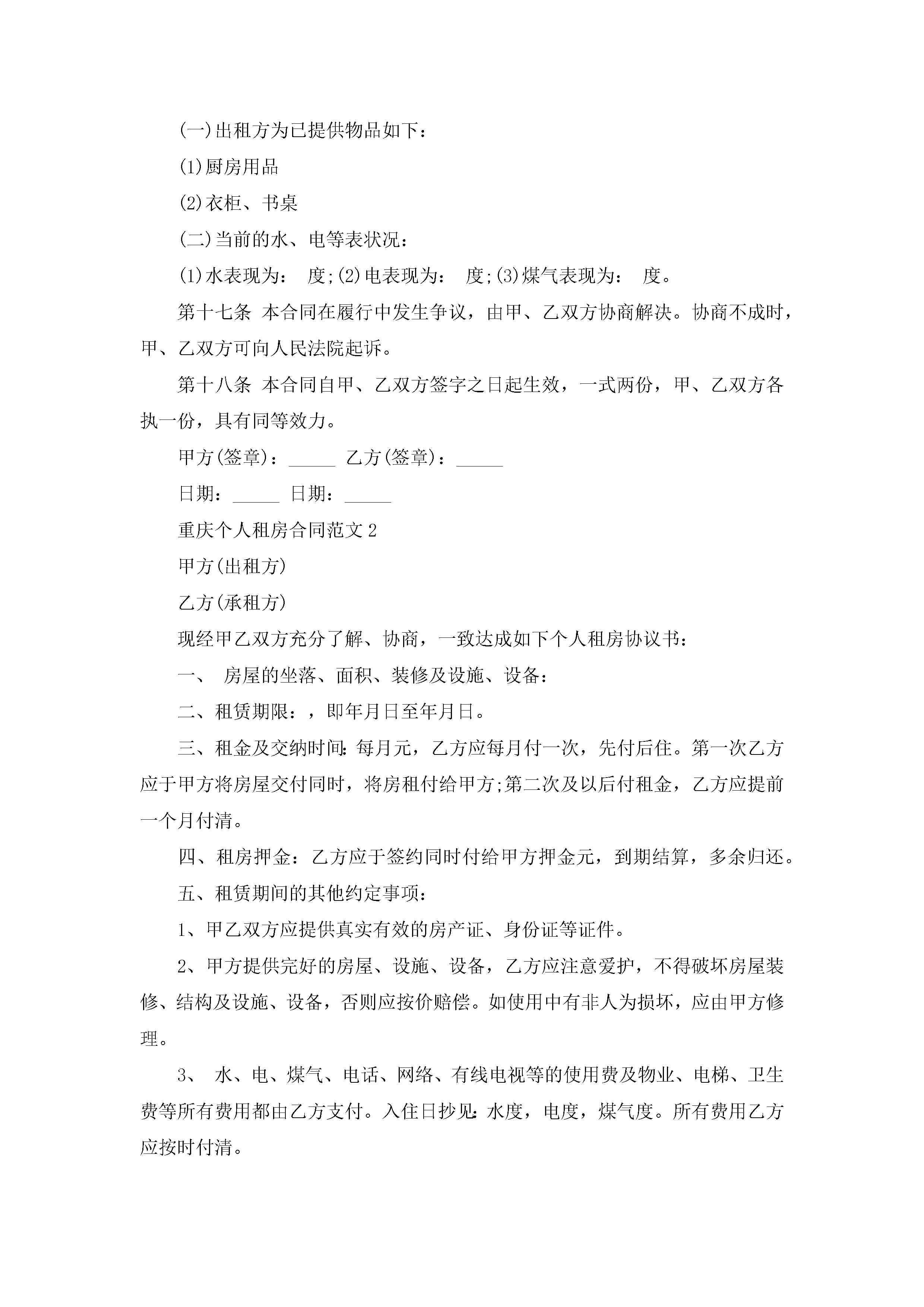 重庆个人租房合同范文5篇jugei3月23日 01:48发布关注247 重庆个人租房合同范文5篇此内容为付费资源,请付费后查看¥10.9 单篇文档限时特惠¥15个人会员开通企业会员开通立即下载无需登陆!可直接快捷下载单个模板付费资源© 版权声明THE ENDWord模板# 实用文档# 实用模板# 合同模板# 租房合同 如有问题,可点击最底部“联系我们”联系客服 分享QQ空间微博QQ好友海报分享复制链接收藏