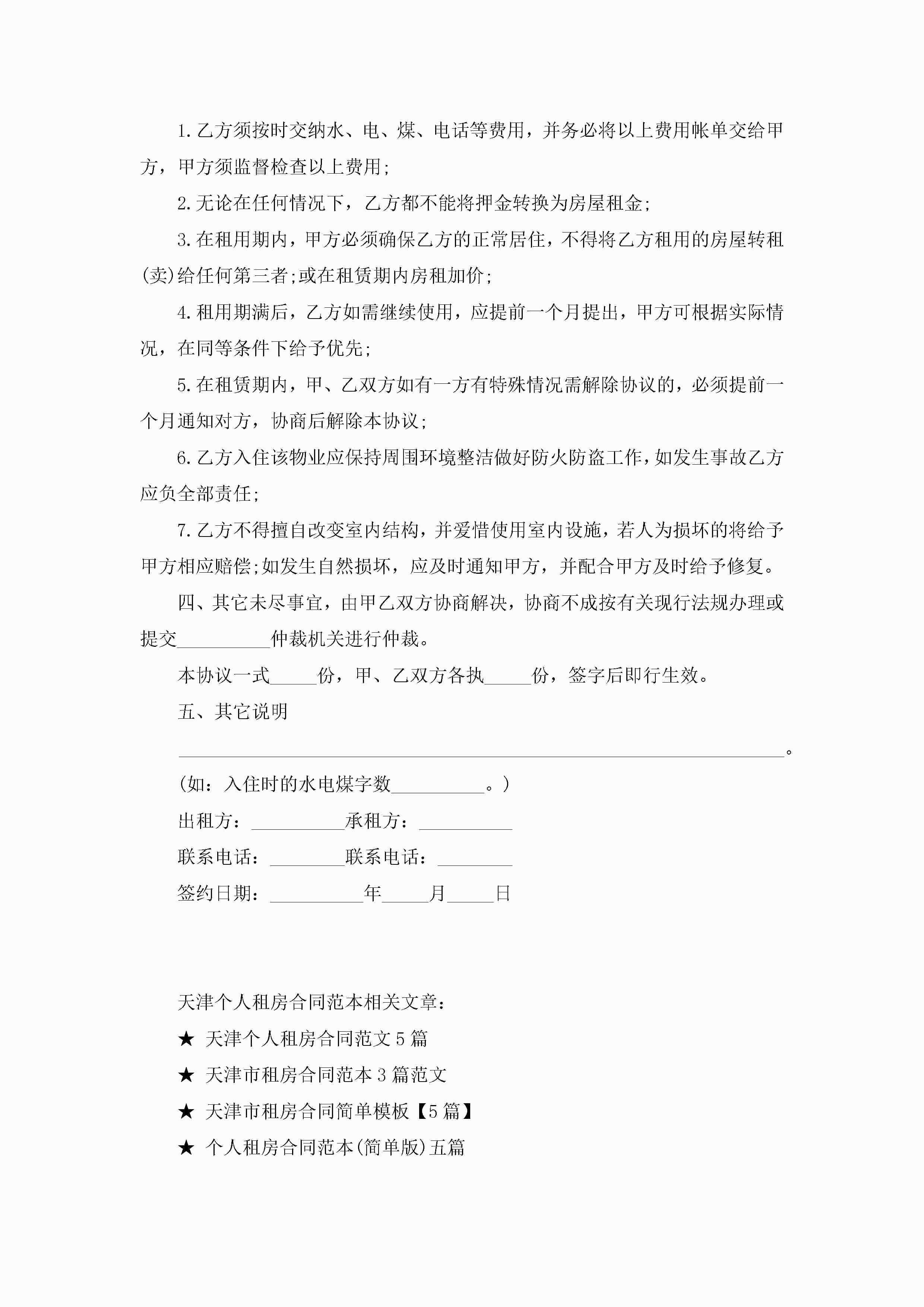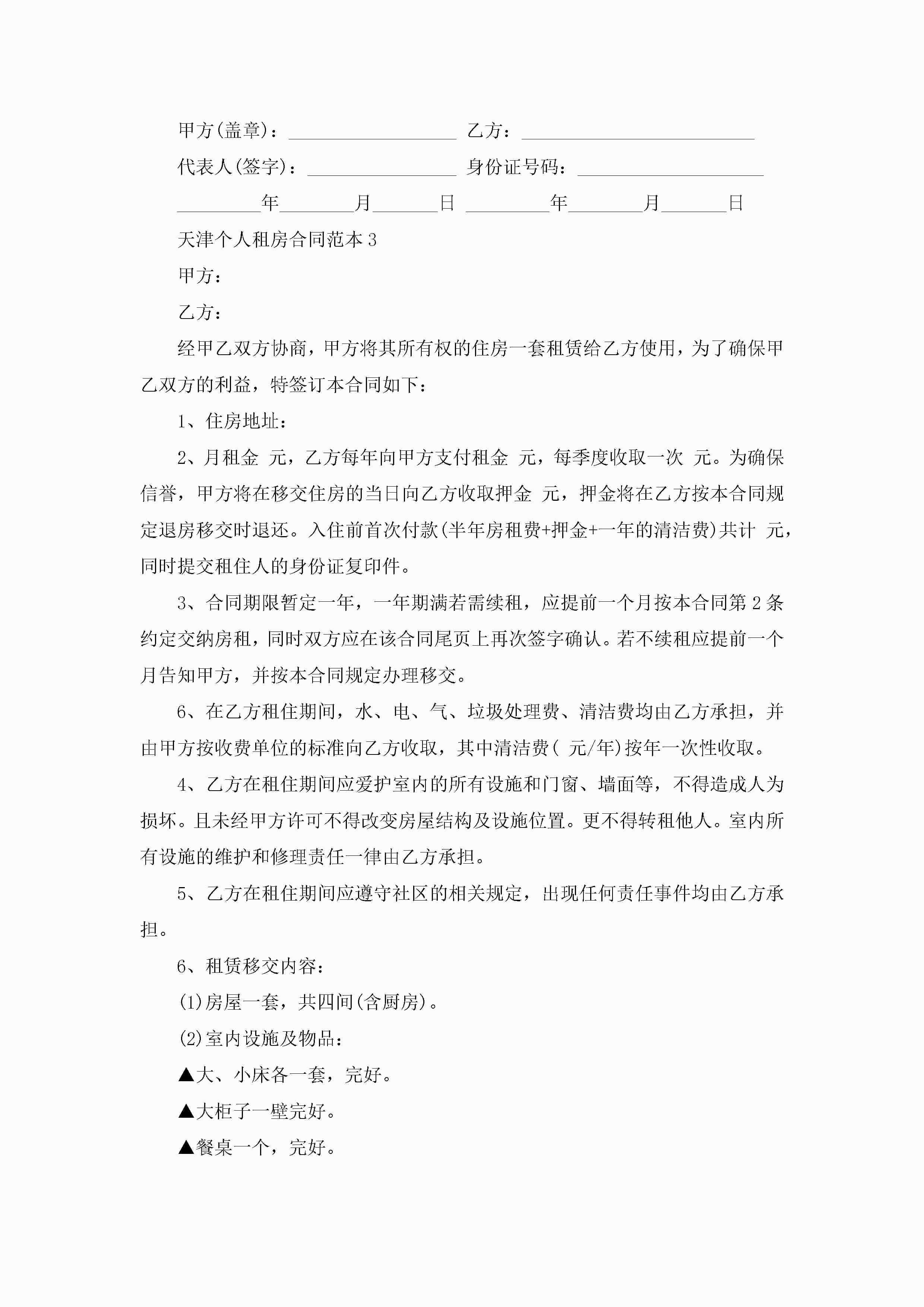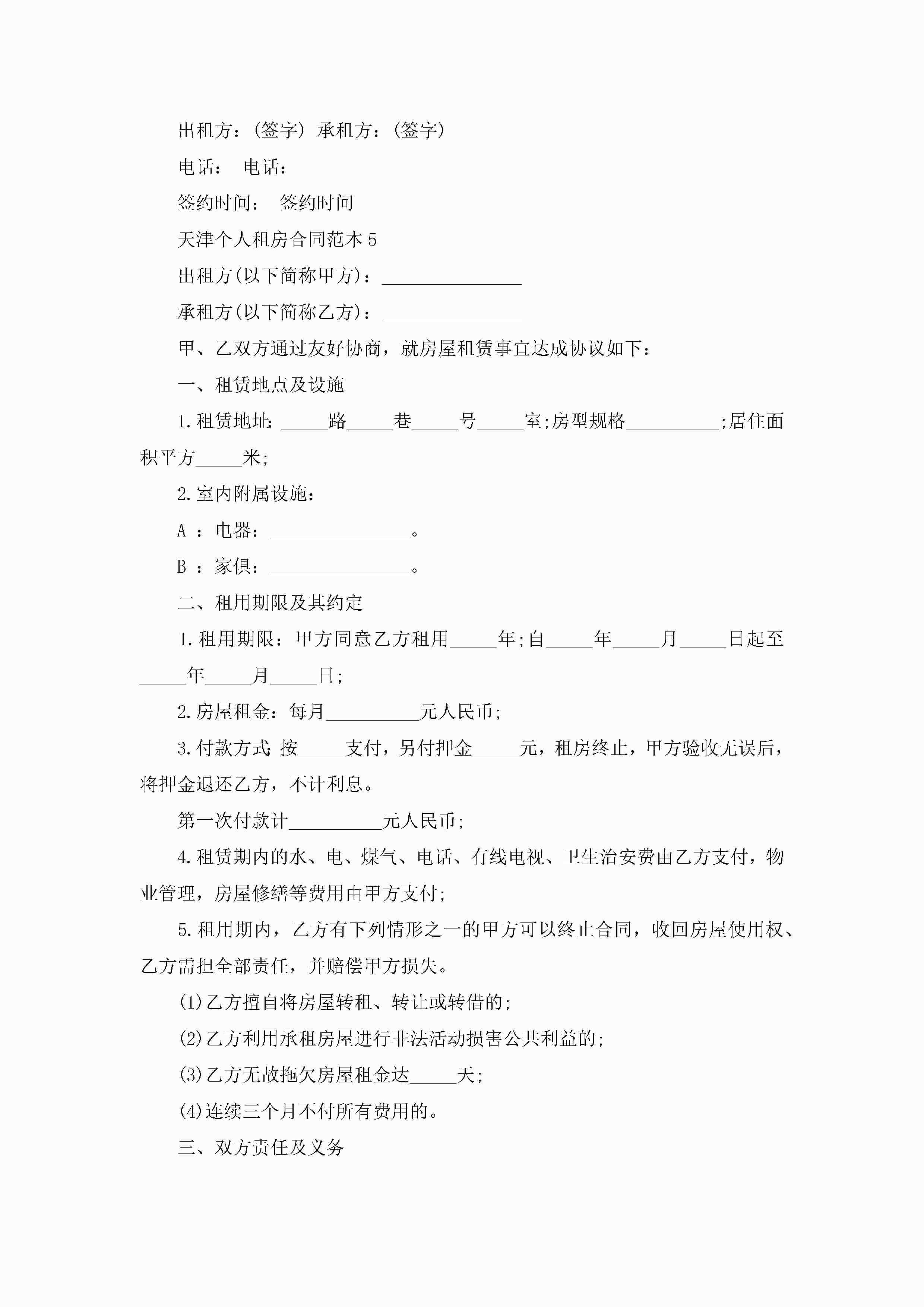 天津个人租房合同范本5篇jugei3月23日 01:48发布关注200 天津个人租房合同范本5篇此内容为付费资源,请付费后查看¥10.9 单篇文档限时特惠¥15个人会员开通企业会员开通立即下载无需登陆!可直接快捷下载单个模板付费资源© 版权声明THE ENDWord模板# 实用文档# 实用模板# 合同模板# 租房合同 如有问题,可点击最底部“联系我们”联系客服 分享QQ空间微博QQ好友海报分享复制链接收藏