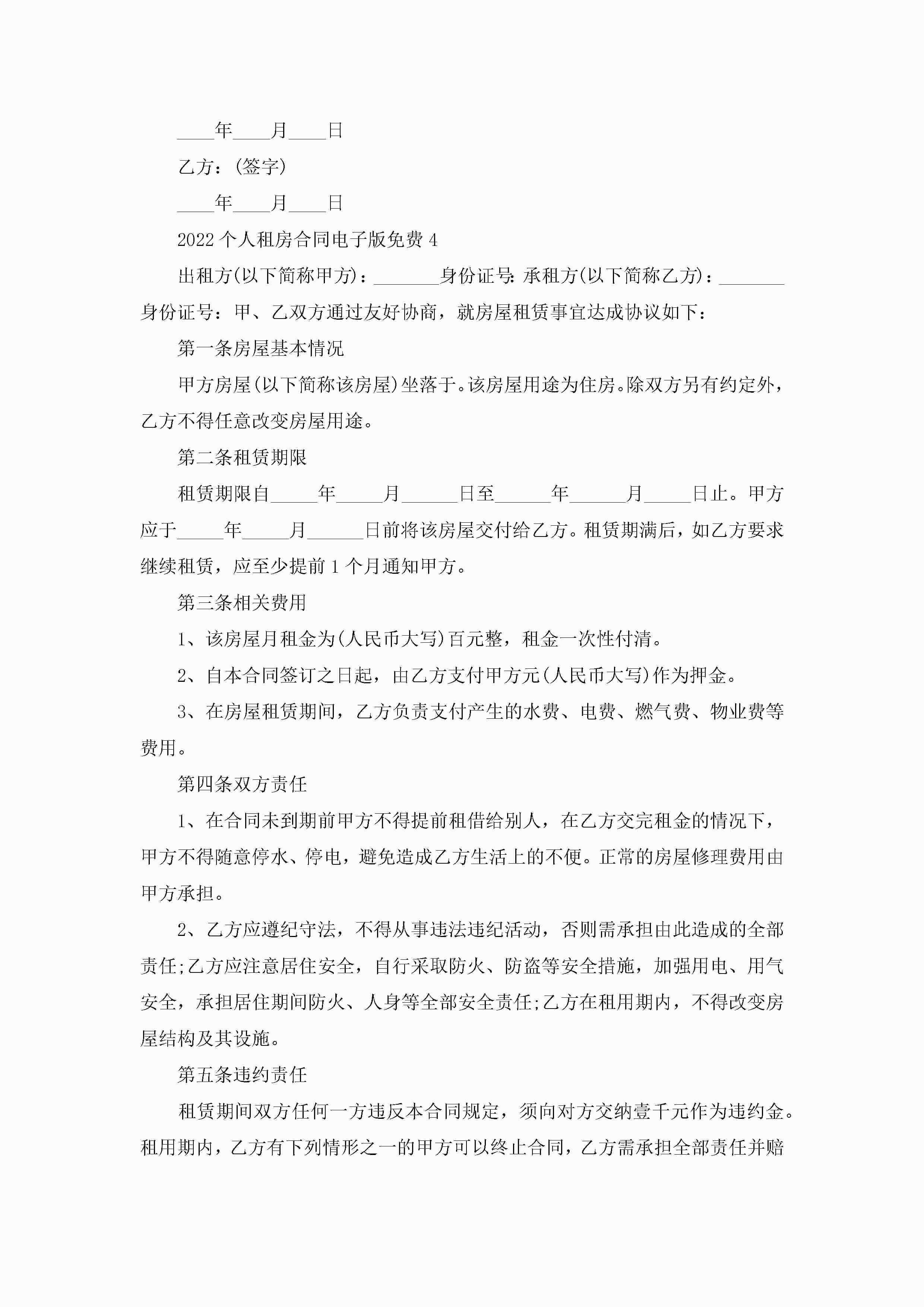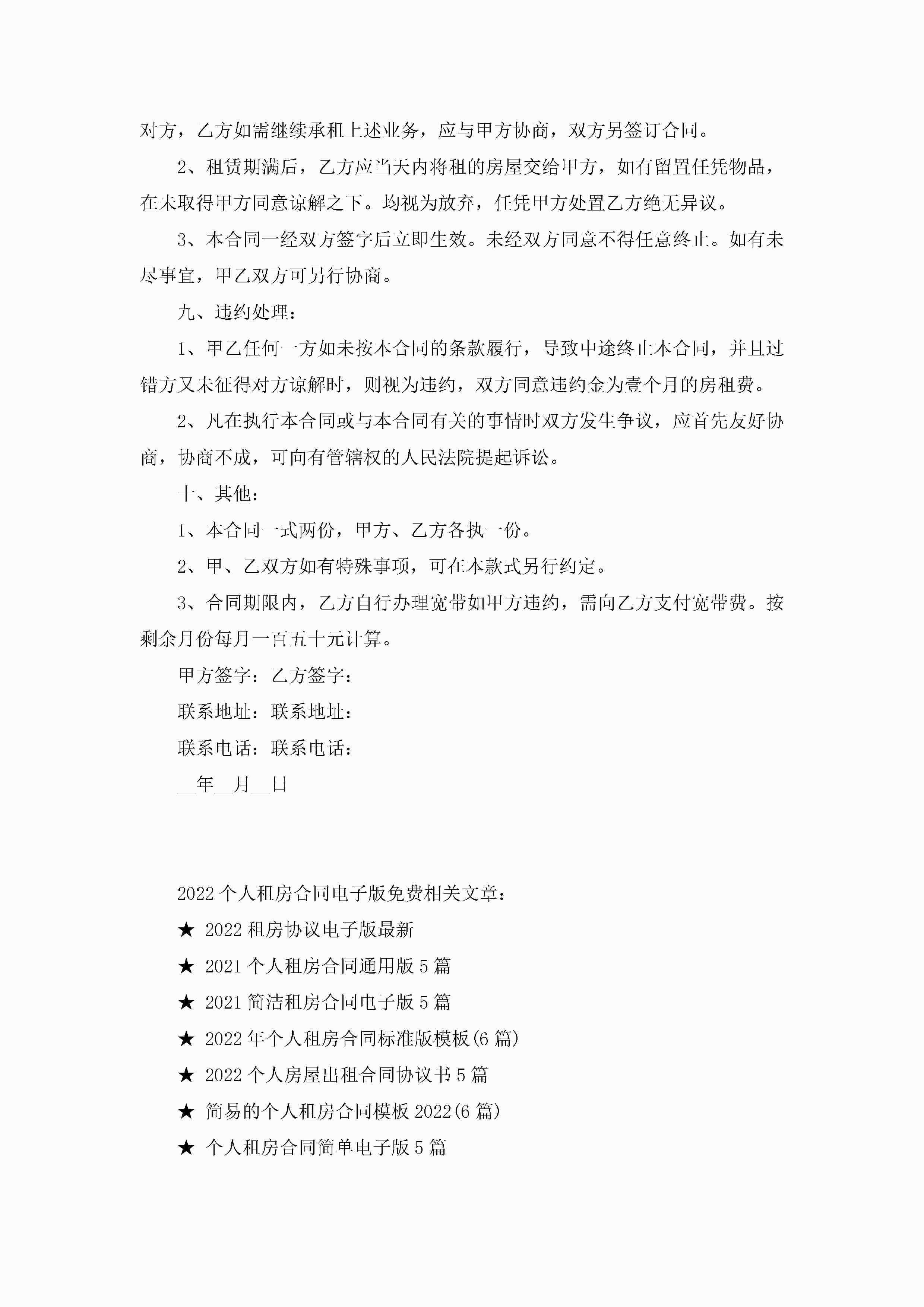 2022个人租房合同电子版免费5篇jugei3月23日 01:48发布关注226 2022个人租房合同电子版免费5篇此内容为付费资源,请付费后查看¥10.9 单篇文档限时特惠¥15个人会员开通企业会员开通立即下载无需登陆!可直接快捷下载单个模板付费资源© 版权声明THE ENDWord模板# 实用文档# 实用模板# 合同模板# 租房合同 如有问题,可点击最底部“联系我们”联系客服 分享QQ空间微博QQ好友海报分享复制链接收藏