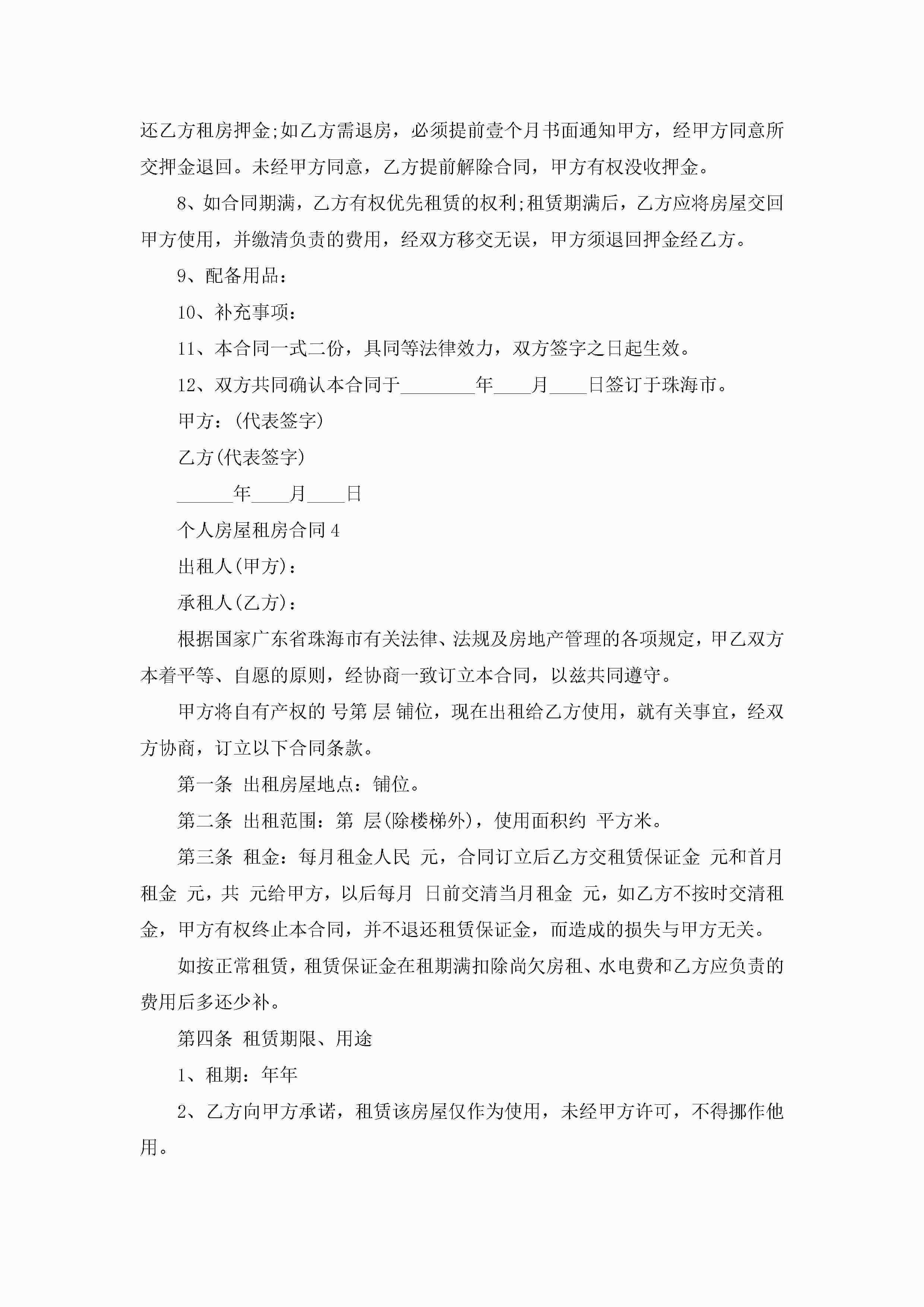 个人房屋租房合同5篇jugei3月23日 01:48发布关注258 个人房屋租房合同5篇此内容为付费资源,请付费后查看¥10.9 单篇文档限时特惠¥15个人会员开通企业会员开通立即下载无需登陆!可直接快捷下载单个模板付费资源© 版权声明THE ENDWord模板# 实用文档# 实用模板# 合同模板# 租房合同 如有问题,可点击最底部“联系我们”联系客服 分享QQ空间微博QQ好友海报分享复制链接收藏
