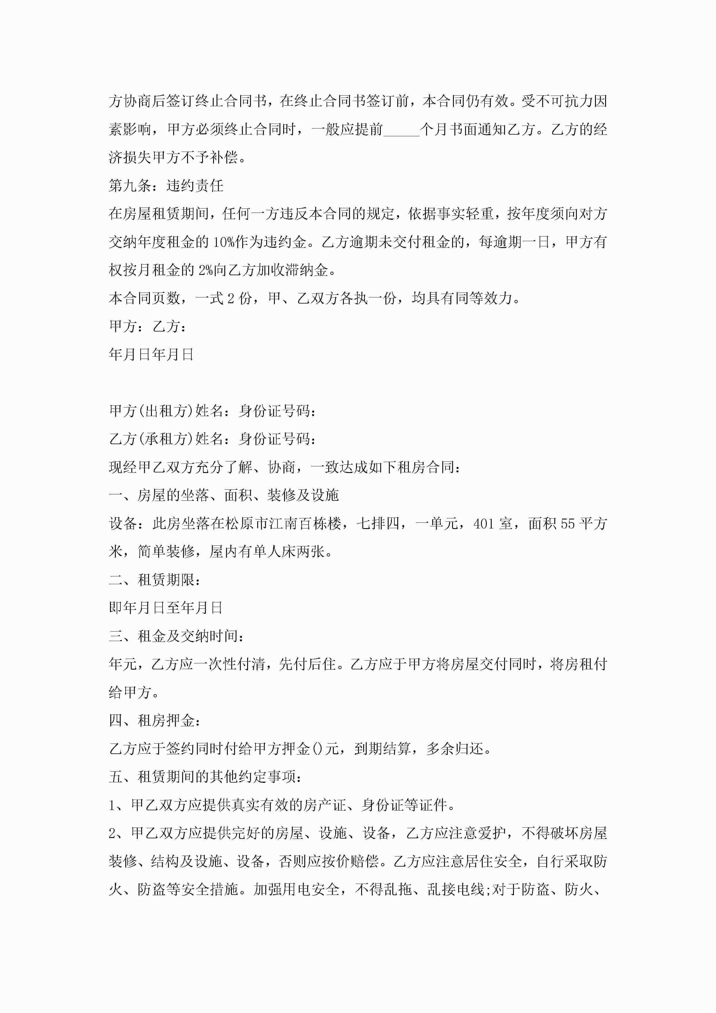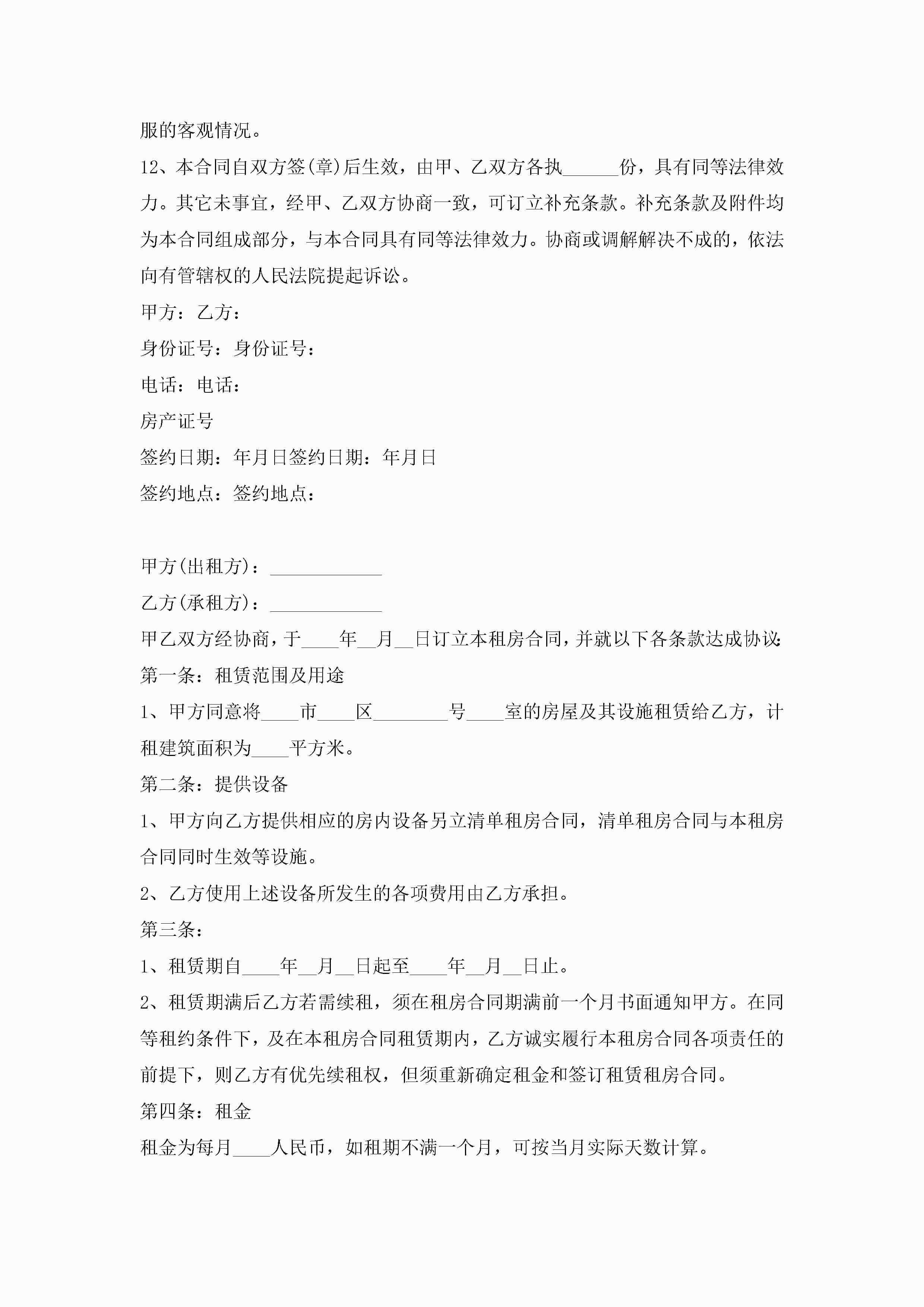 房屋租赁合同模板下载5篇jugei3月23日 01:48发布关注186 房屋租赁合同模板下载5篇此内容为付费资源,请付费后查看¥10.9 单篇文档限时特惠¥15个人会员开通企业会员开通立即下载无需登陆!可直接快捷下载单个模板付费资源© 版权声明THE ENDWord模板# 实用文档# 实用模板# 合同模板# 租房合同 如有问题,可点击最底部“联系我们”联系客服 分享QQ空间微博QQ好友海报分享复制链接收藏