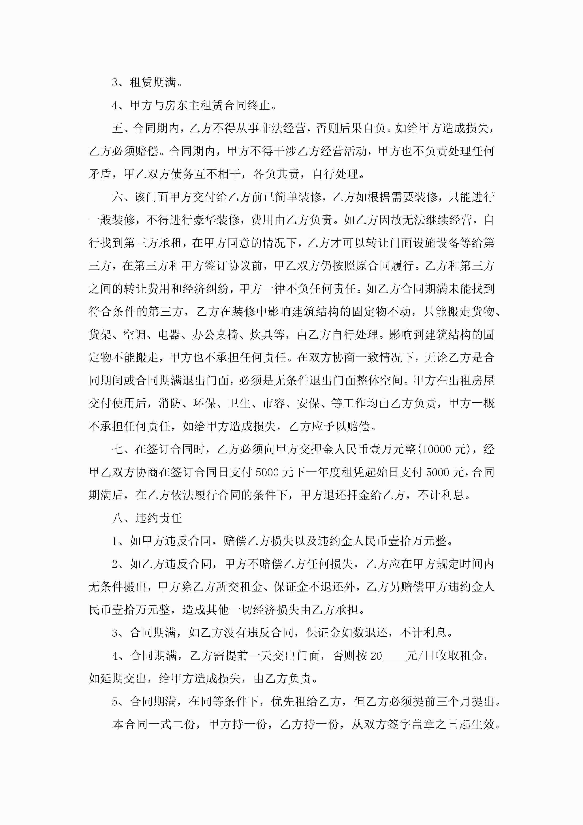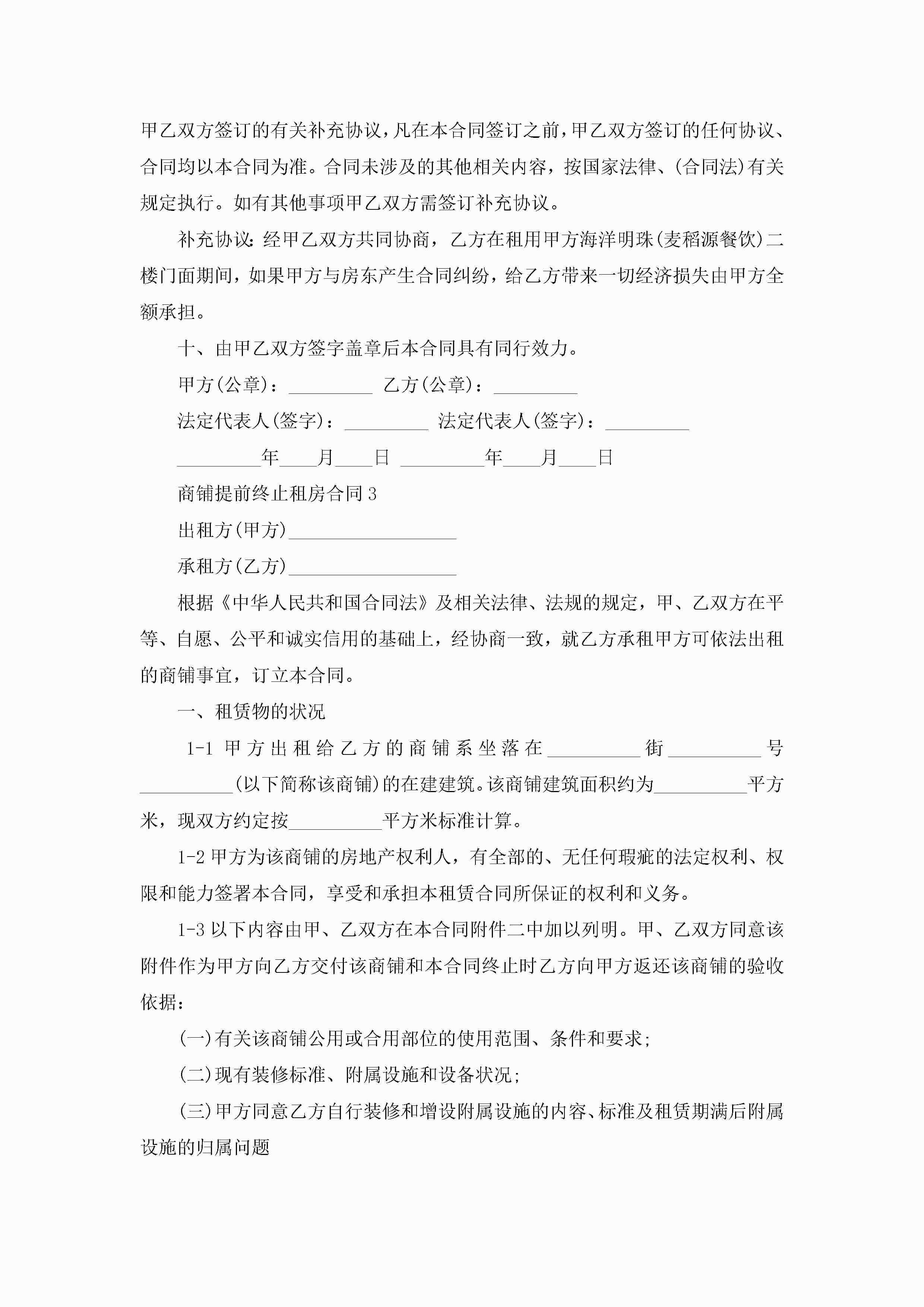 关于商铺提前终止租房合同5篇jugei3月23日 01:48发布关注360 关于商铺提前终止租房合同5篇此内容为付费资源,请付费后查看¥10.9 单篇文档限时特惠¥15个人会员开通企业会员开通立即下载无需登陆!可直接快捷下载单个模板付费资源© 版权声明THE ENDWord模板# 实用文档# 实用模板# 合同模板# 租房合同 如有问题,可点击最底部“联系我们”联系客服 分享QQ空间微博QQ好友海报分享复制链接收藏