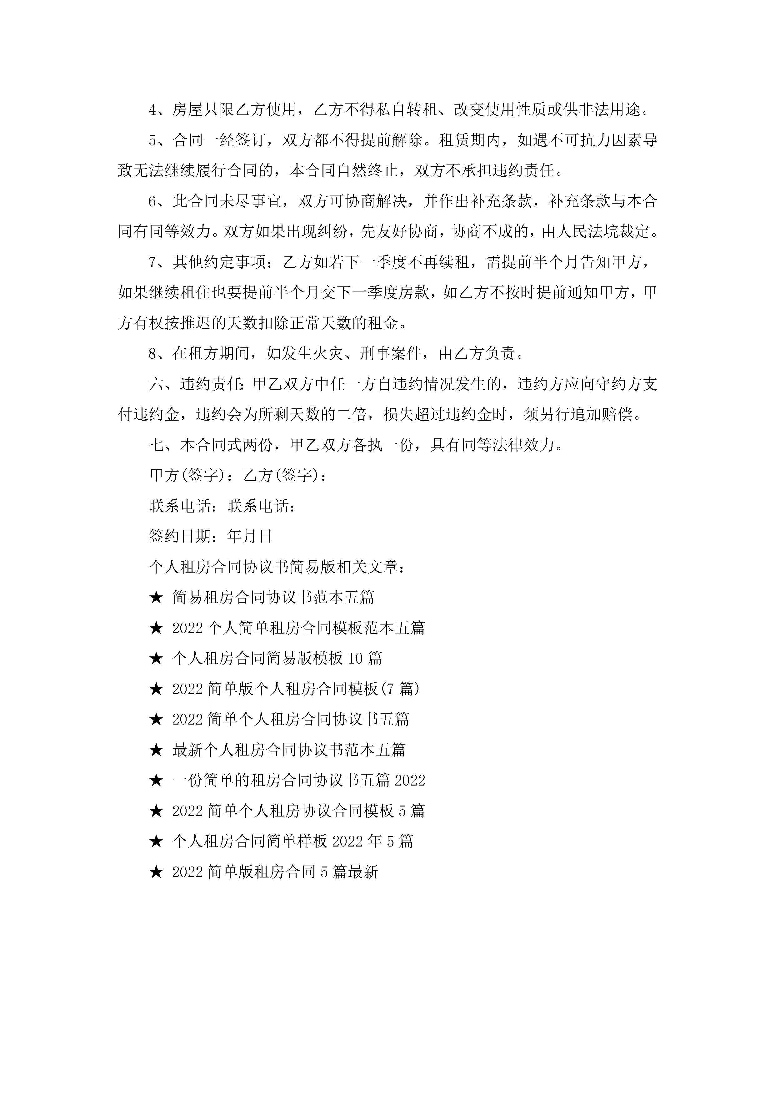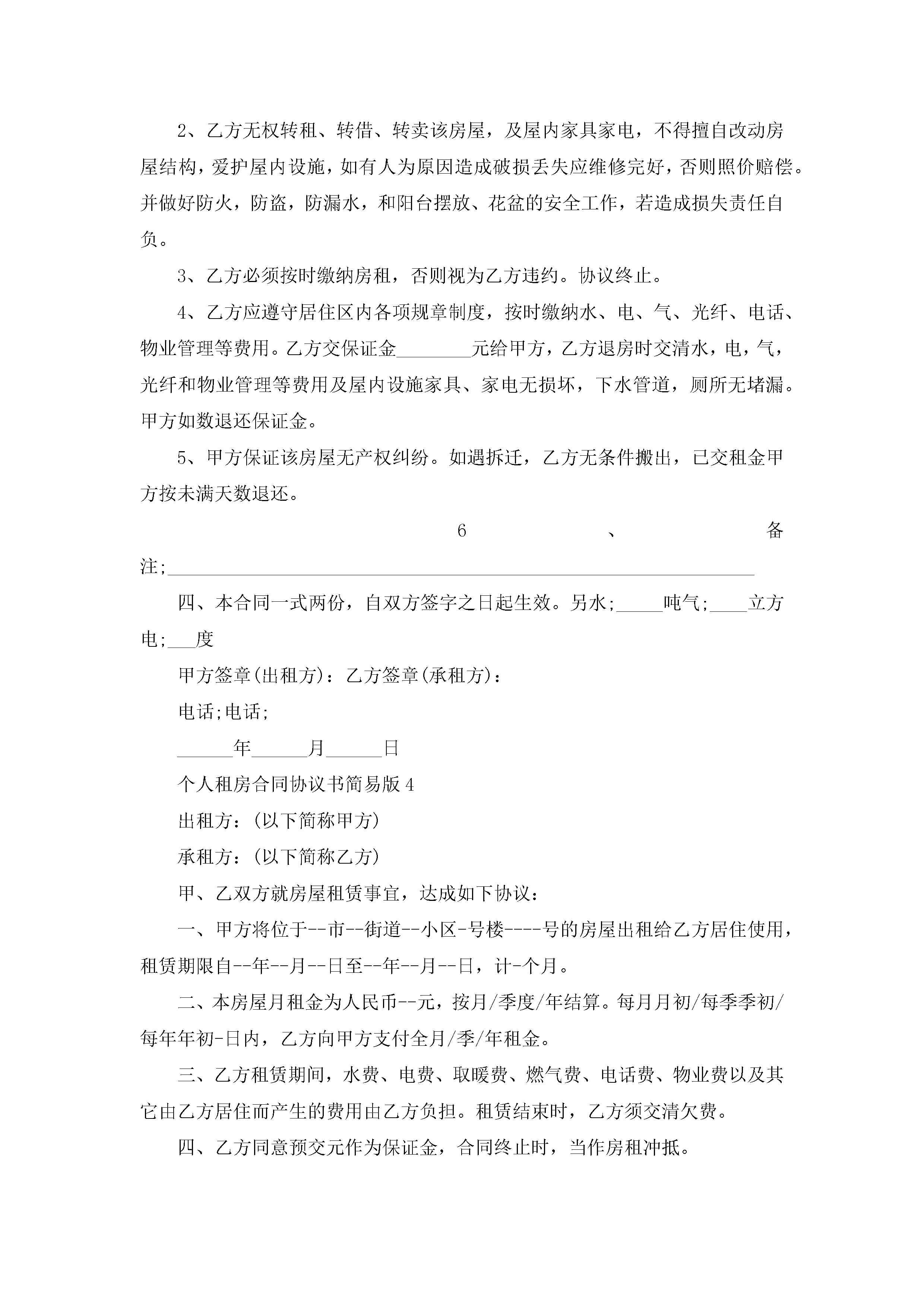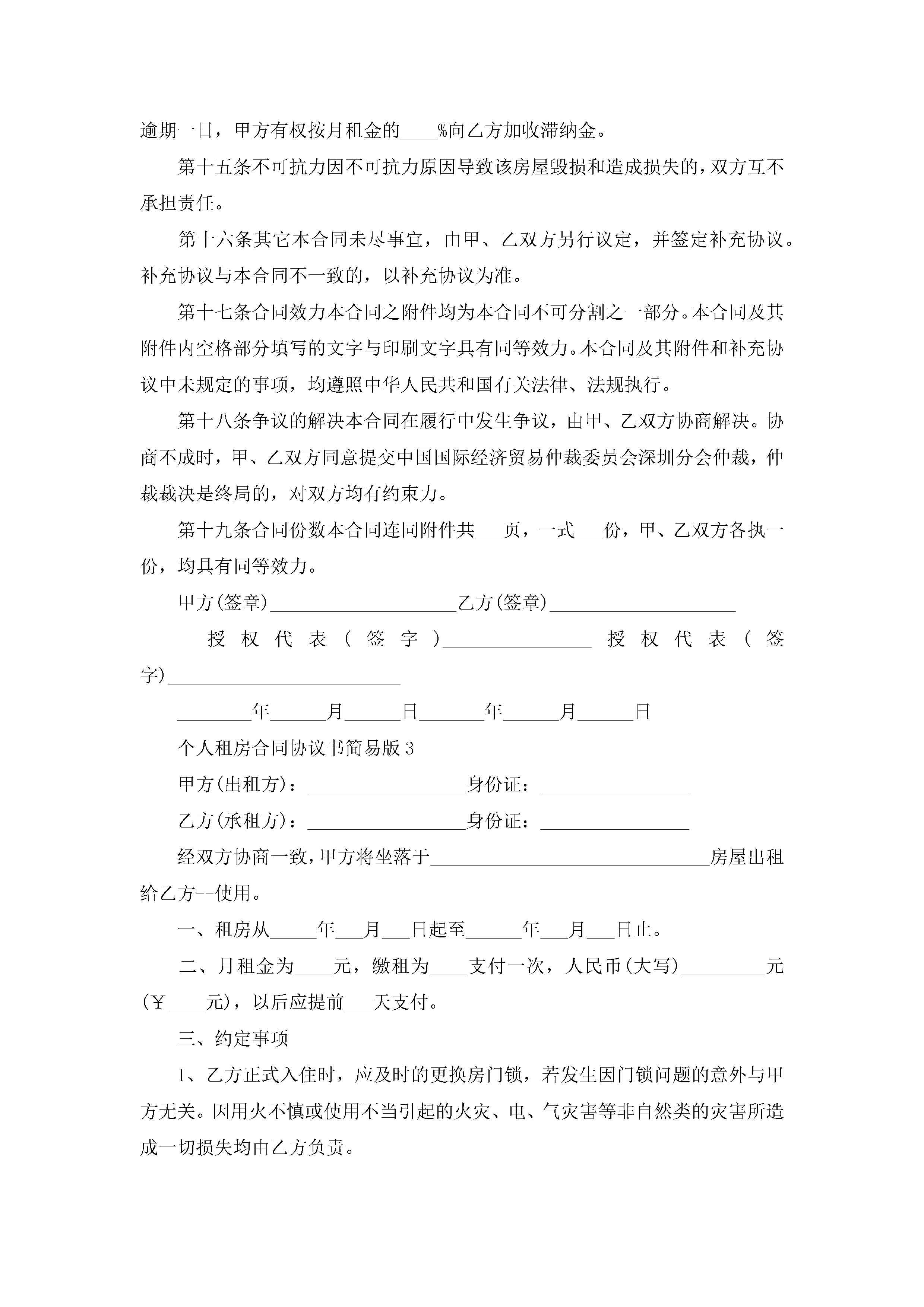 个人租房合同协议书简易版5篇jugei3月23日 01:48发布关注198 个人租房合同协议书简易版5篇此内容为付费资源,请付费后查看¥10.9 单篇文档限时特惠¥15个人会员开通企业会员开通立即下载无需登陆!可直接快捷下载单个模板付费资源© 版权声明THE ENDWord模板# 实用文档# 实用模板# 合同模板# 租房合同 如有问题,可点击最底部“联系我们”联系客服 分享QQ空间微博QQ好友海报分享复制链接收藏