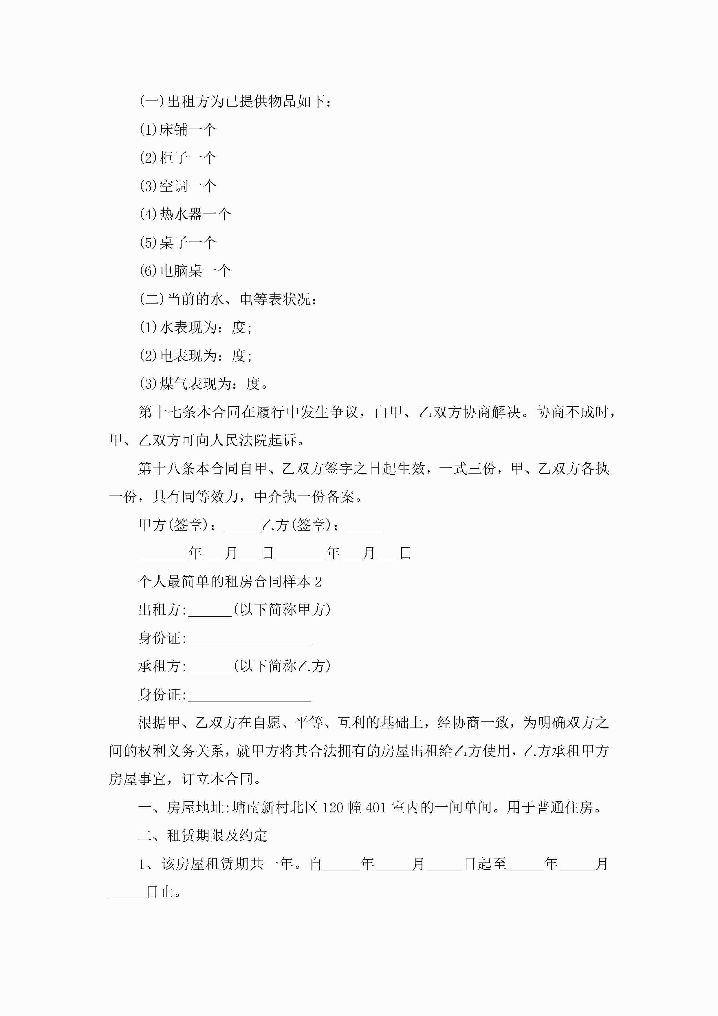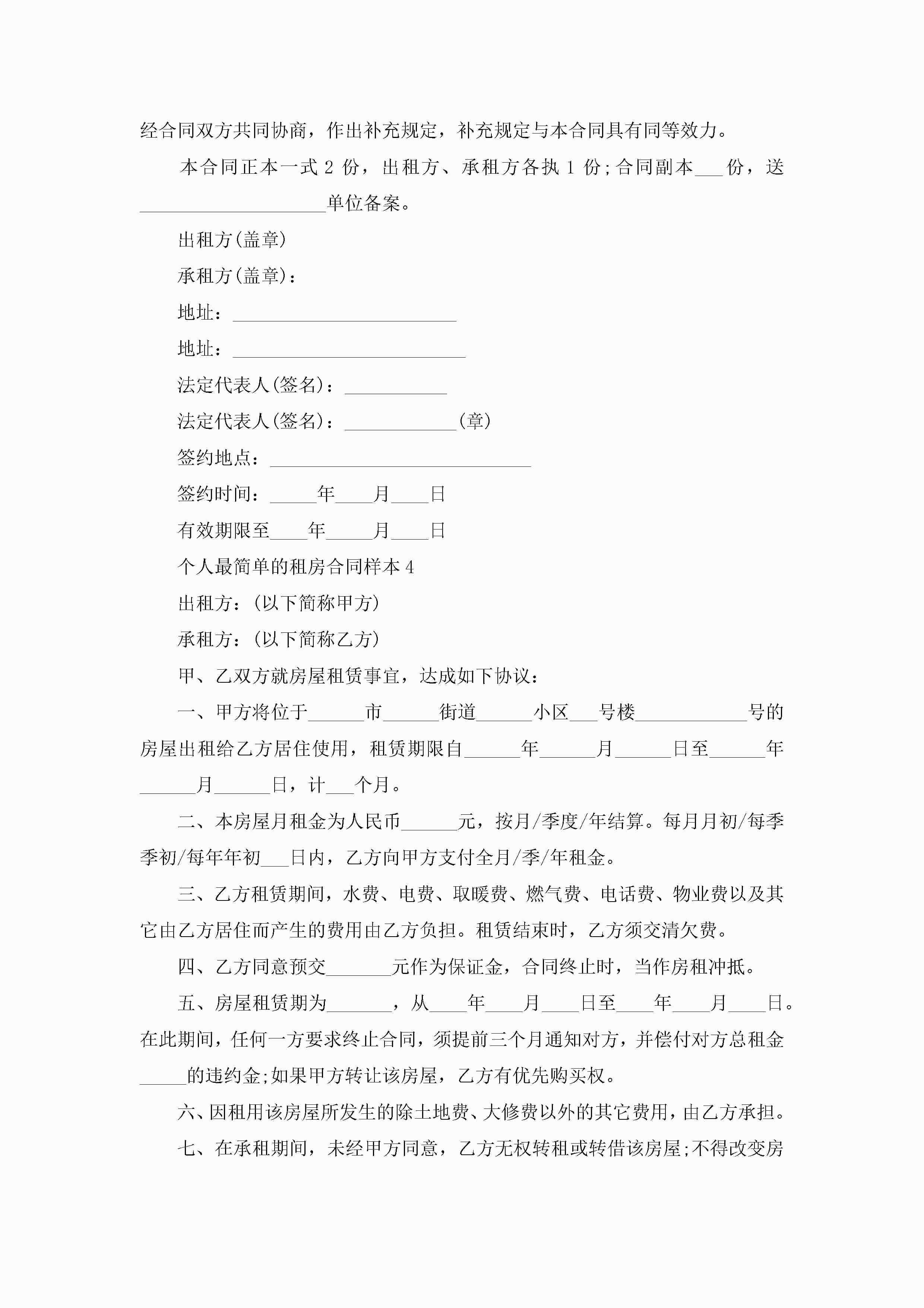 个人最简单的租房合同样本5篇jugei3月23日 01:48发布关注203 个人最简单的租房合同样本5篇此内容为付费资源,请付费后查看¥10.9 单篇文档限时特惠¥15个人会员开通企业会员开通立即下载无需登陆!可直接快捷下载单个模板付费资源© 版权声明THE ENDWord模板# 实用文档# 实用模板# 合同模板# 租房合同 如有问题,可点击最底部“联系我们”联系客服 分享QQ空间微博QQ好友海报分享复制链接收藏