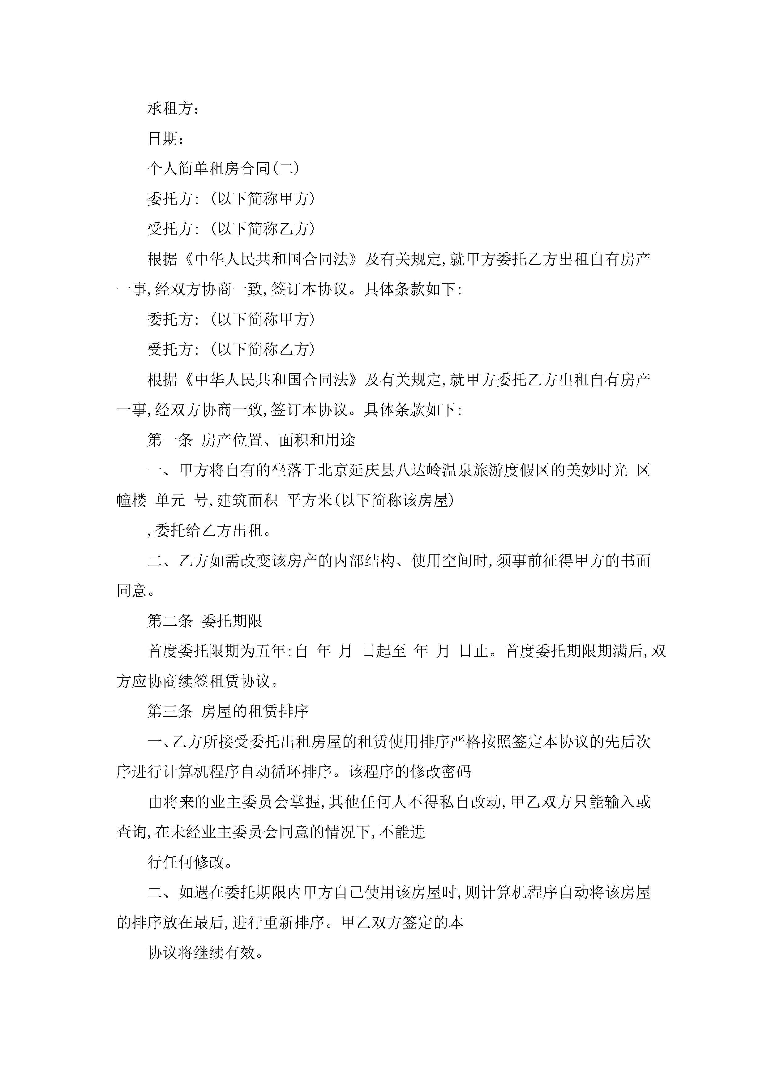 个人简单租房合同7篇jugei3月23日 01:48发布关注215 个人简单租房合同7篇此内容为付费资源,请付费后查看¥10.9 单篇文档限时特惠¥15个人会员开通企业会员开通立即下载无需登陆!可直接快捷下载单个模板付费资源© 版权声明THE ENDWord模板# 实用文档# 实用模板# 合同模板# 租房合同 如有问题,可点击最底部“联系我们”联系客服 分享QQ空间微博QQ好友海报分享复制链接收藏